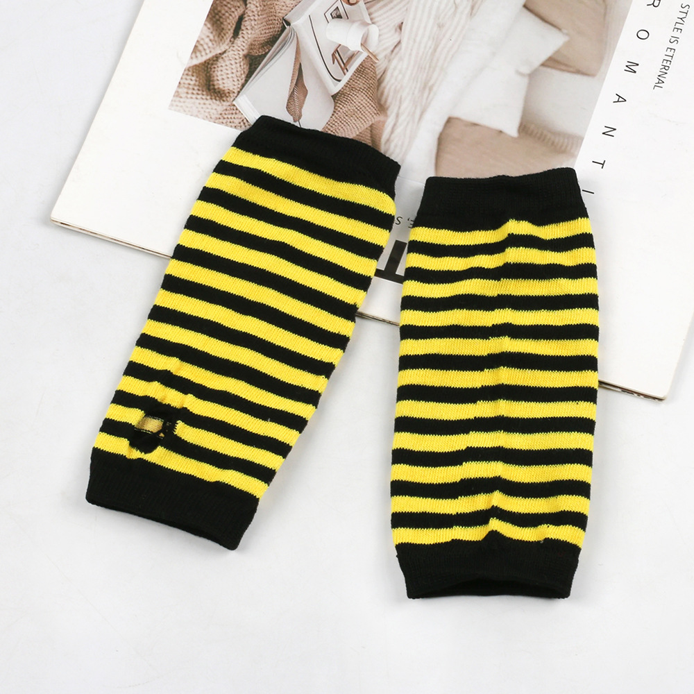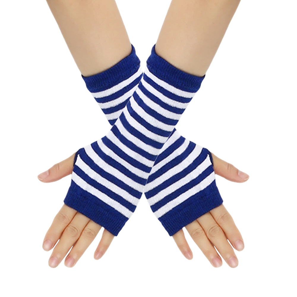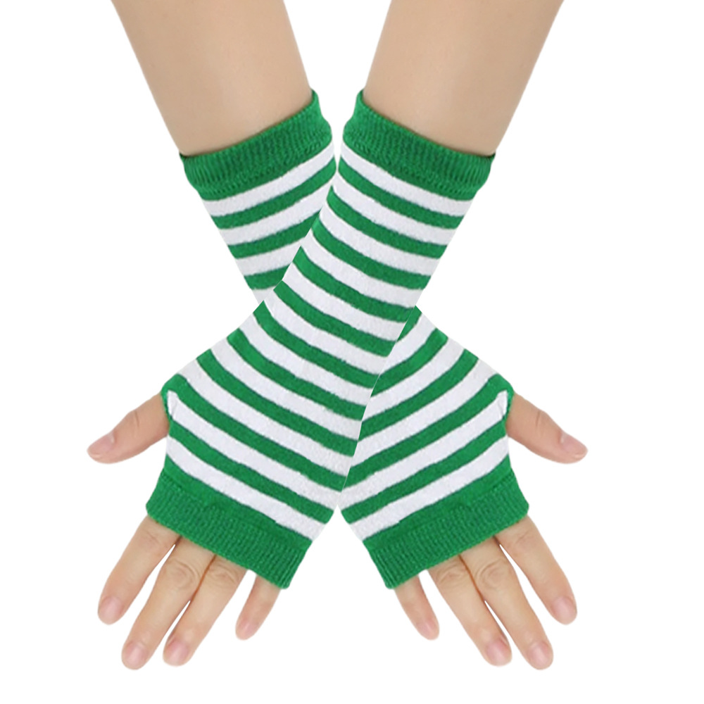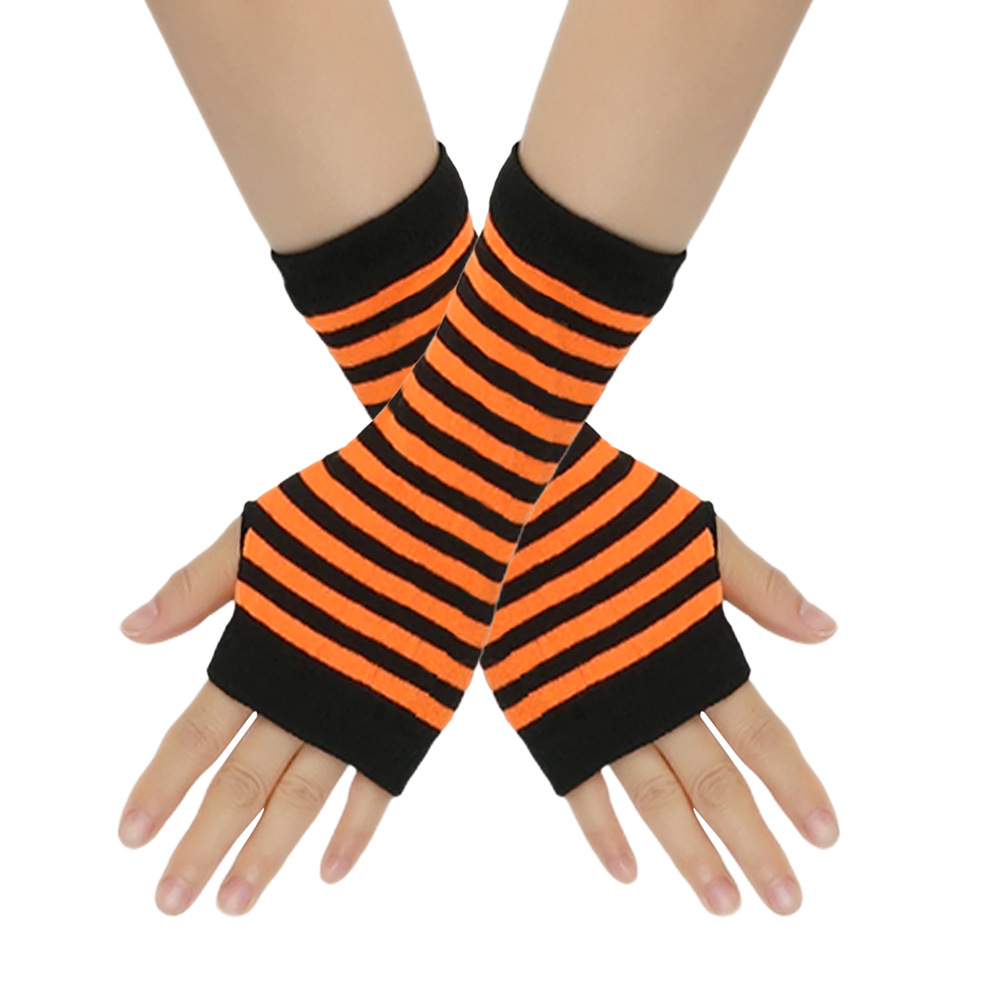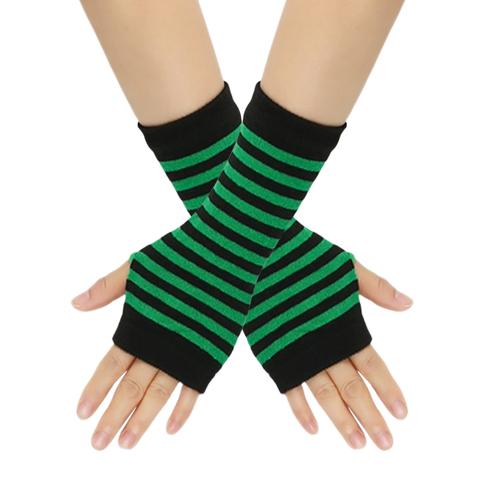 跨境针织漏指手套cospla动漫条纹穿指手腕袖套儿童露指手臂套薄款