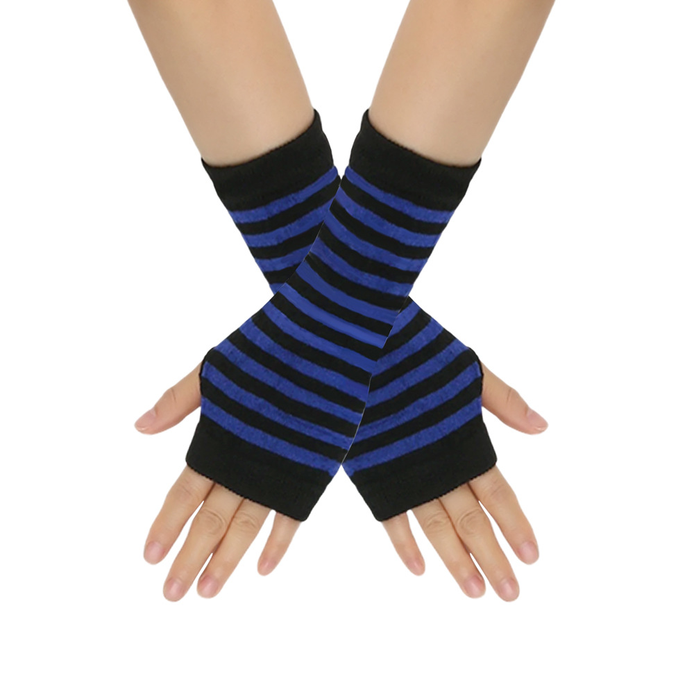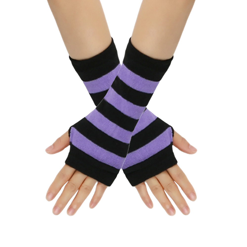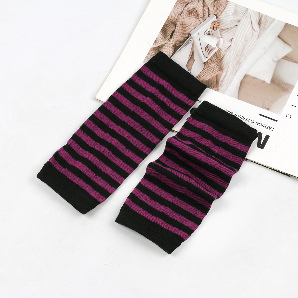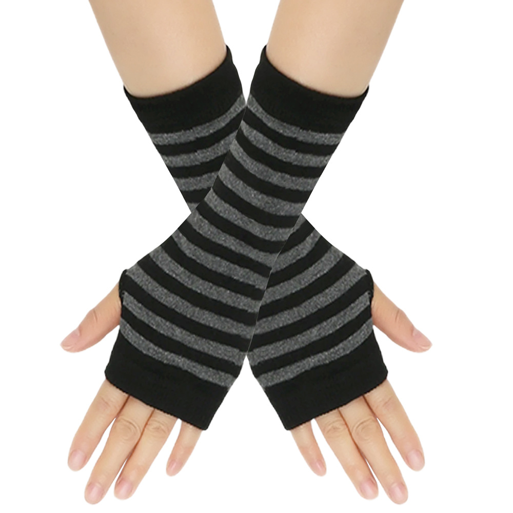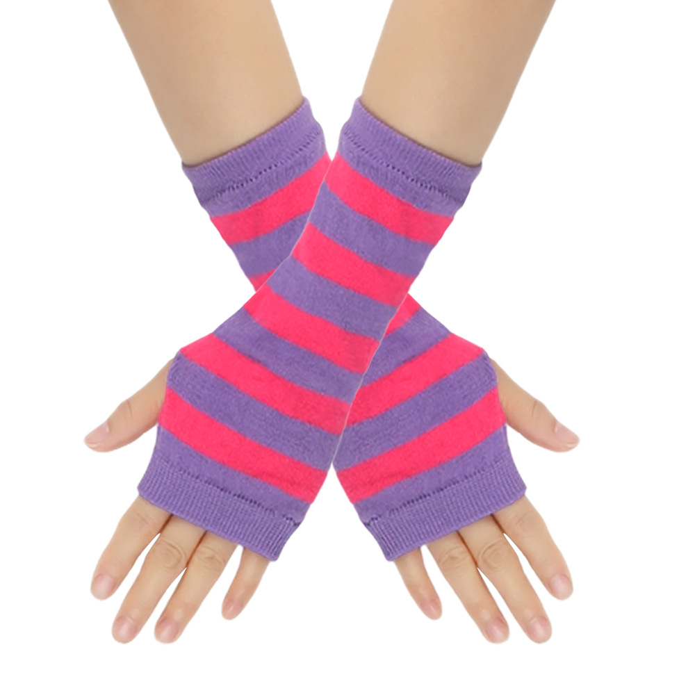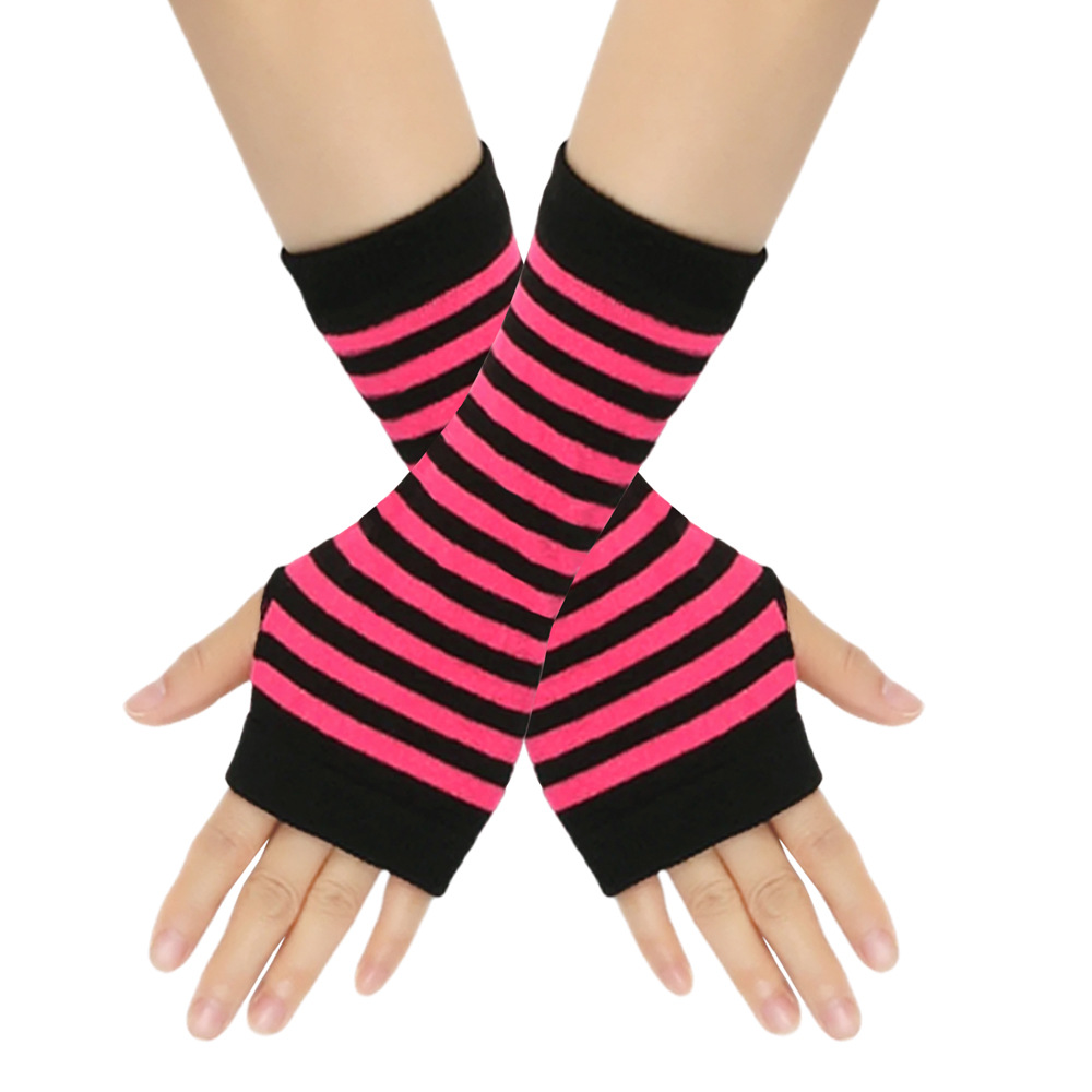 跨境针织漏指手套cospla动漫条纹穿指手腕袖套儿童露指手臂套薄款