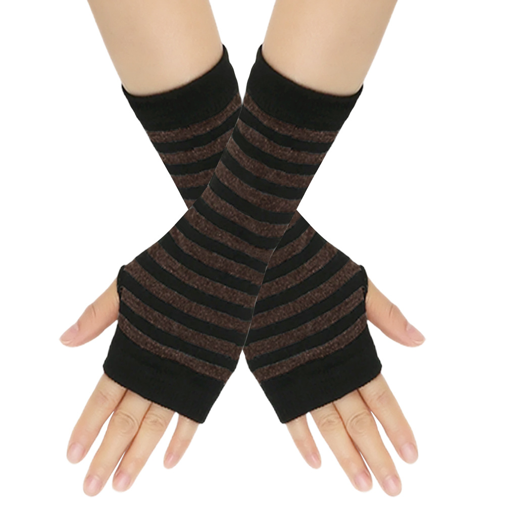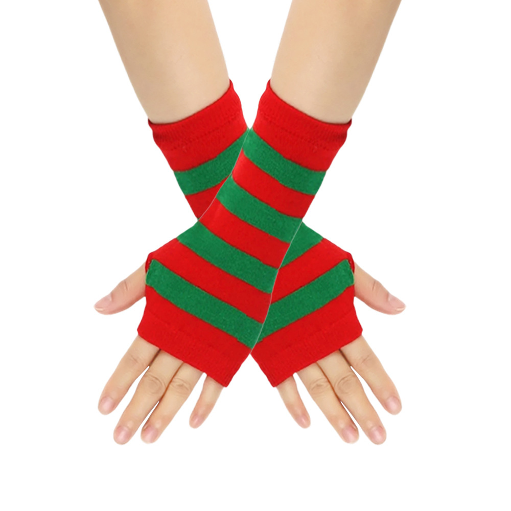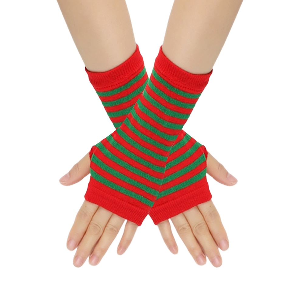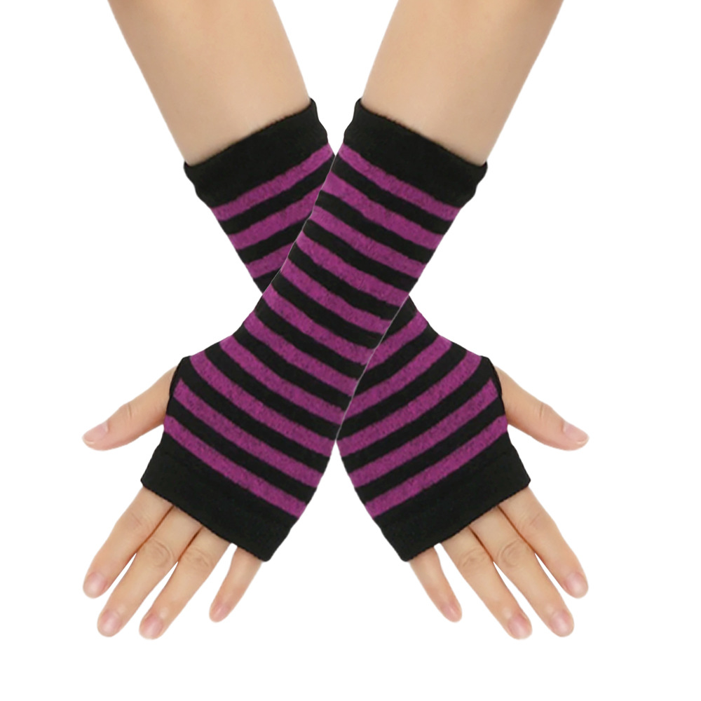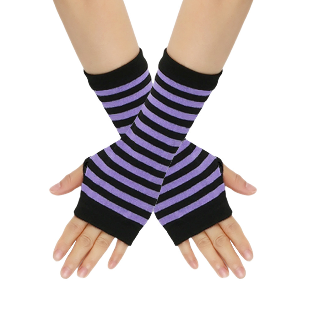 跨境针织漏指手套cospla动漫条纹穿指手腕袖套儿童露指手臂套薄款