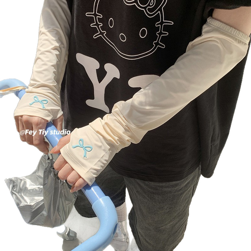 feytiy 奶糖蝴蝶结 凉感防晒冰袖户外防紫外线袖套半指手臂套夏季
