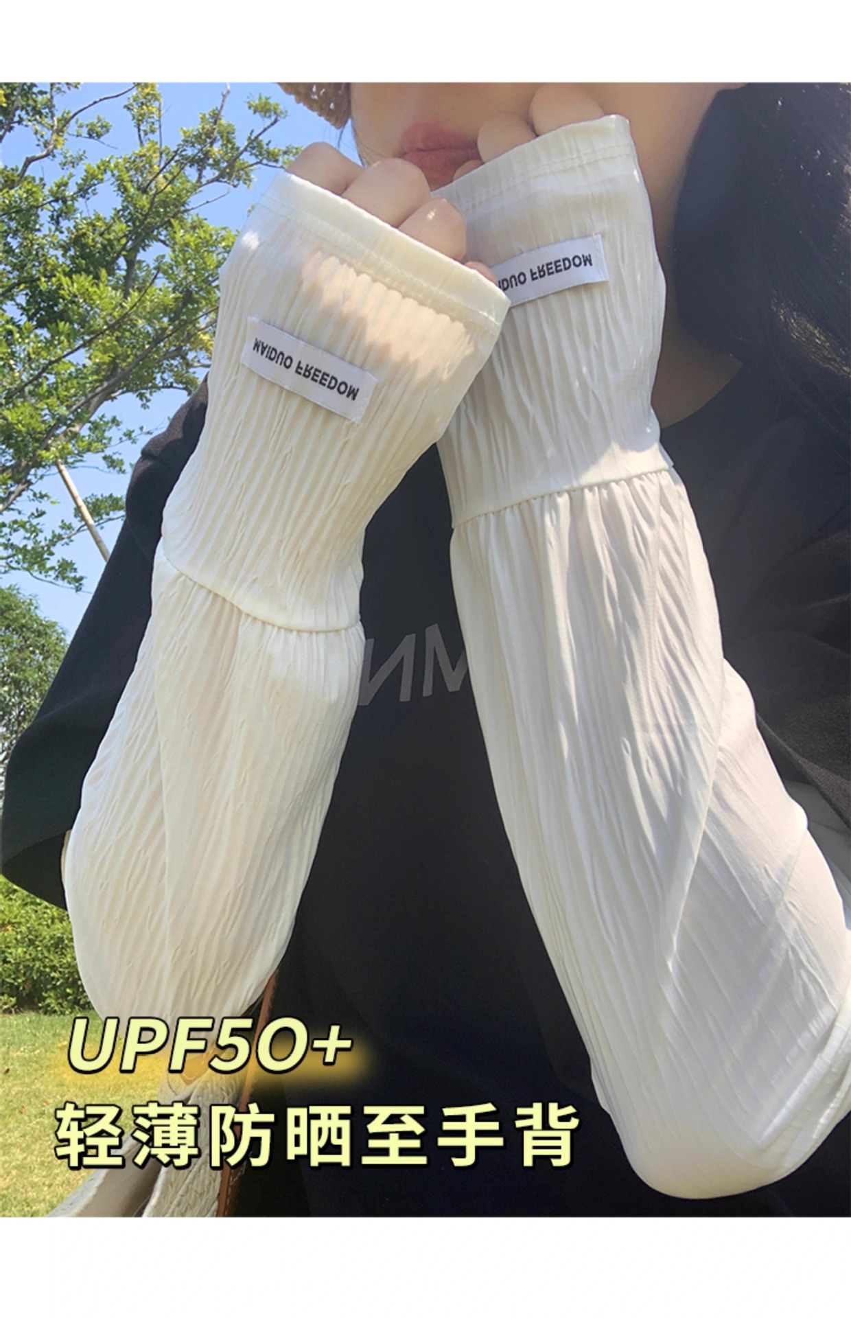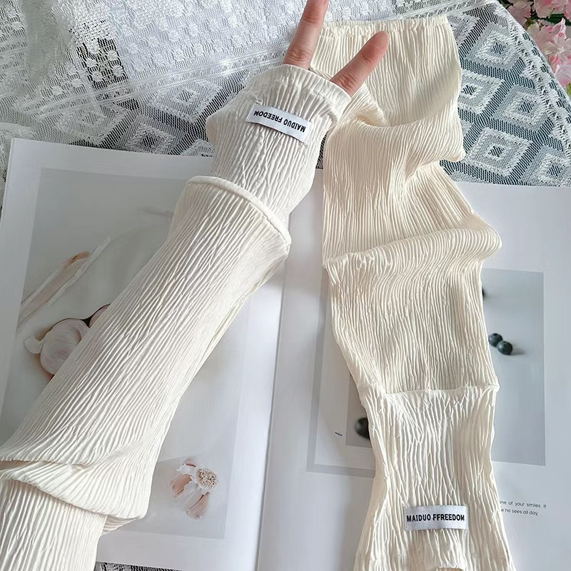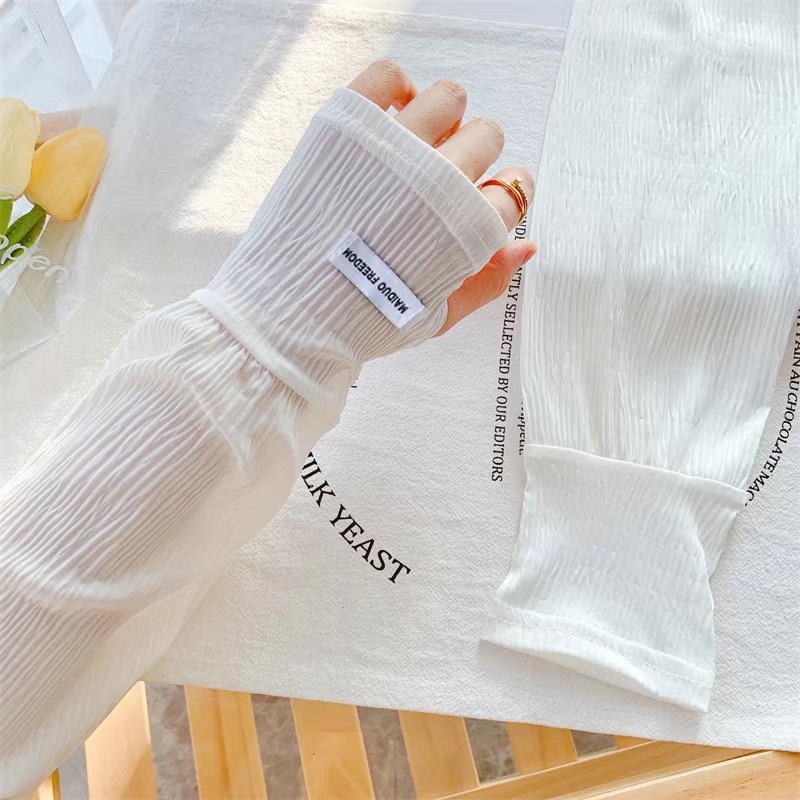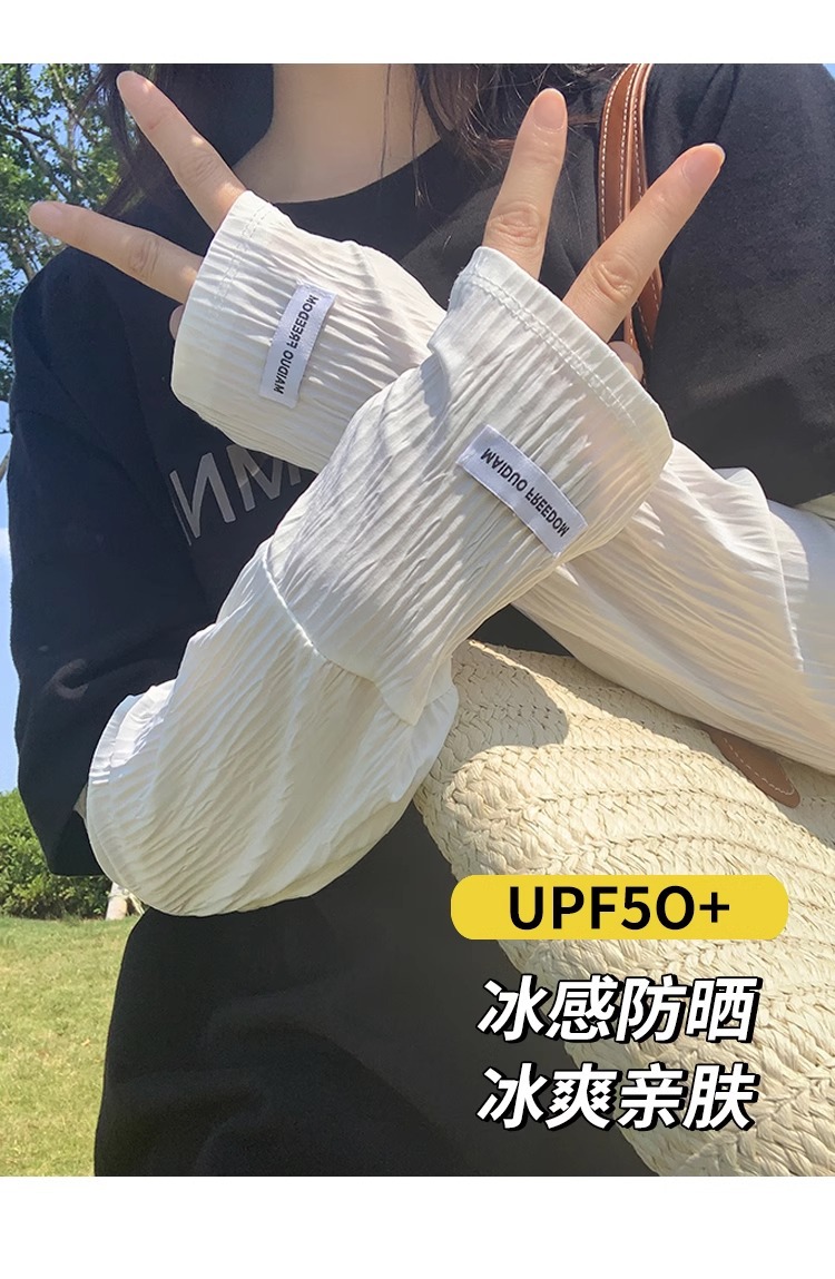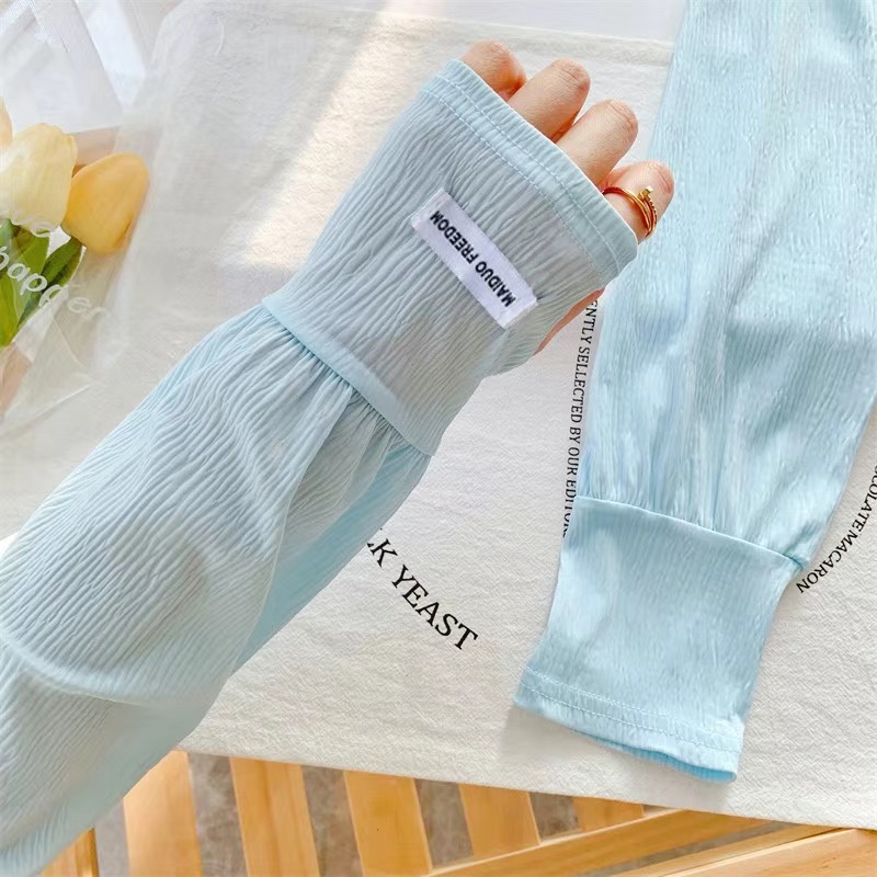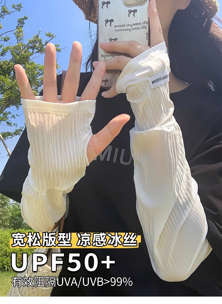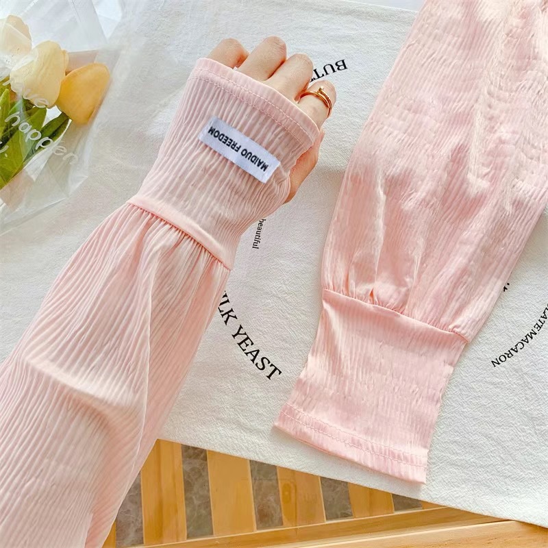 潮款韩国ins纯色带标防晒袖套女宽松开车骑行遮阳防紫外线长冰袖
