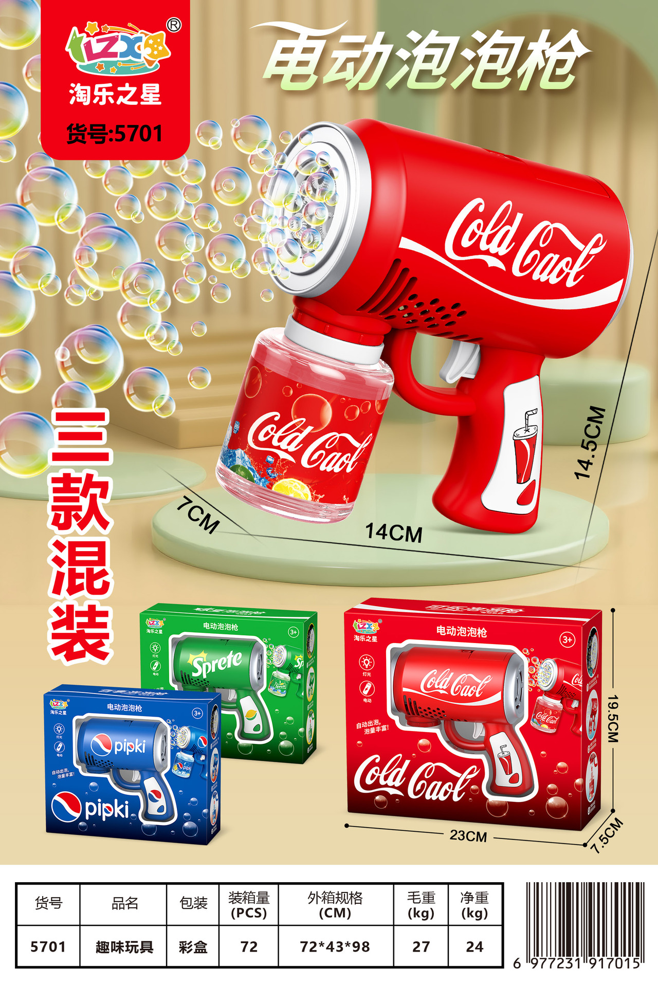 儿童网红泡泡枪手持全自动可乐冰淇淋户外吹泡泡机玩具地摊批发
