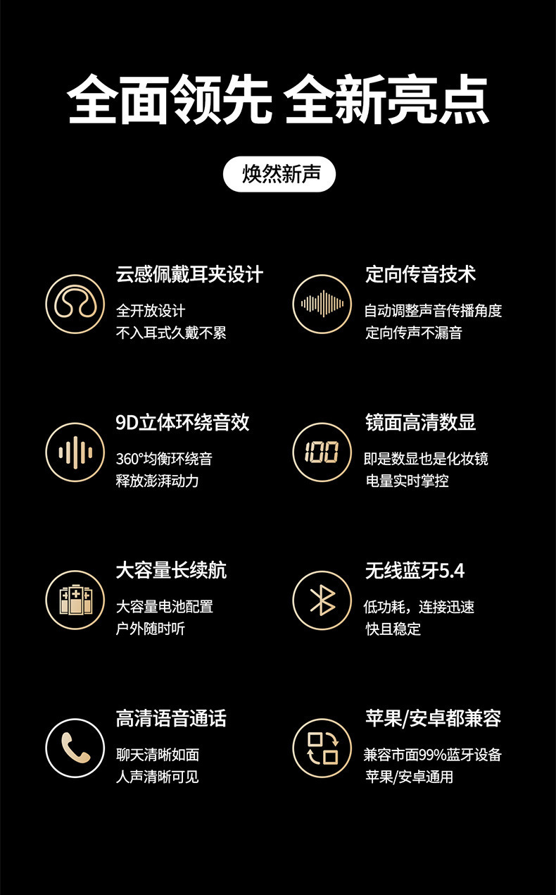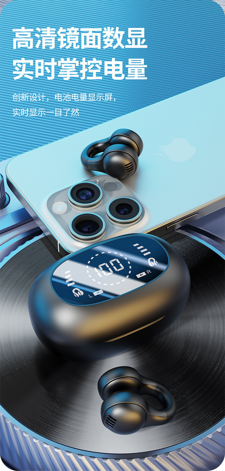 2025新款不入耳夹耳式耳机骨传导无线蓝牙耳机超长续航智能大数显