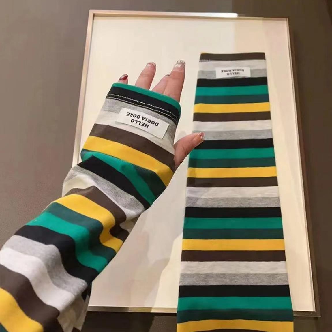 2025新款拼色条纹防晒袖套女生冰丝宽松夏季外出遮阳防紫外线护臂