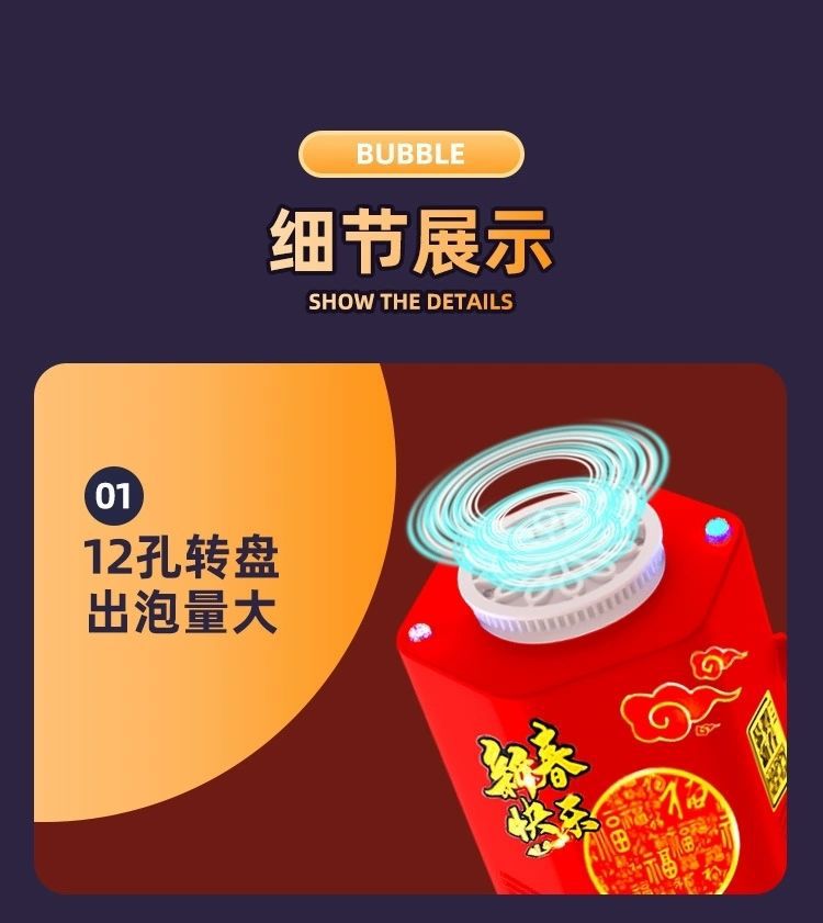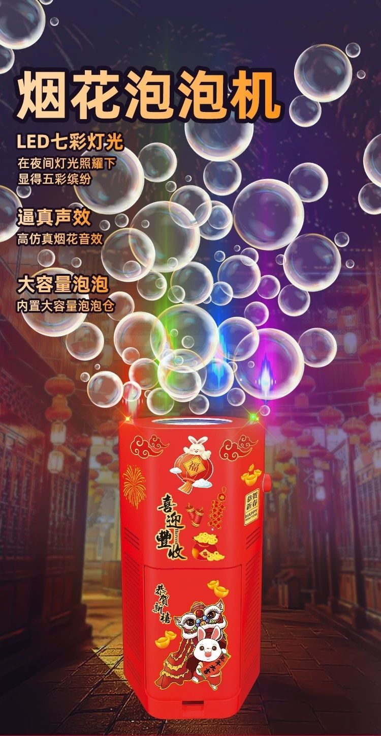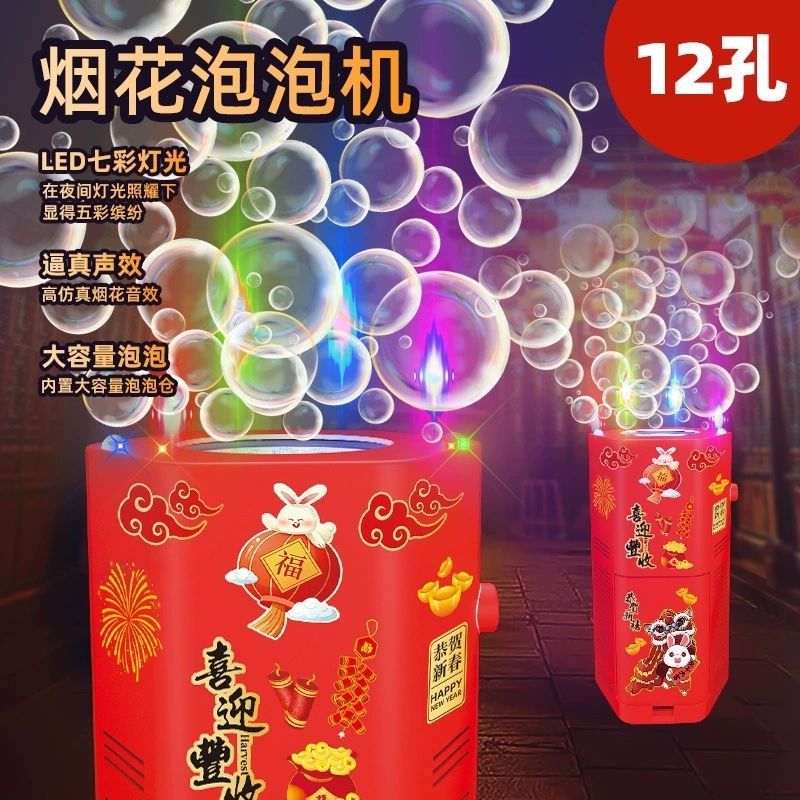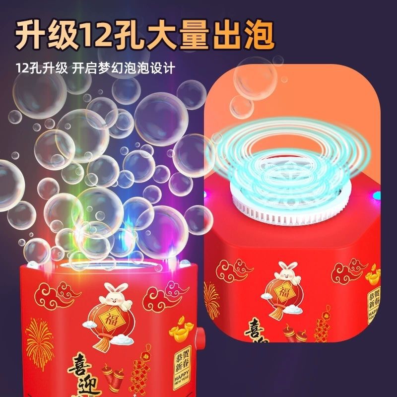 新年烟花泡泡机过年玩具发光音效婚礼礼花电动吹泡泡新年儿童玩具