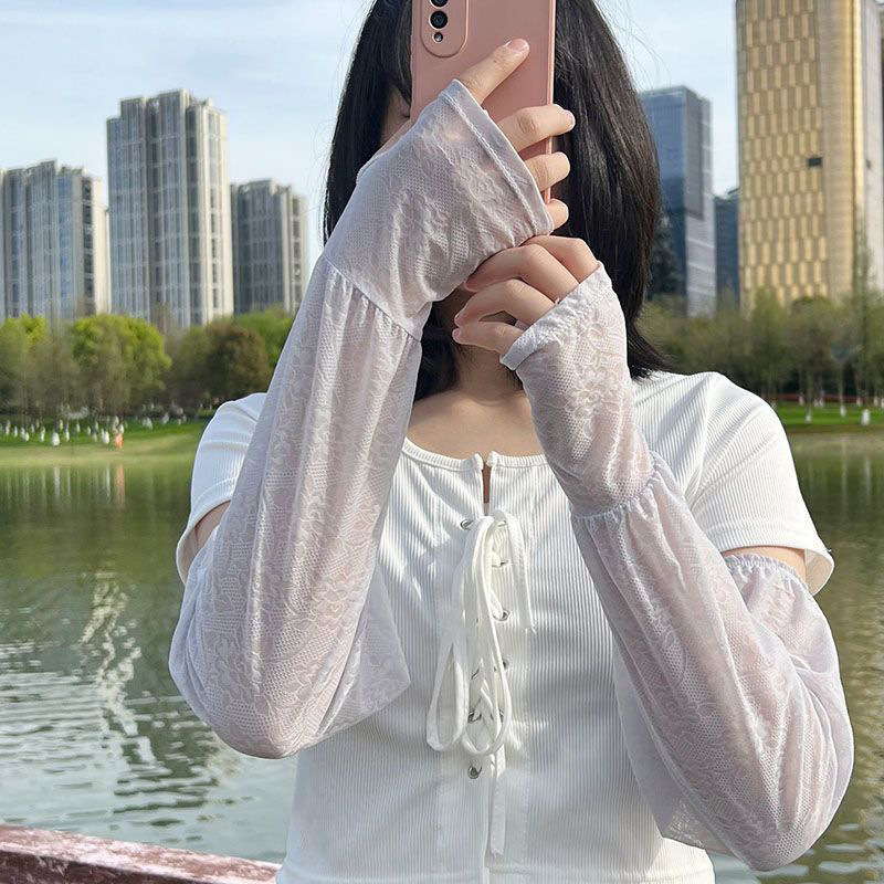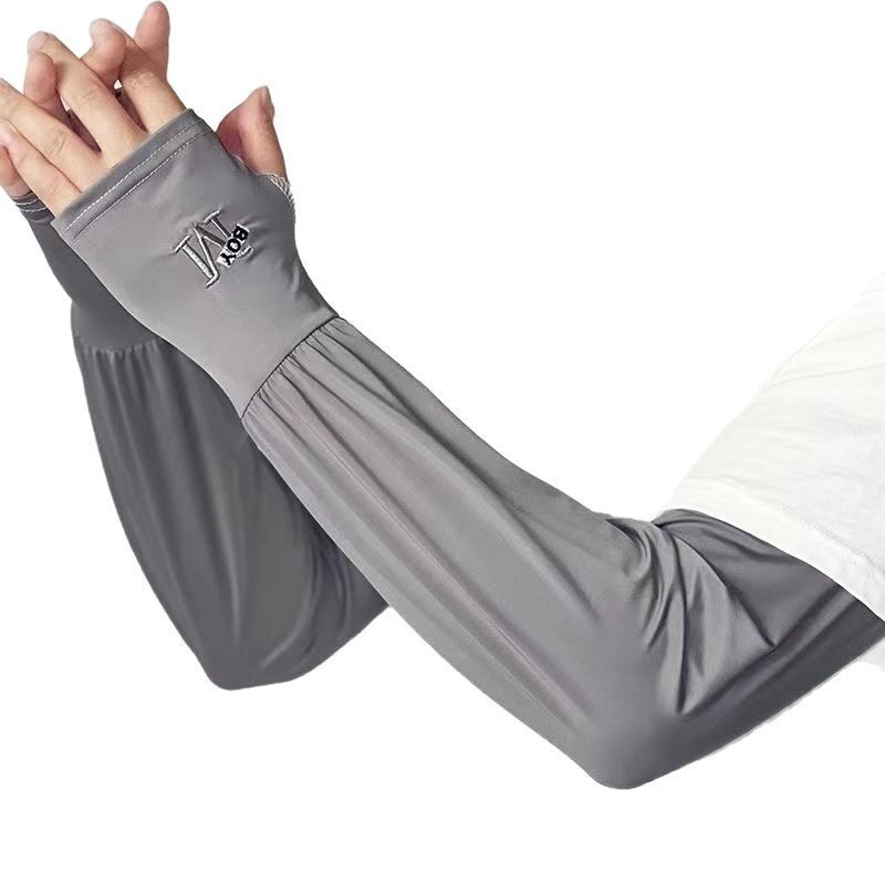 夏天R字母冰袖女款防晒防紫外线夏季纯色骑行开车宽松男士冰丝袖