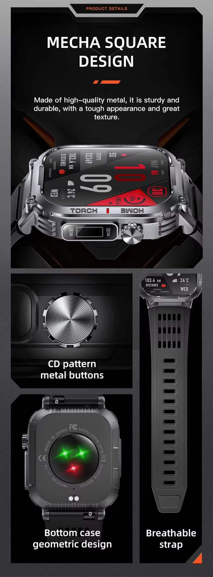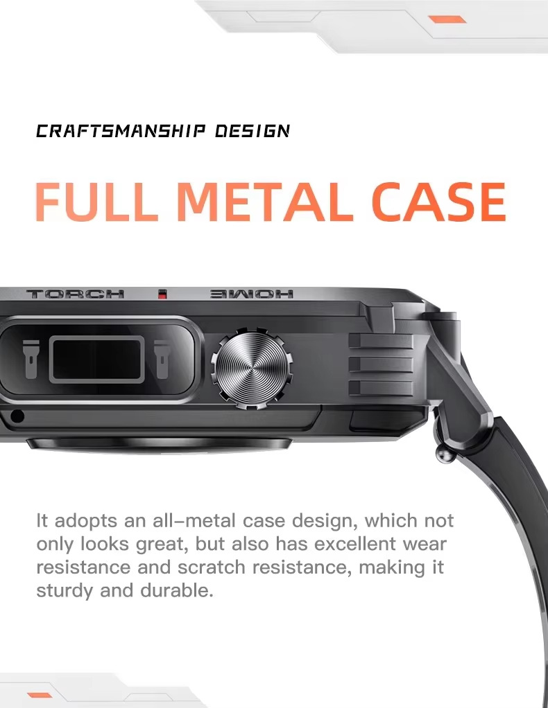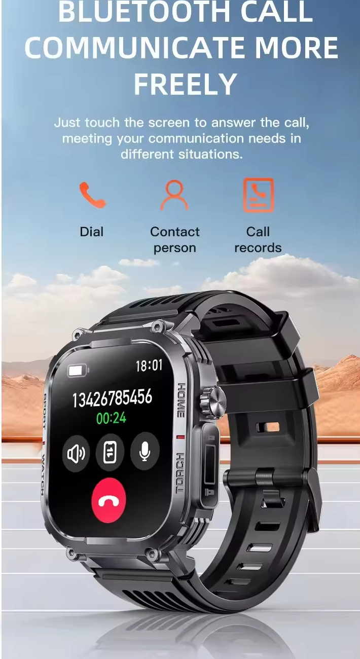 跨境新品S320B蓝牙通话LED手电筒智能手表指南针音乐播放心率手表