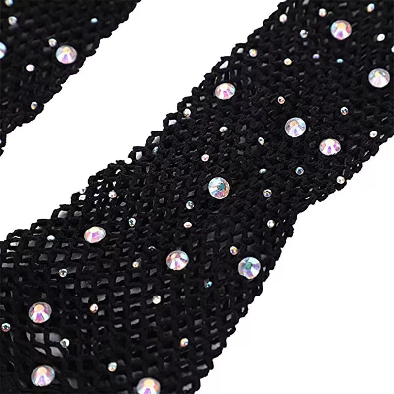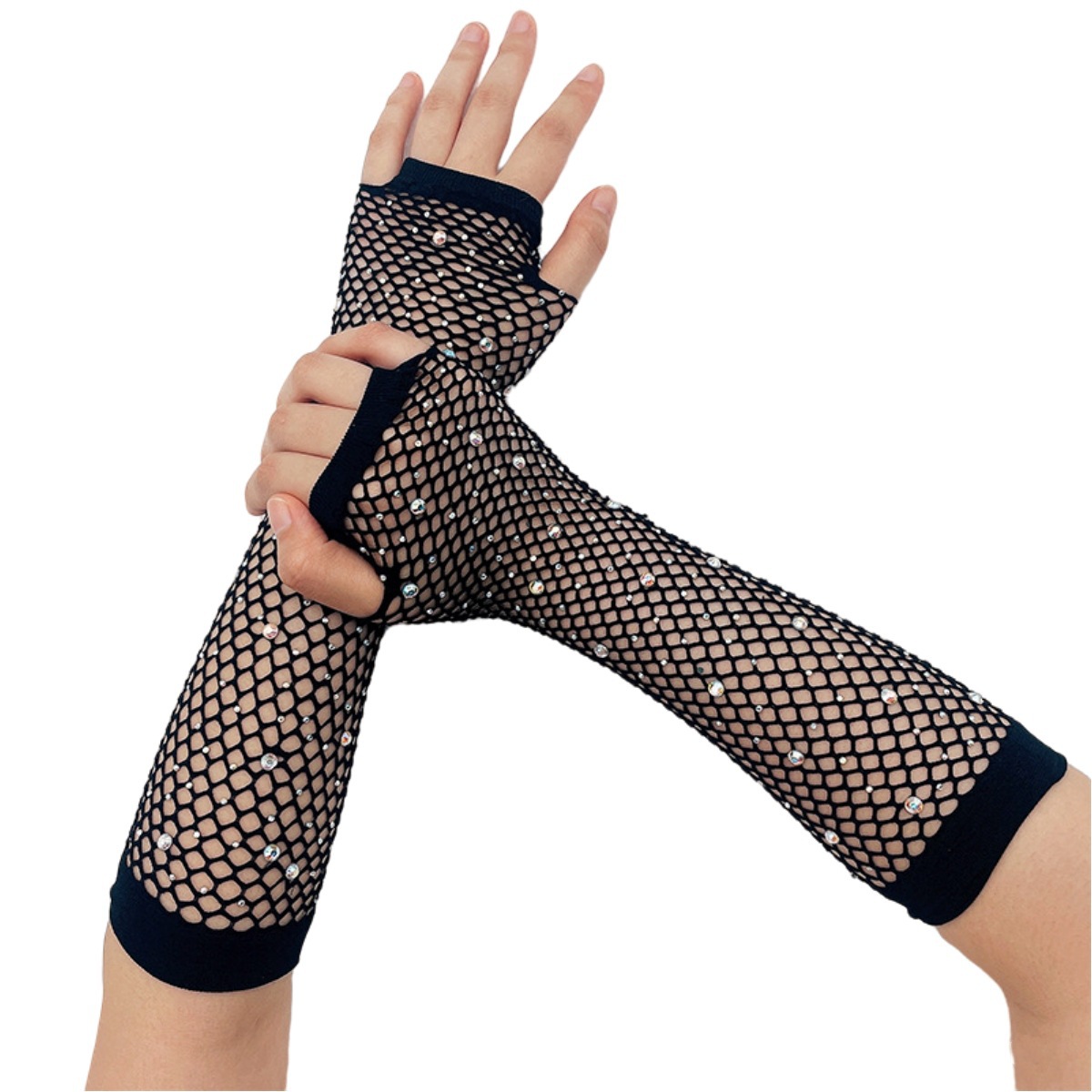 烫钻防晒手套派对渔网弹力网眼袖套欧美复古跨境性感烫钻半指手套