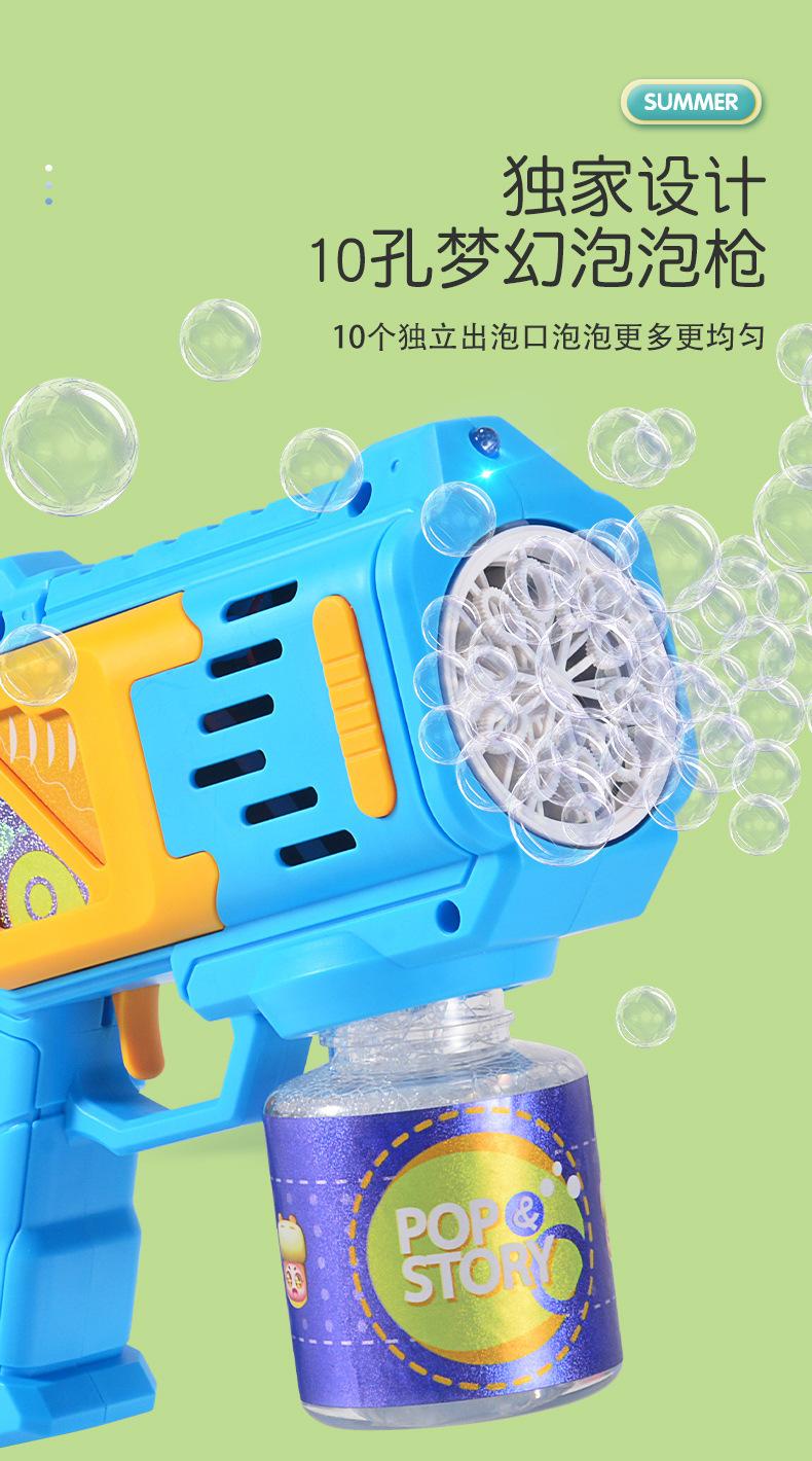 跨境新款儿童电动泡泡机迷你10孔全自动手持加特林吹泡泡玩具批发
