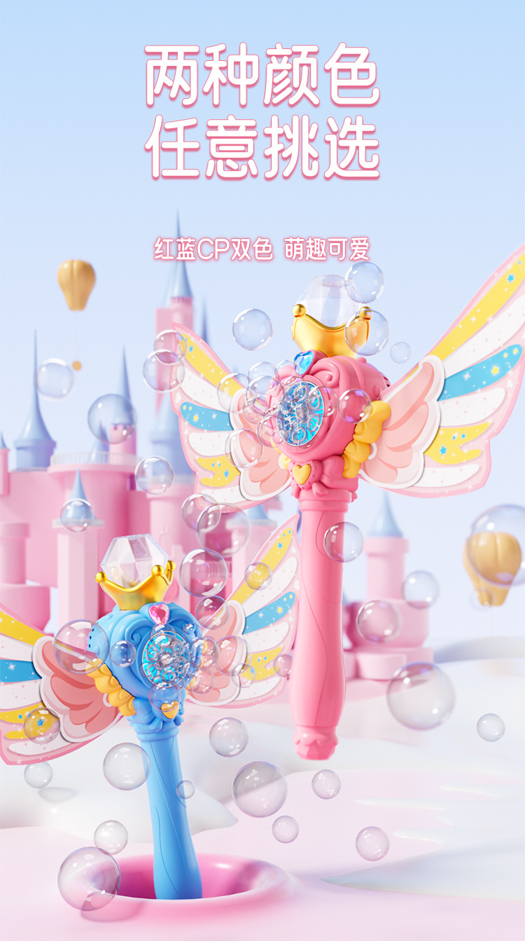 魔法棒天使泡泡枪儿童手持蓝色粉色泡泡机电动全自动新款玩具女孩