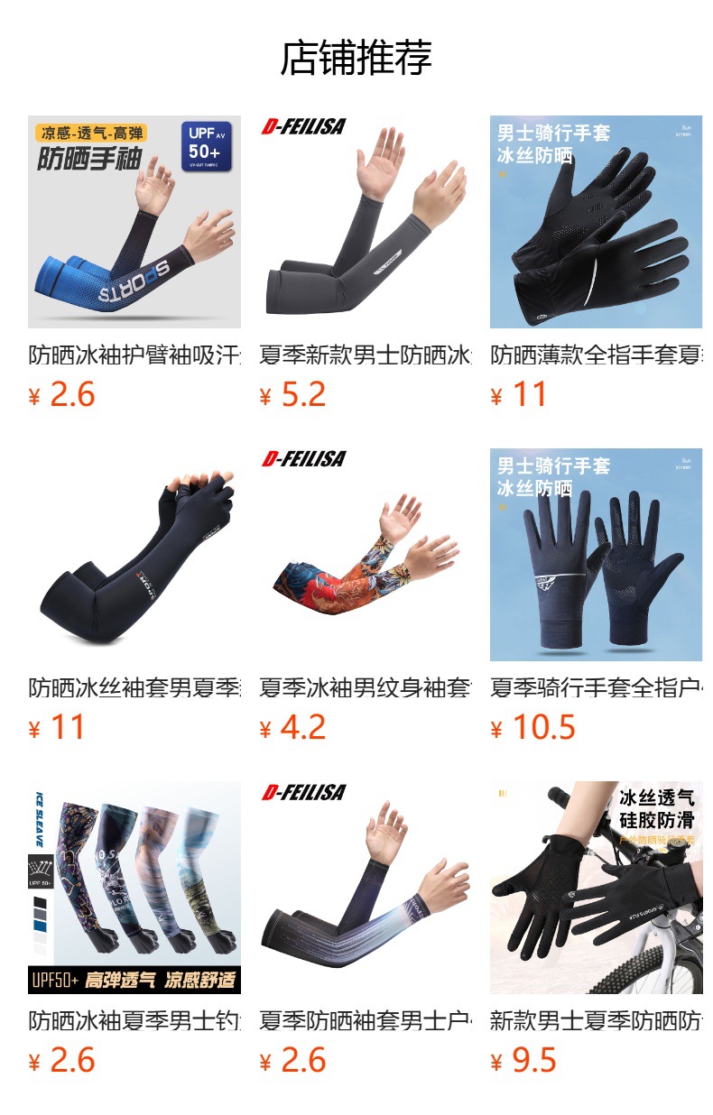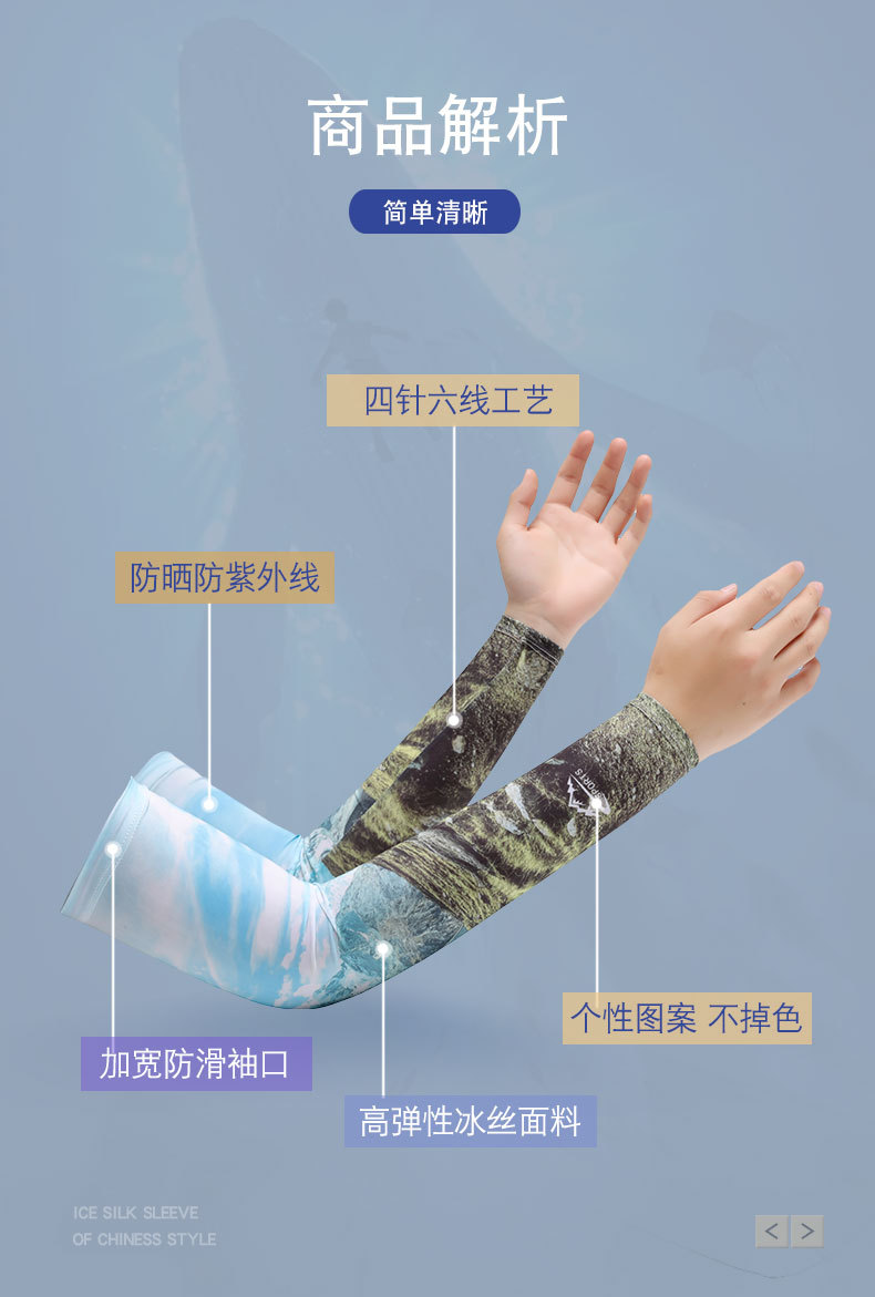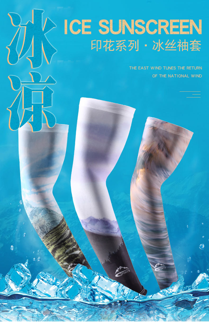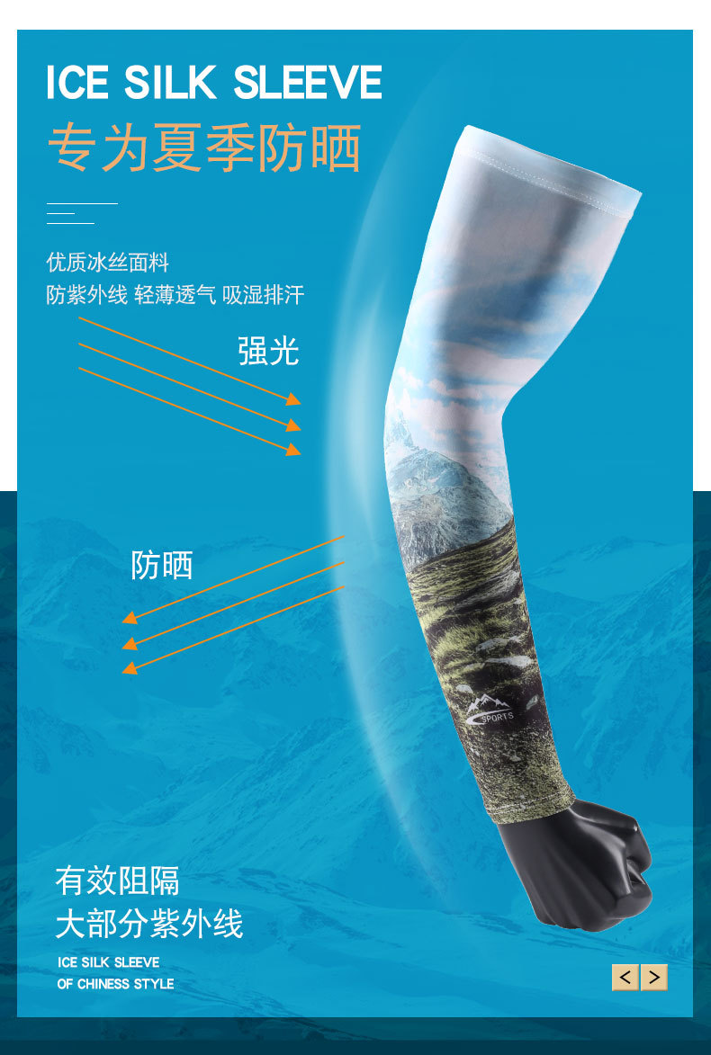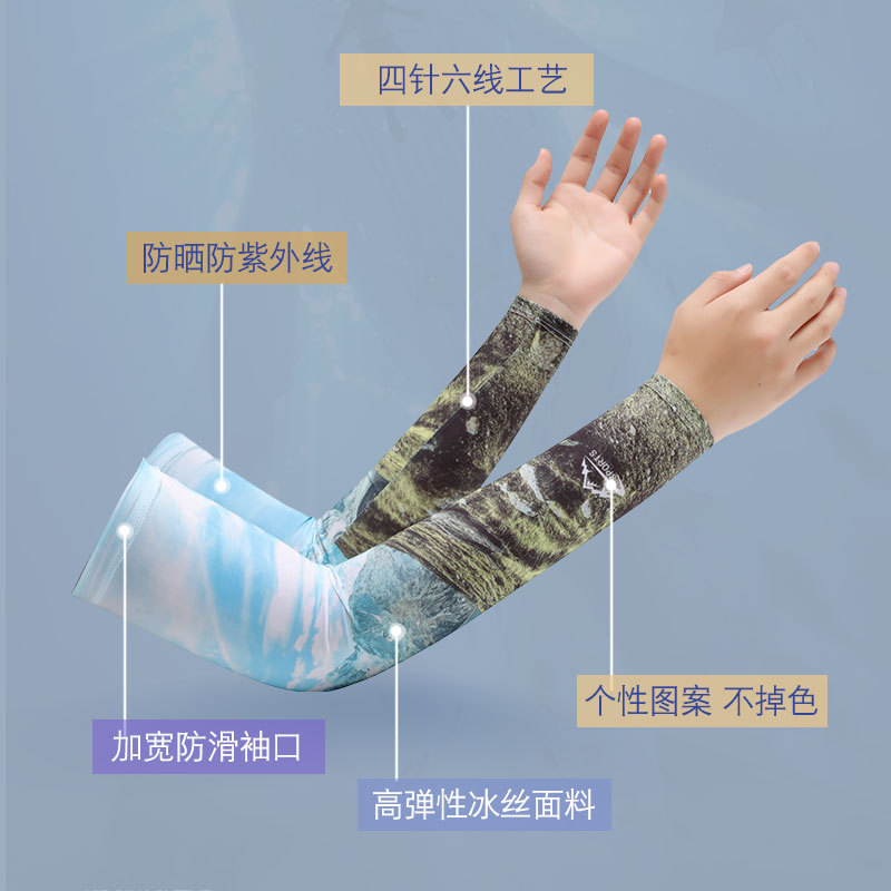 防晒冰袖夏季男士钓鱼花臂冰丝袖套防紫外线薄款户外骑行开车凉感