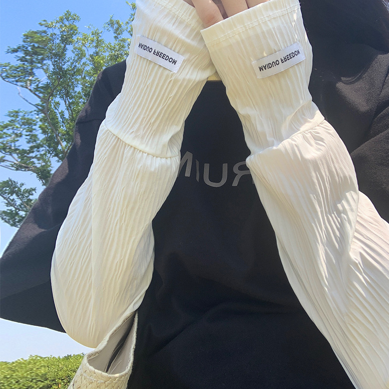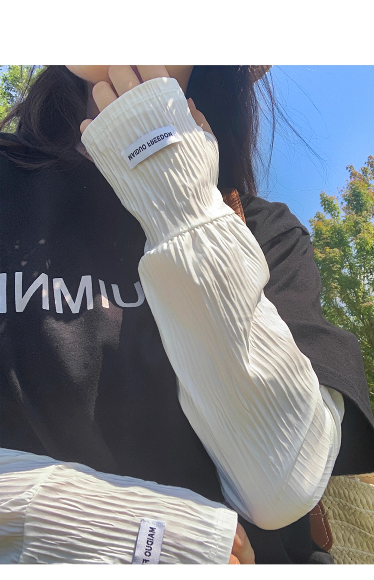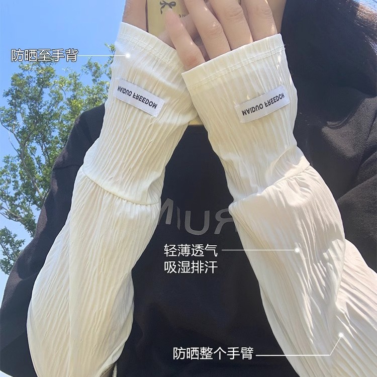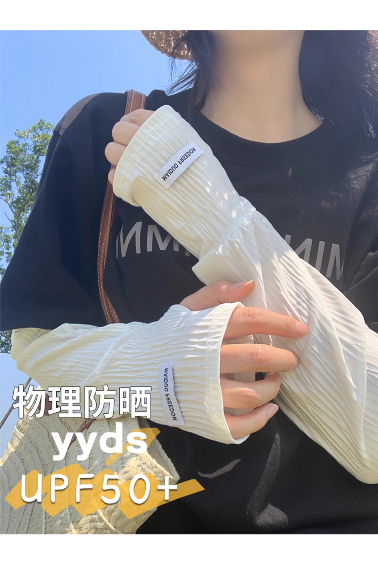2025爆款冰丝防晒袖套女新款宽松大码纯色百搭褶皱袖套冰袖通用