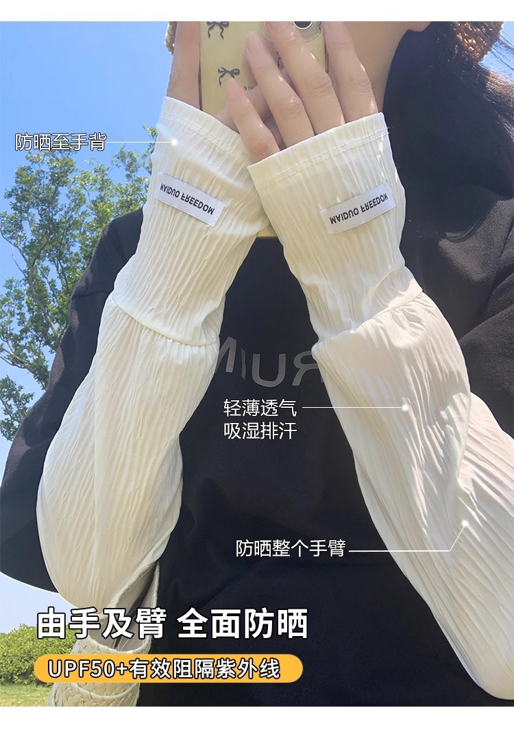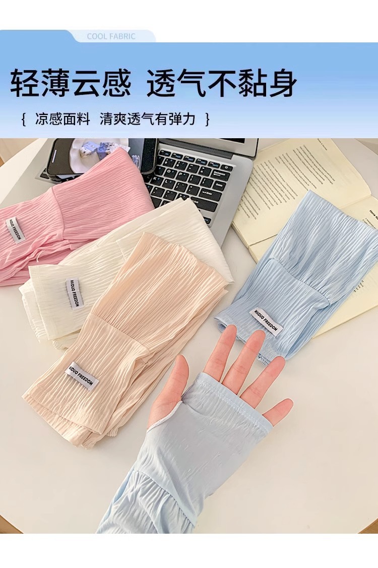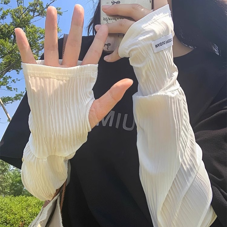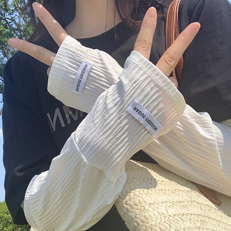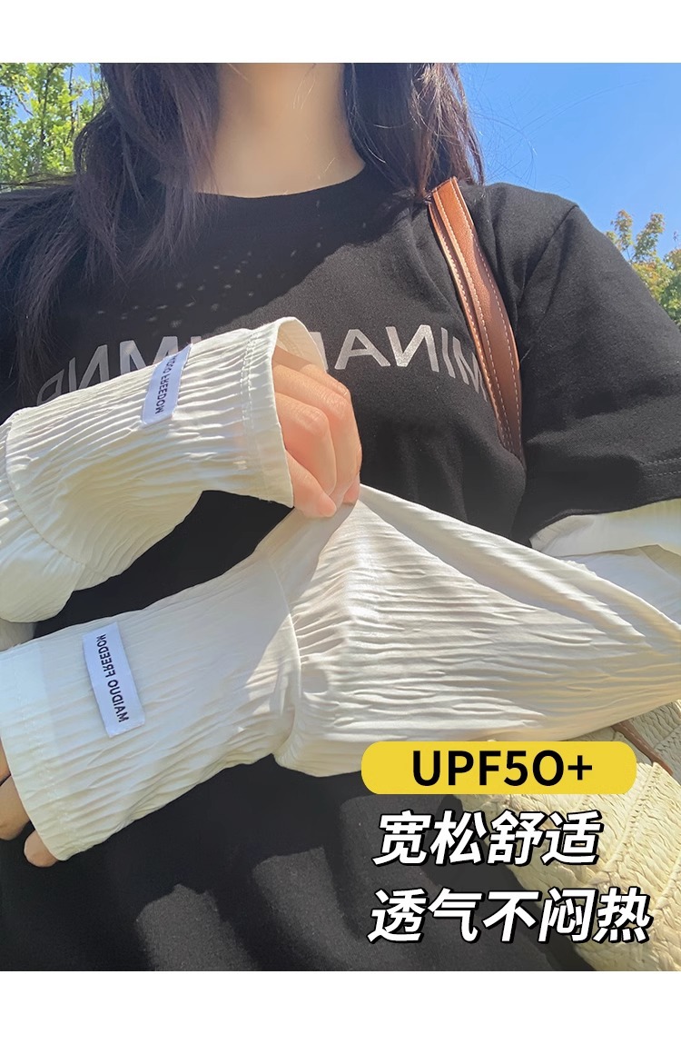 2025爆款冰丝防晒袖套女新款宽松大码纯色百搭褶皱袖套冰袖通用