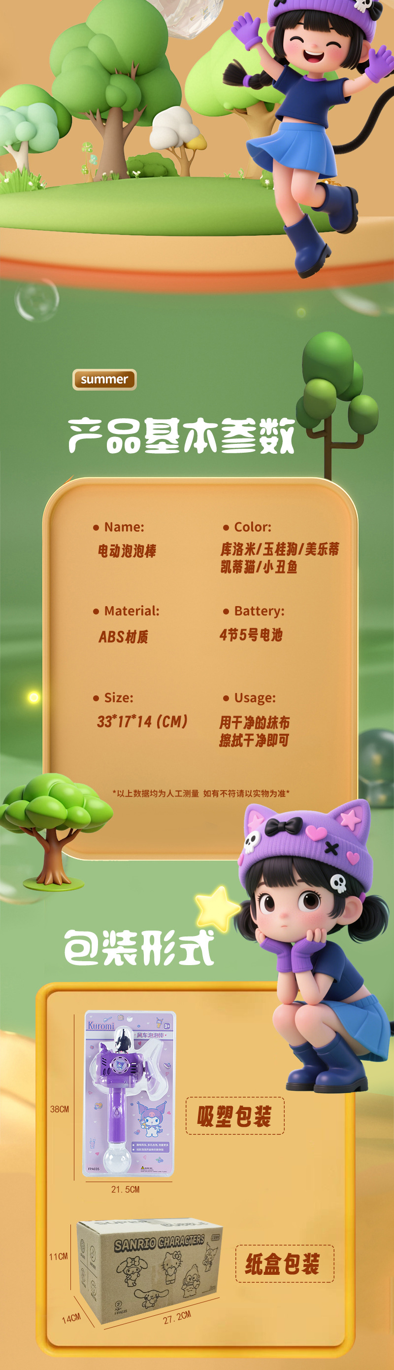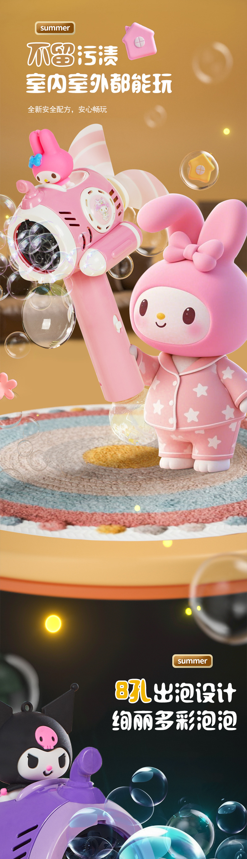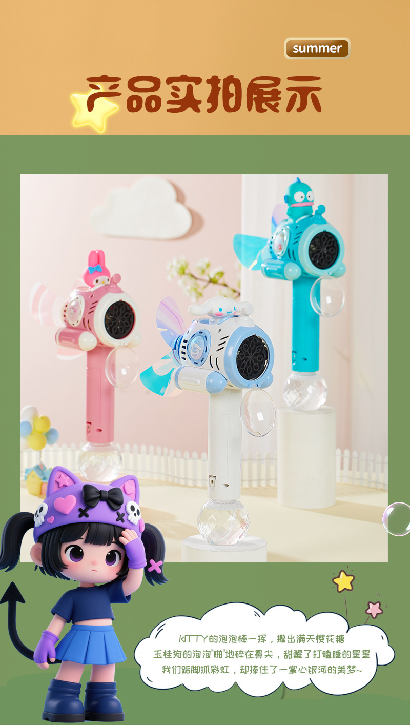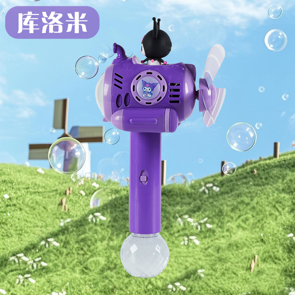 户外儿童电动泡泡机卡通库洛米手持风车泡泡棒玩具一键出泡便携