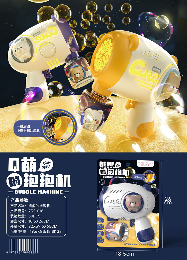 儿童吹泡泡机手持太空枪加特林新款全自动电动男女孩发光电动玩具
