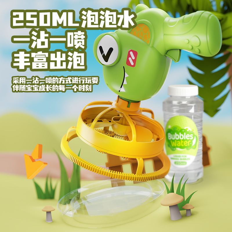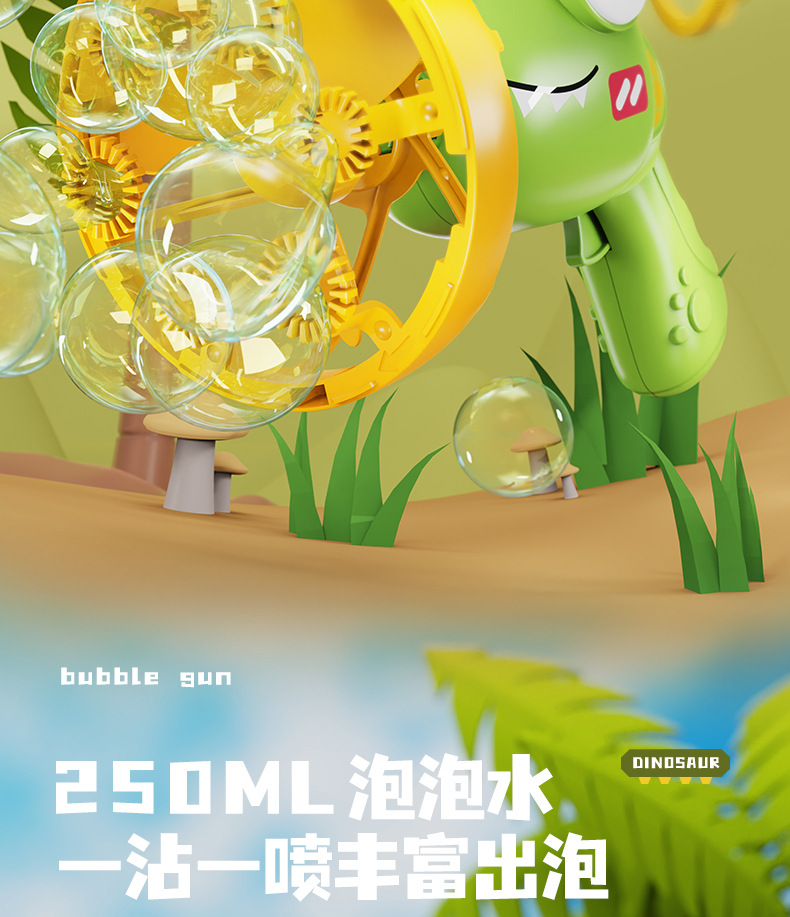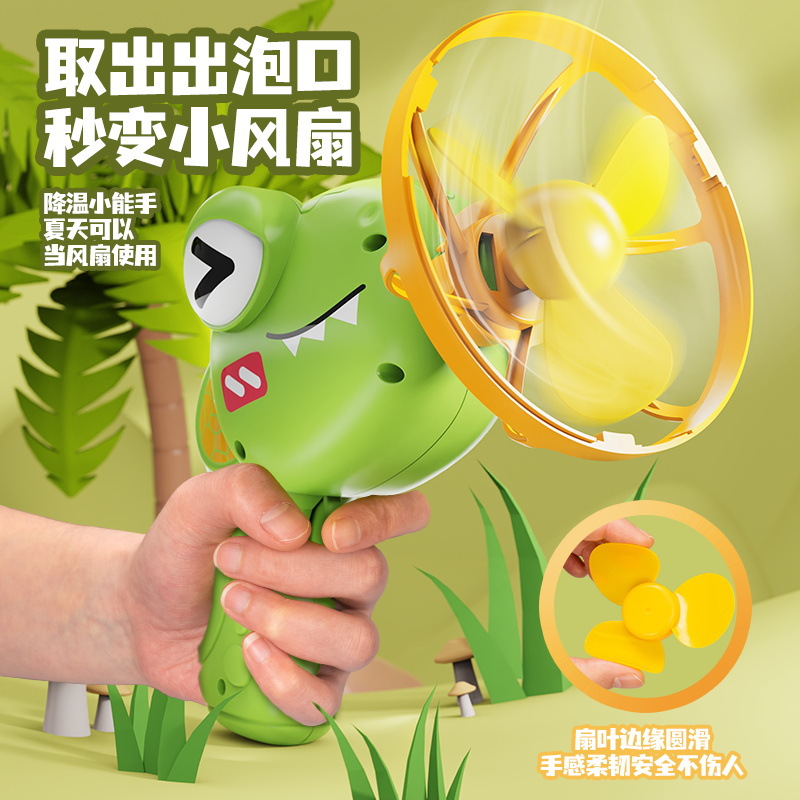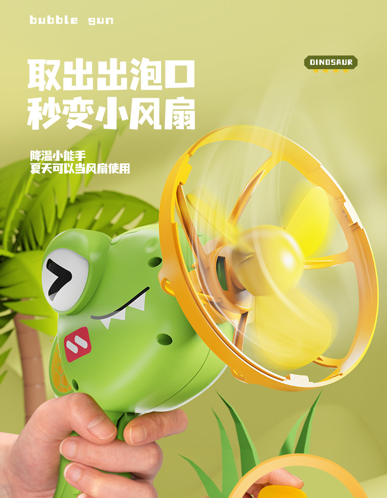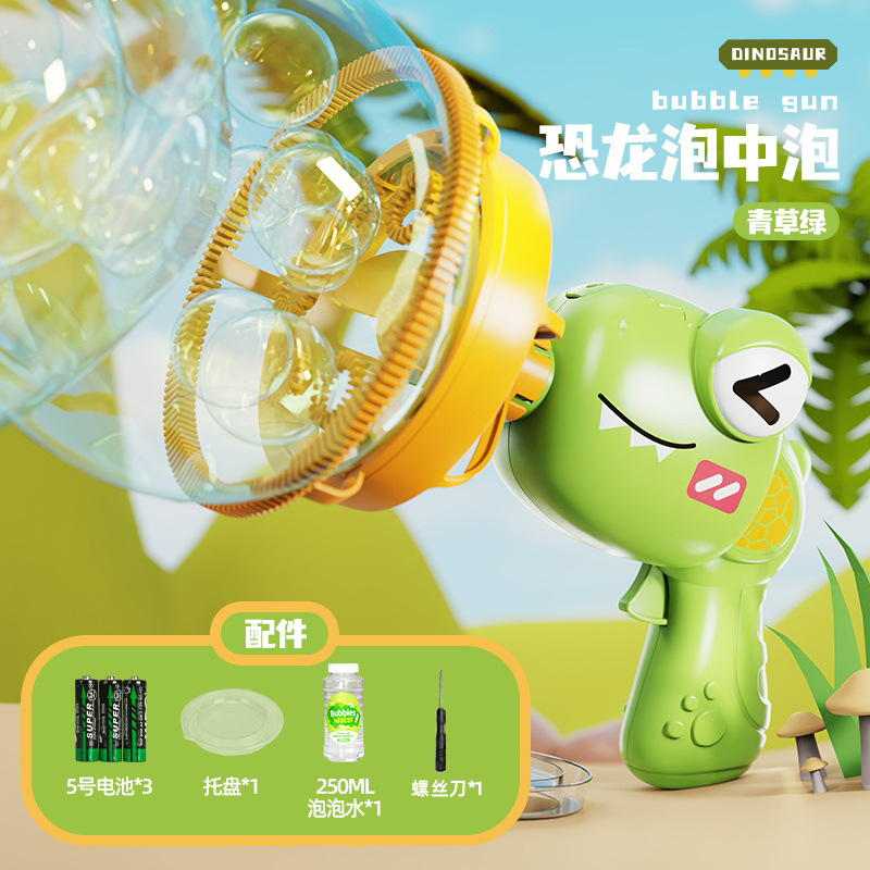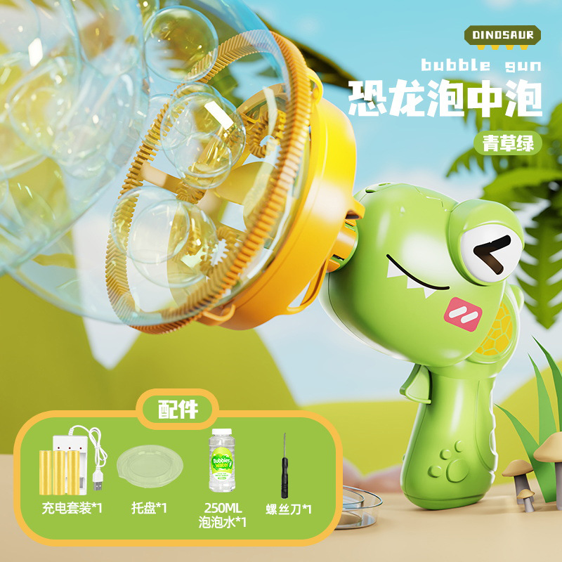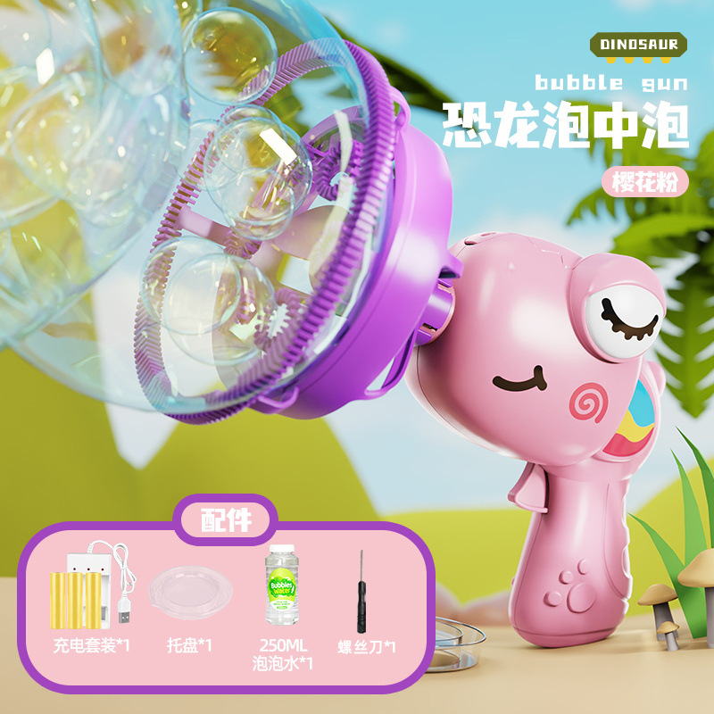 儿童新款恐龙电动泡泡枪巨型双层泡中泡手持风扇公园摆摊玩具批发