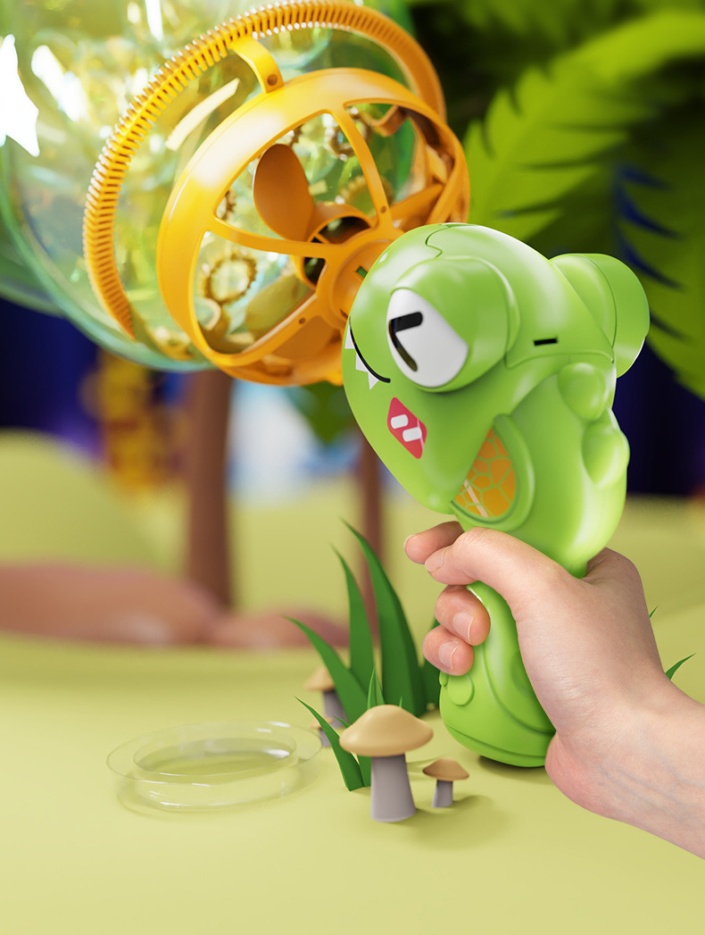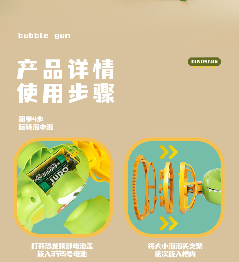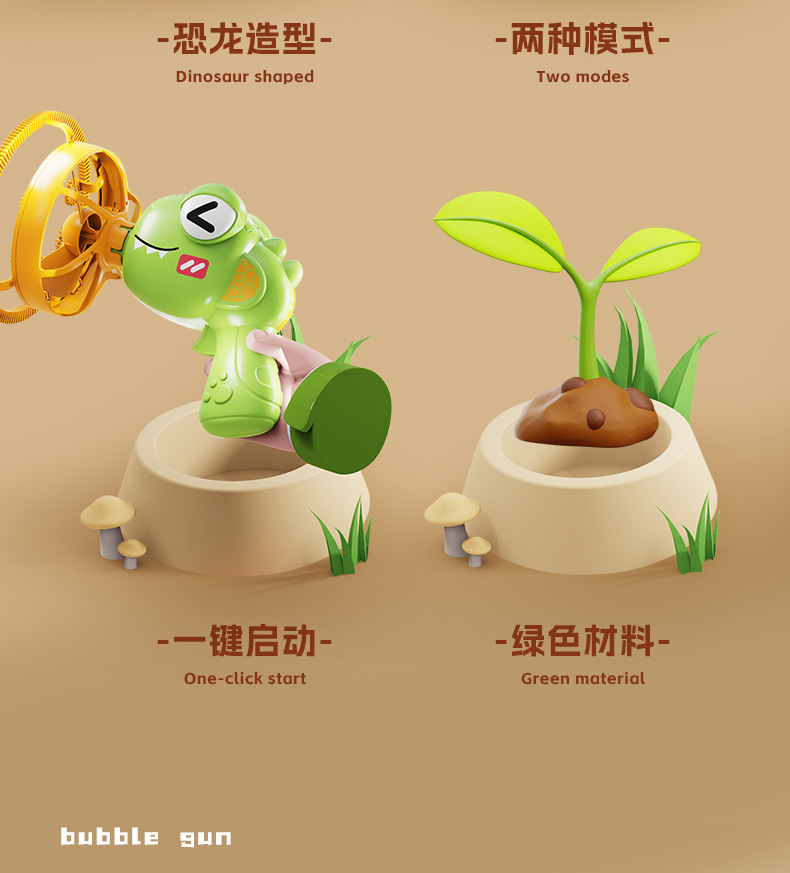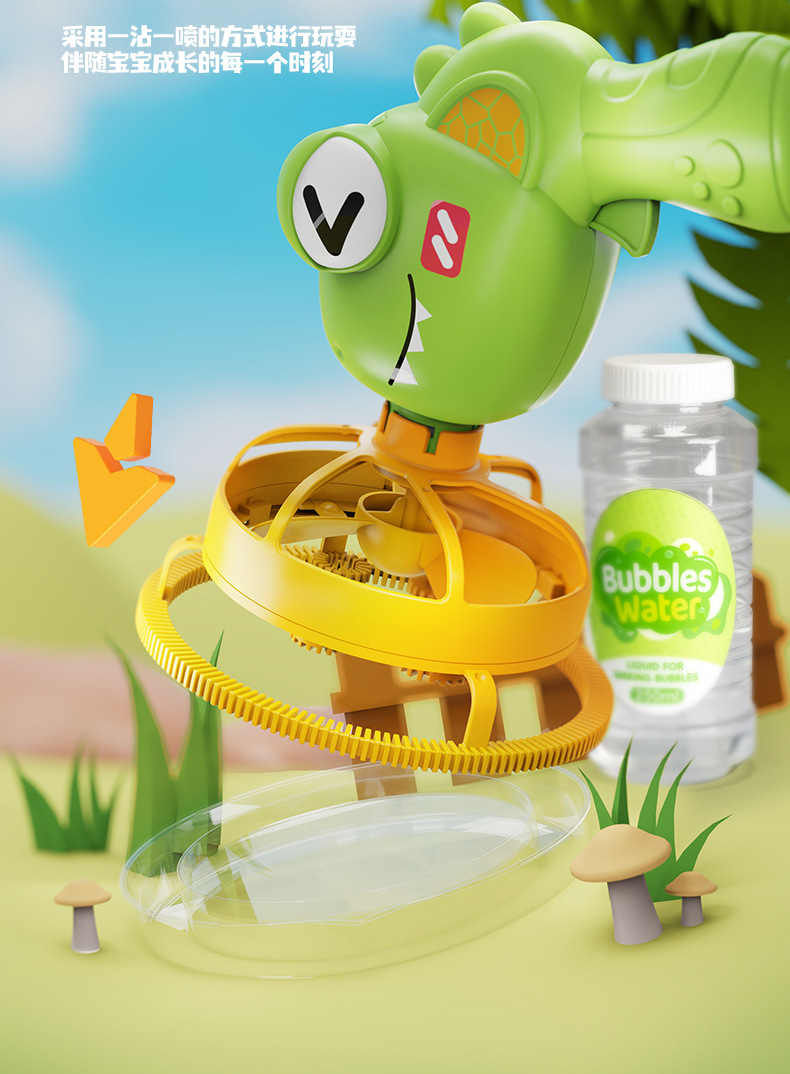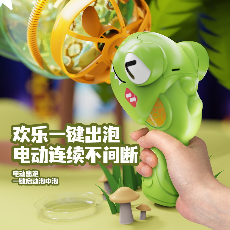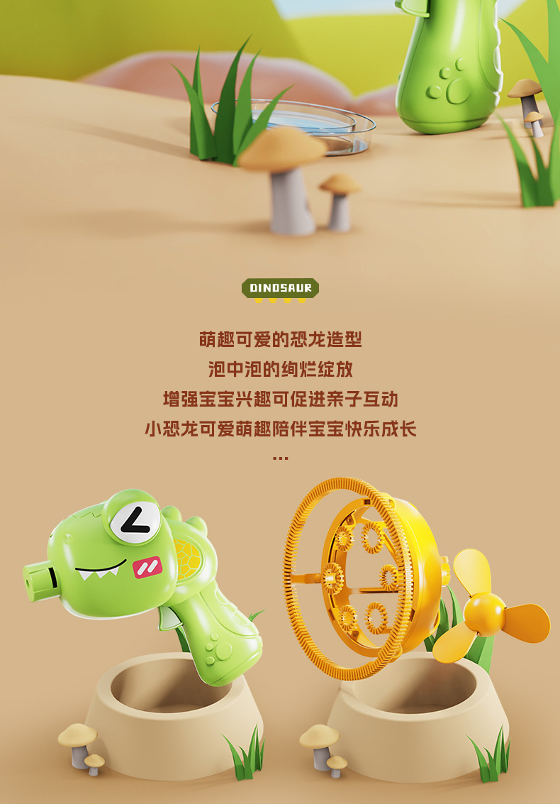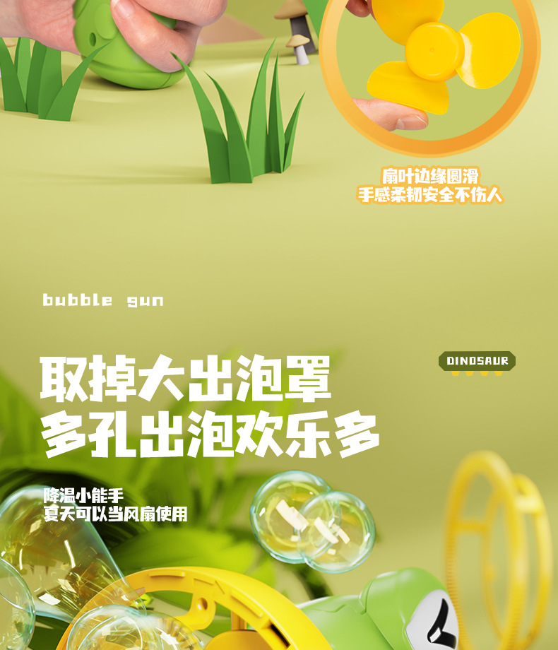 儿童新款恐龙电动泡泡枪巨型双层泡中泡手持风扇公园摆摊玩具批发