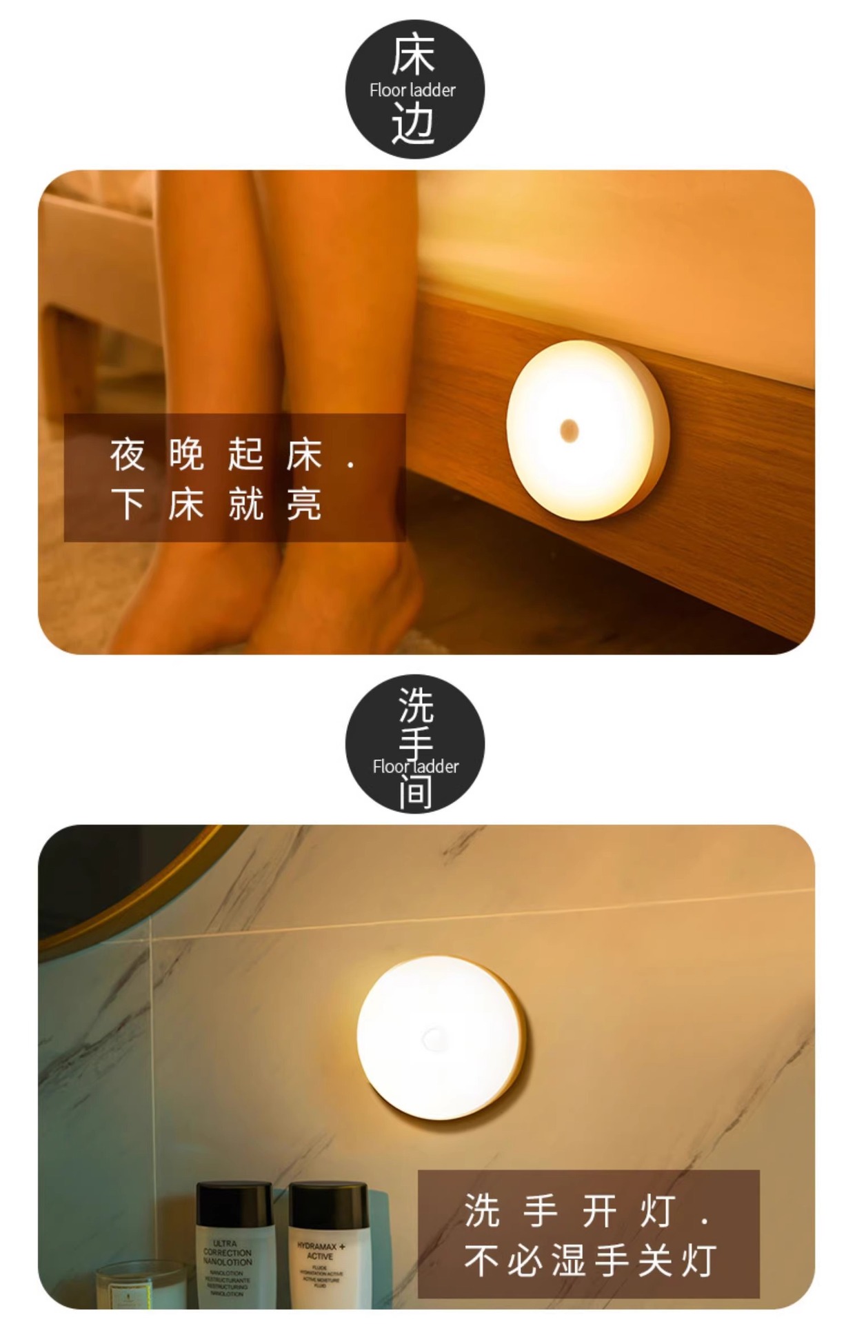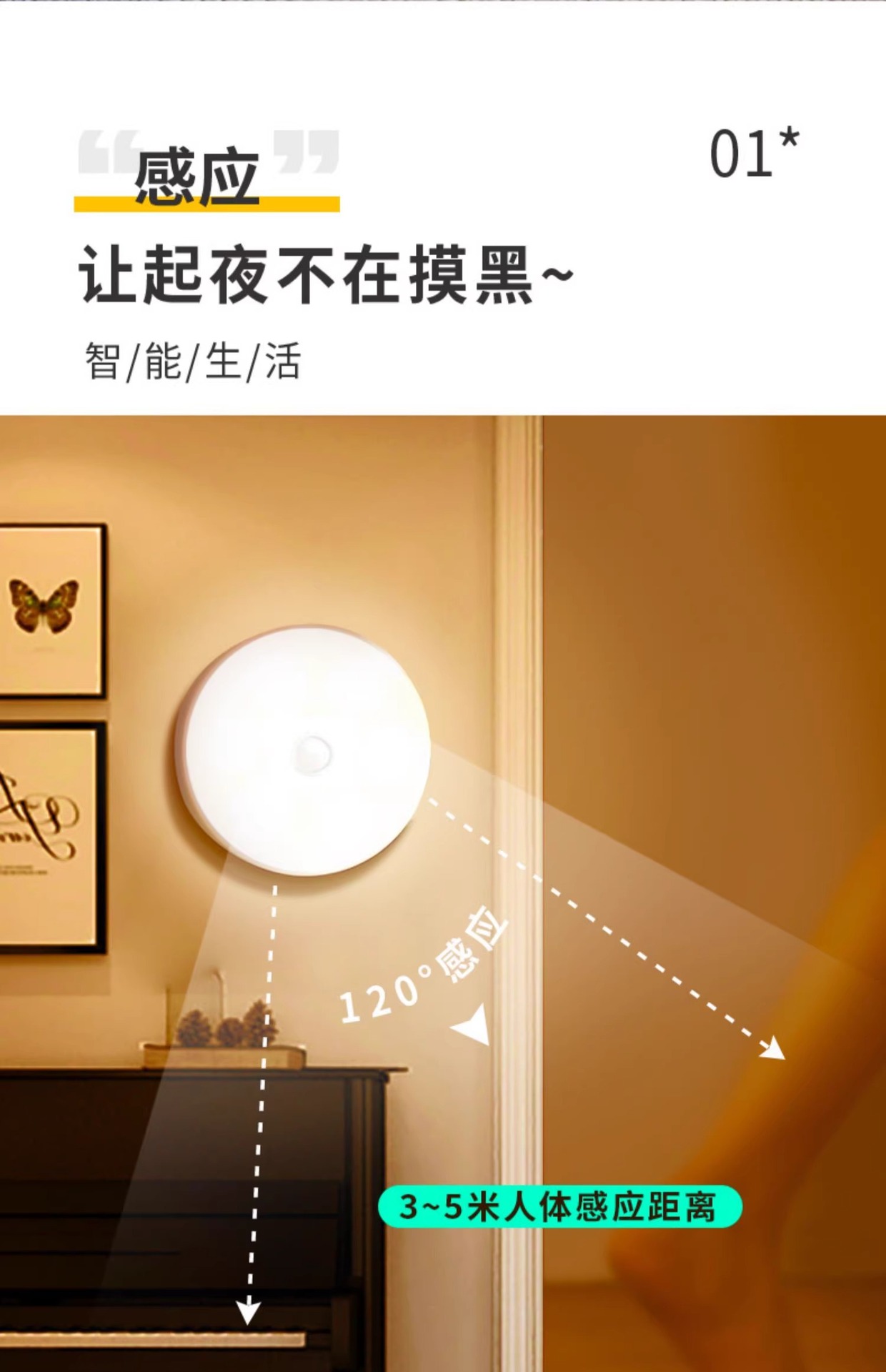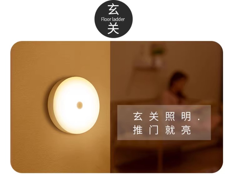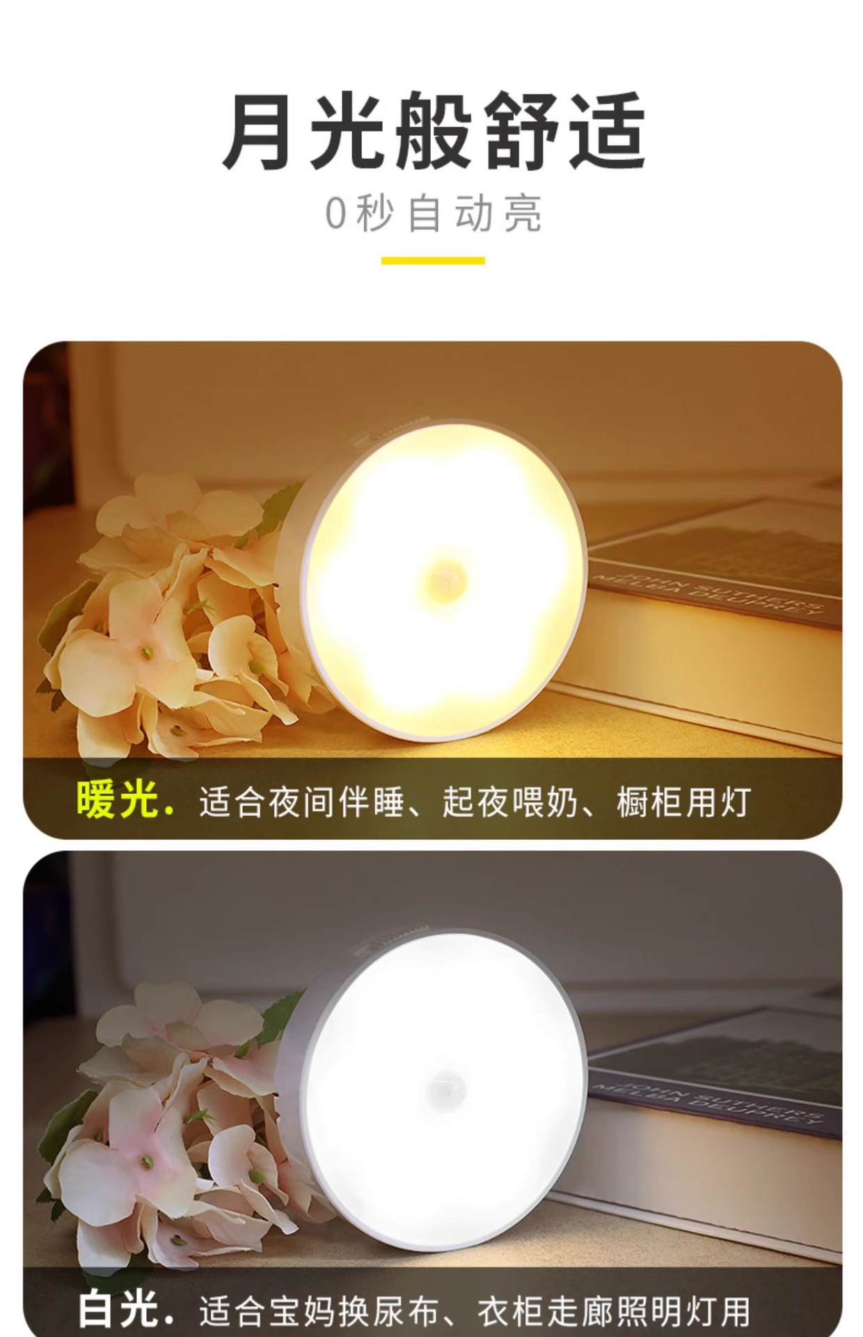 LED小夜灯床头卧室橱柜楼梯自动光控磁吸充电迷你智能人体感应灯