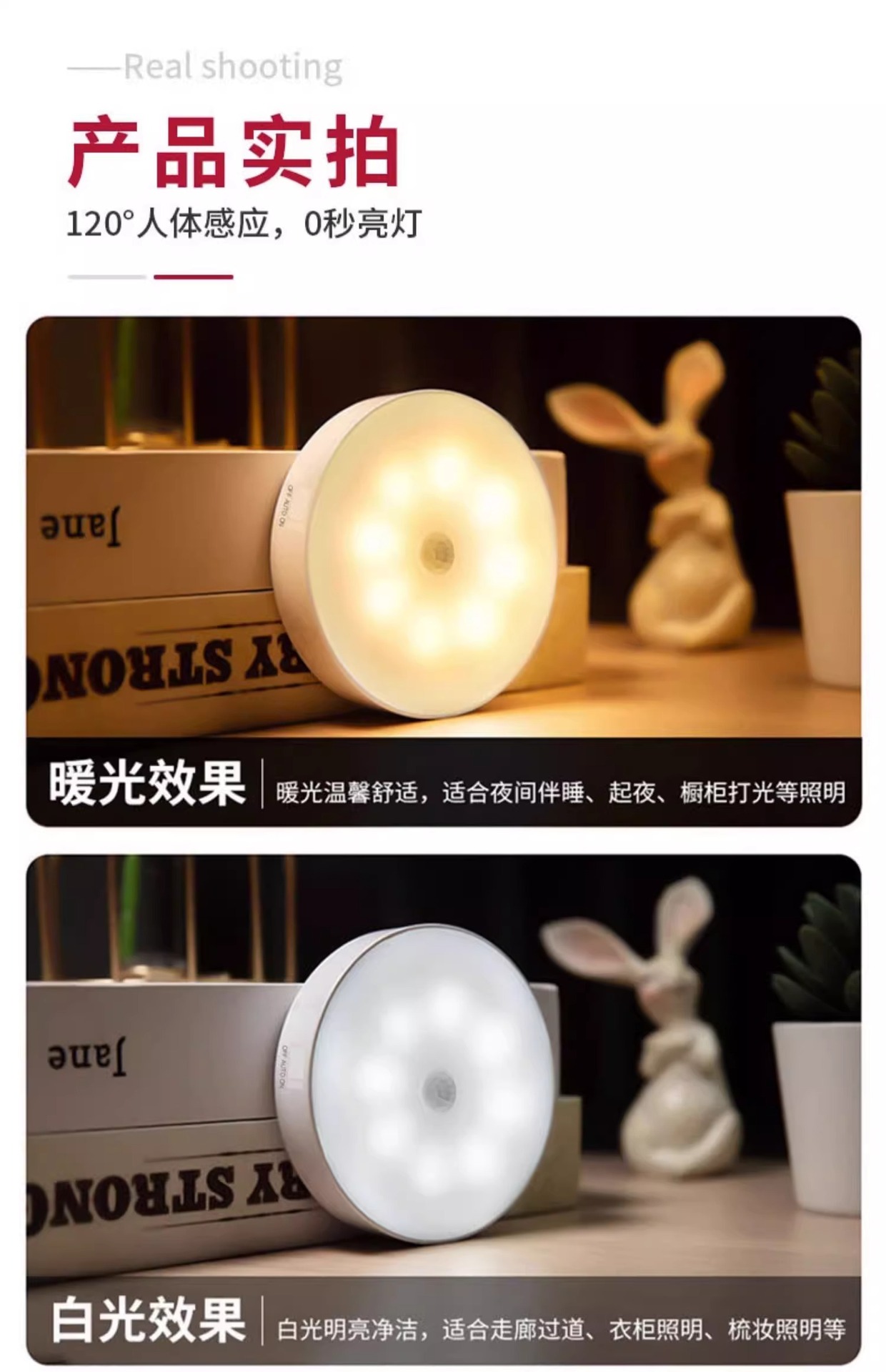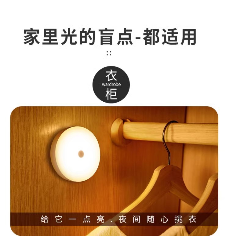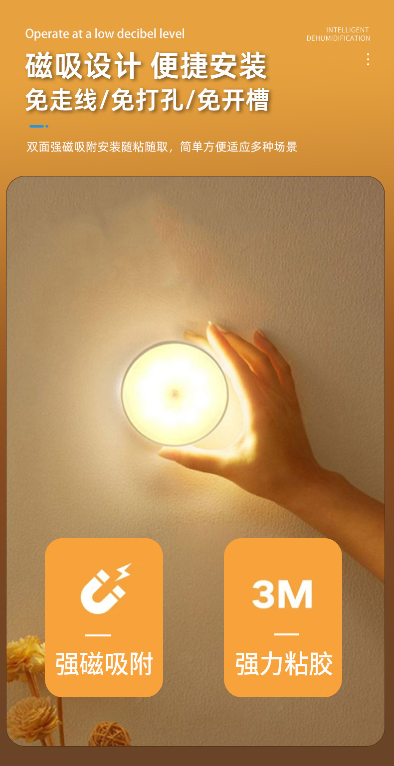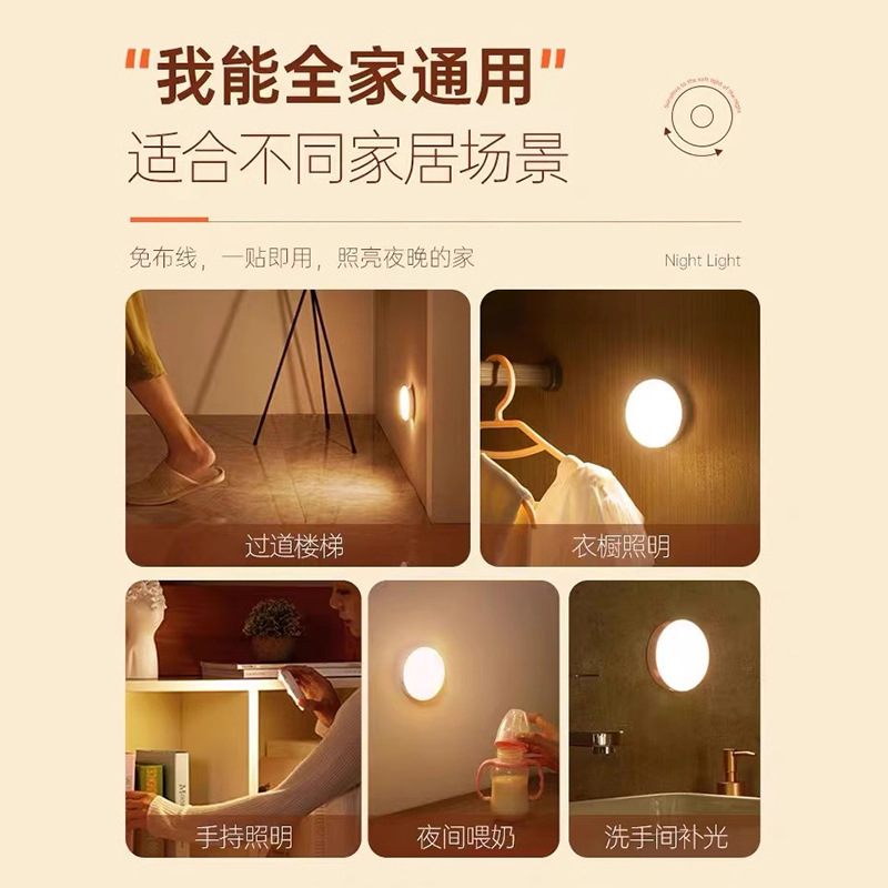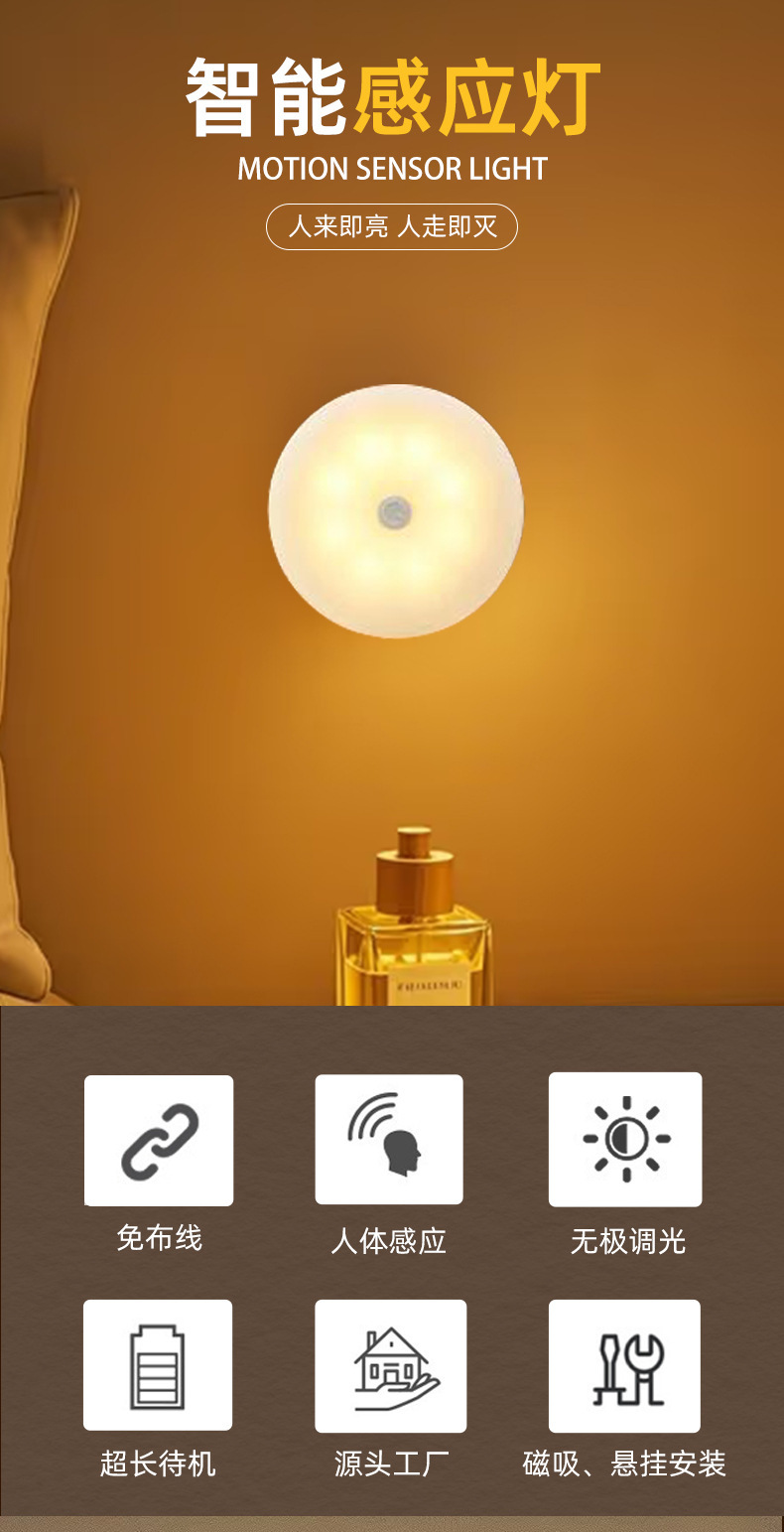 LED小夜灯床头卧室橱柜楼梯自动光控磁吸充电迷你智能人体感应灯