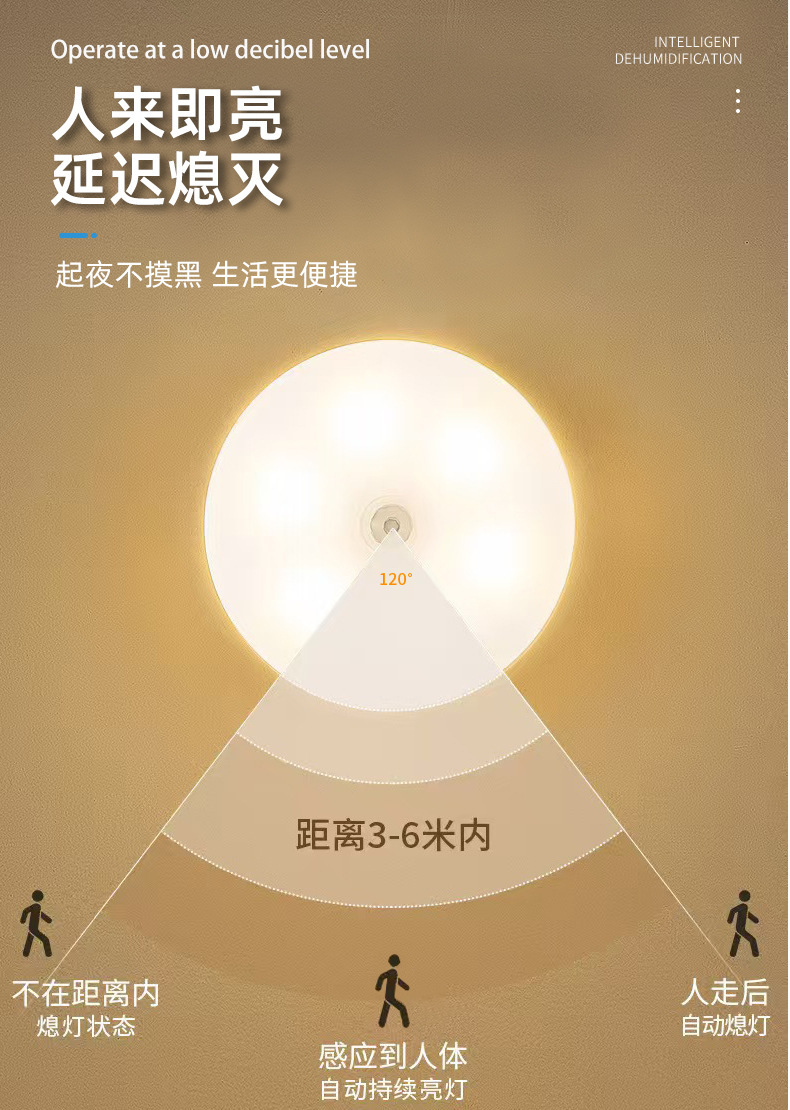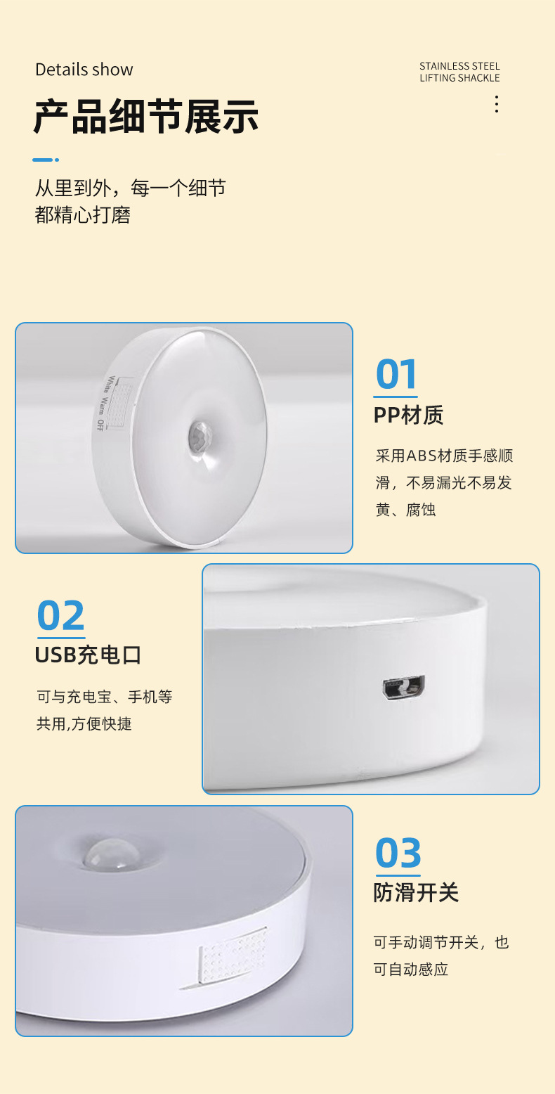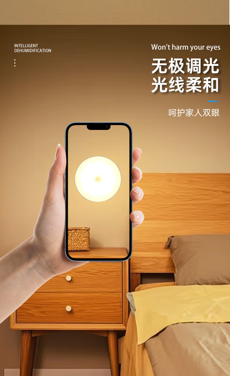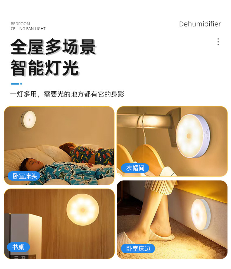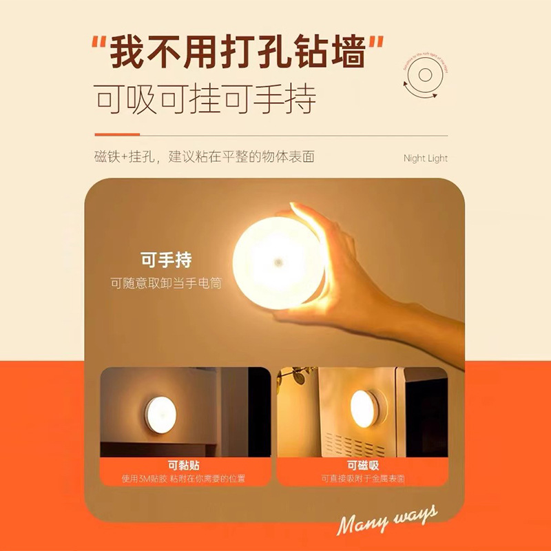 LED小夜灯床头卧室橱柜楼梯自动光控磁吸充电迷你智能人体感应灯