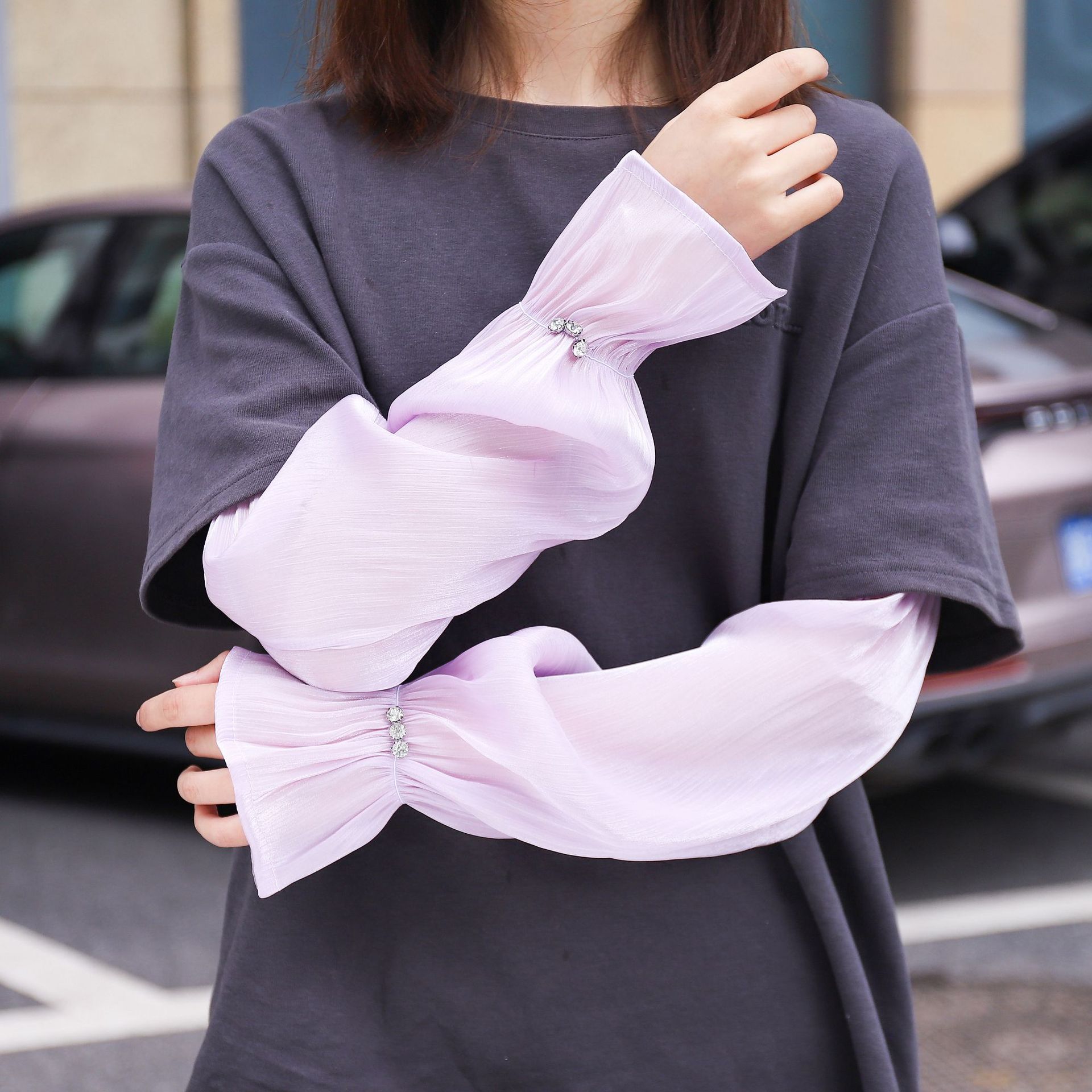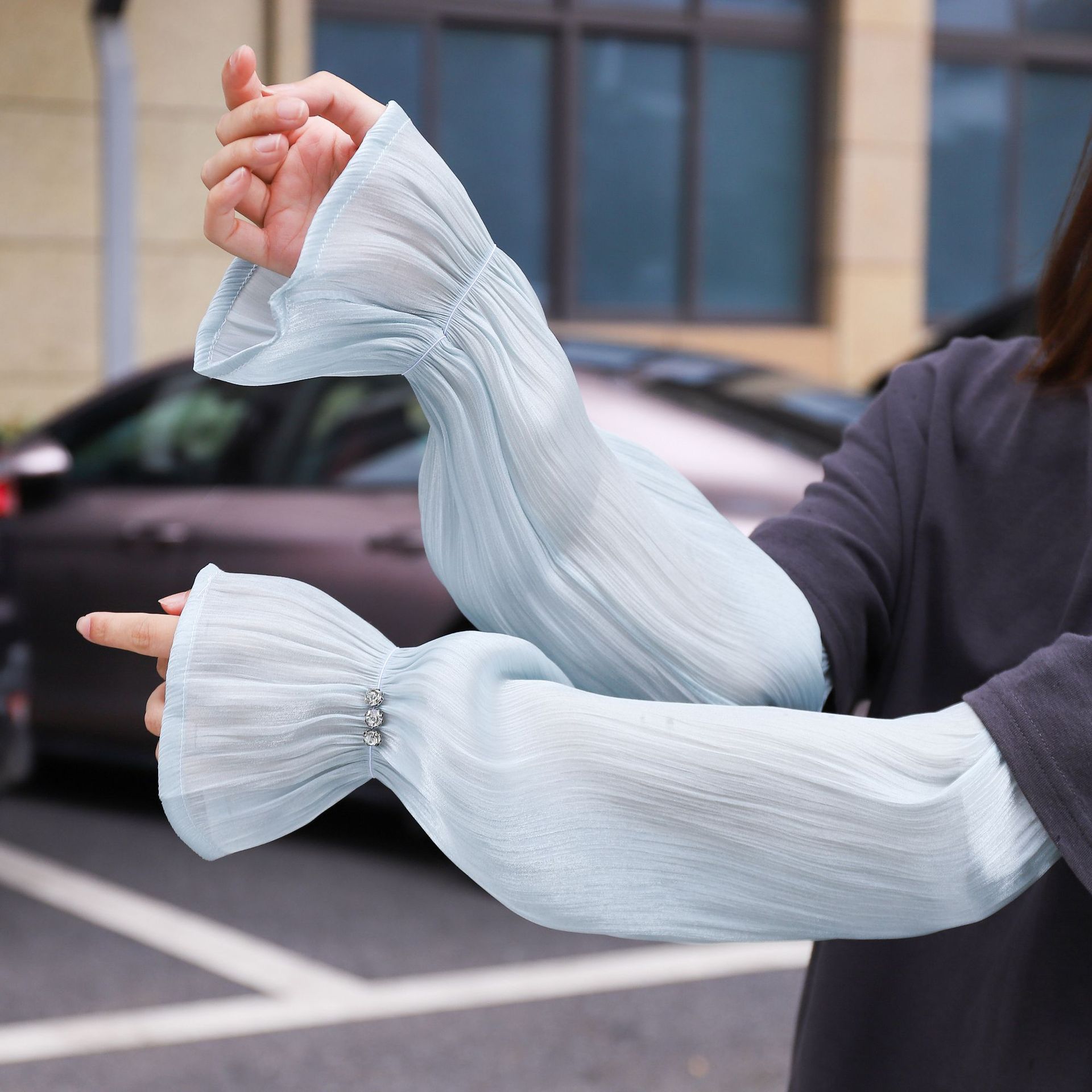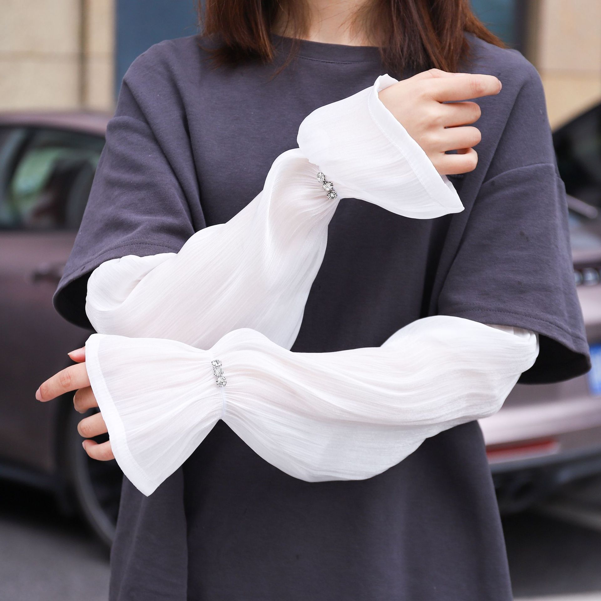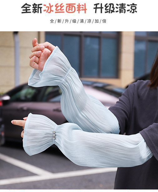 防晒袖套遮阳夏季冰袖珠光丝三颗钻开车户外骑行防紫外线百搭