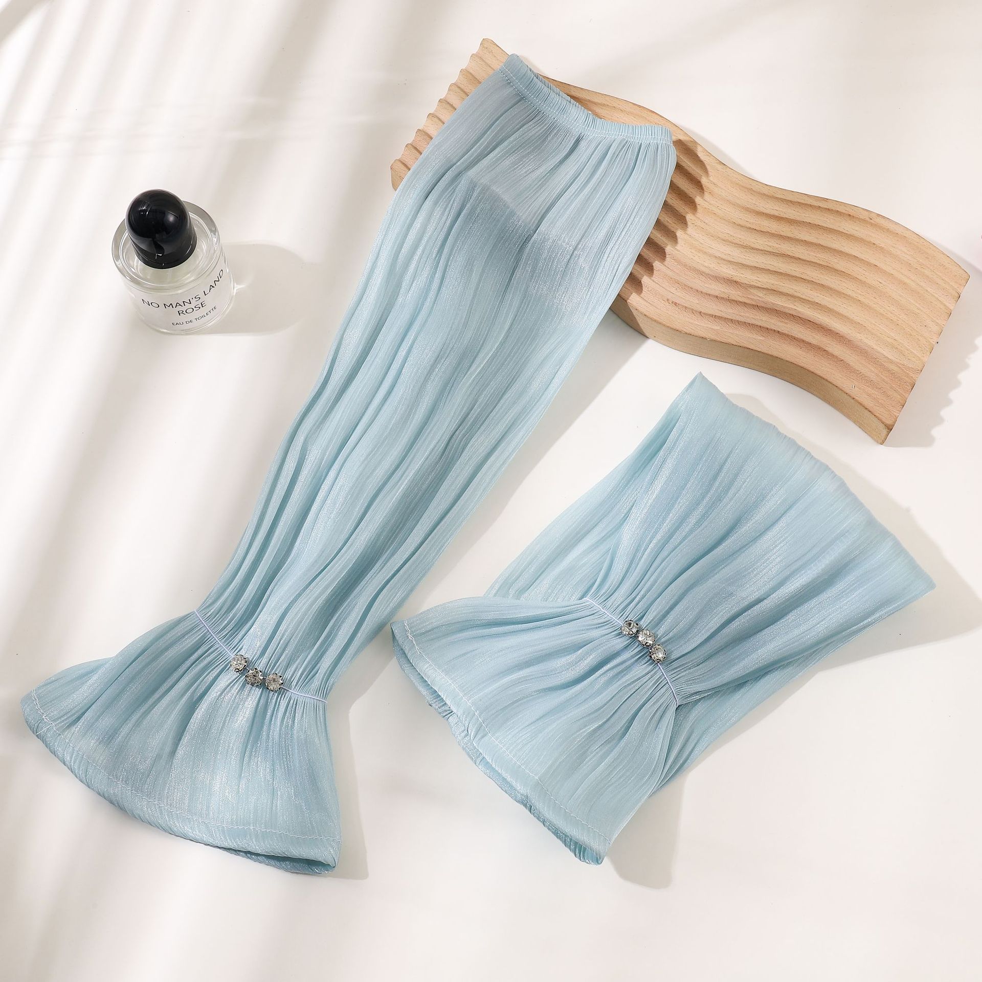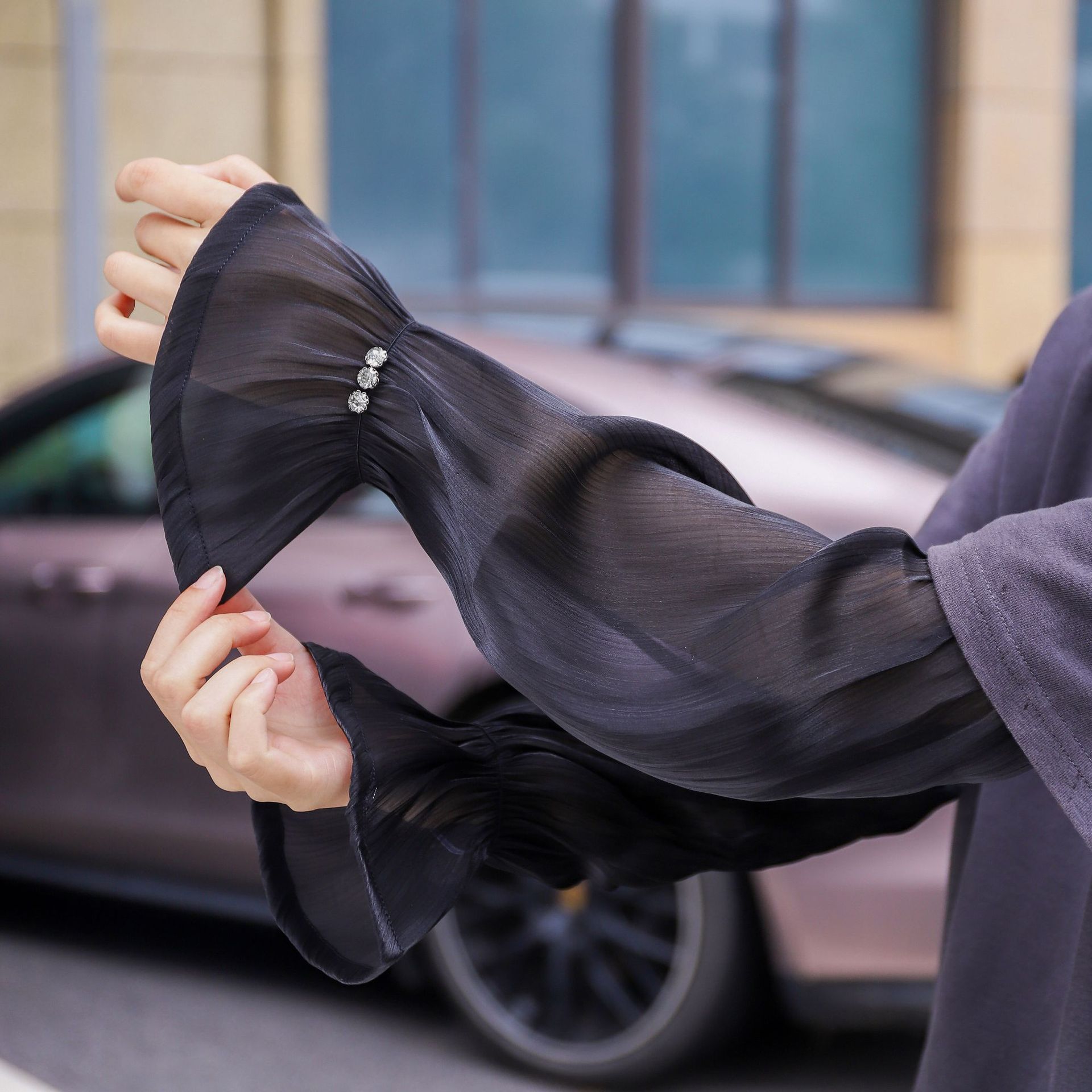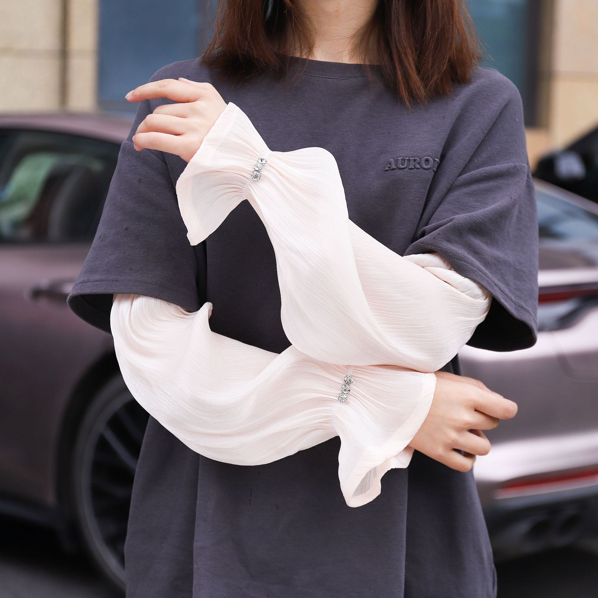 防晒袖套遮阳夏季冰袖珠光丝三颗钻开车户外骑行防紫外线百搭