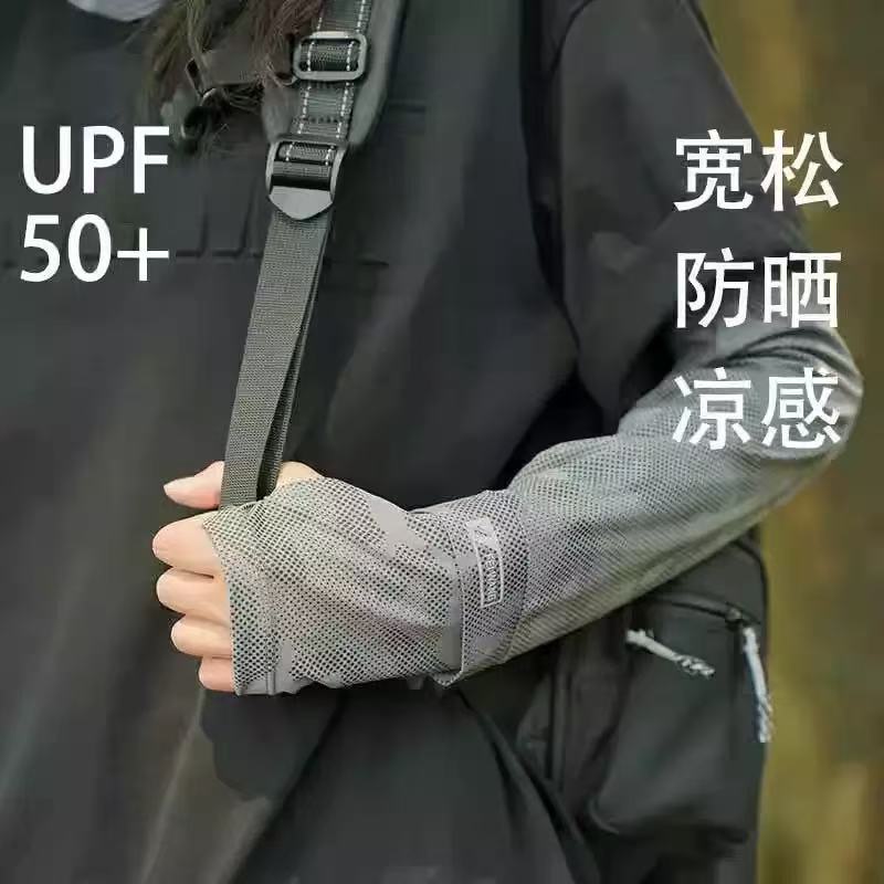防晒套袖夏季宽松冰丝冰袖男款防紫外线户外开车骑行遮阳迷彩袖套