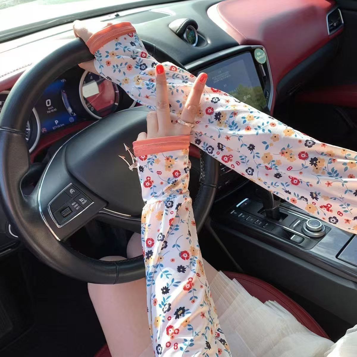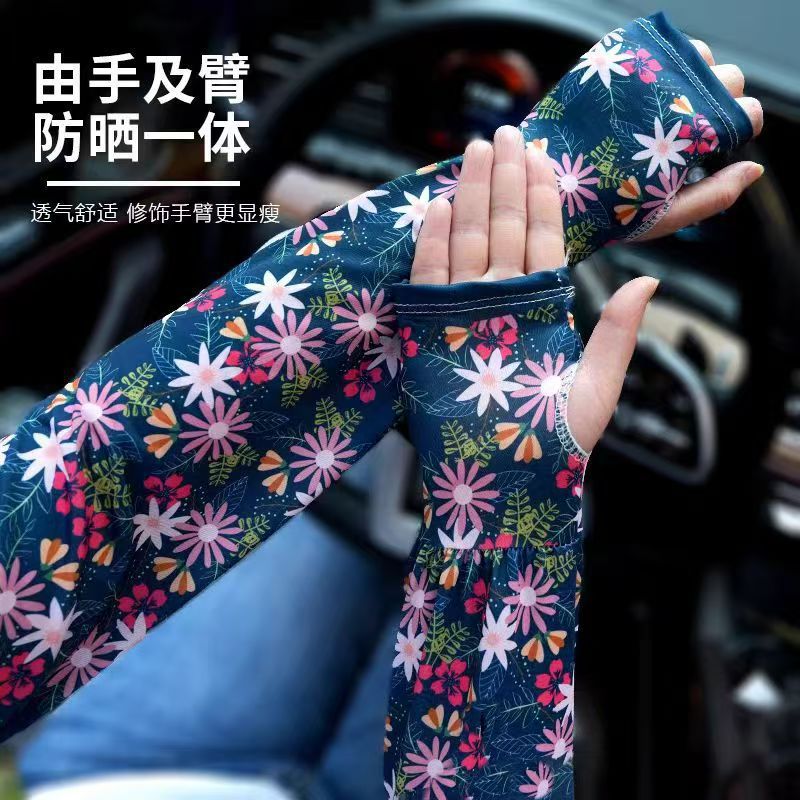 夏女户外工作干活防晒袖套防紫外线冰袖长款手臂套袖宽松冰丝手袖