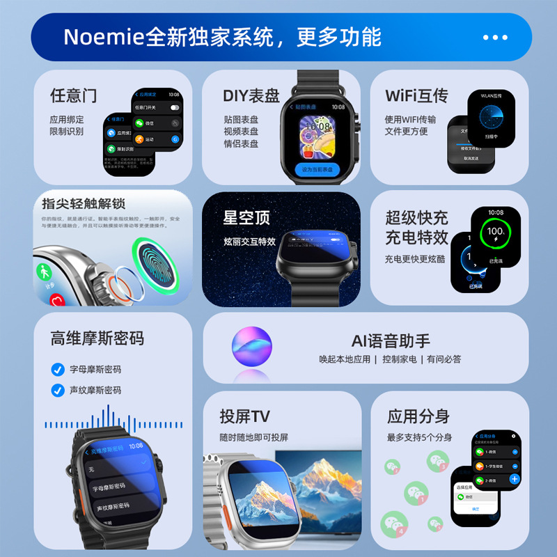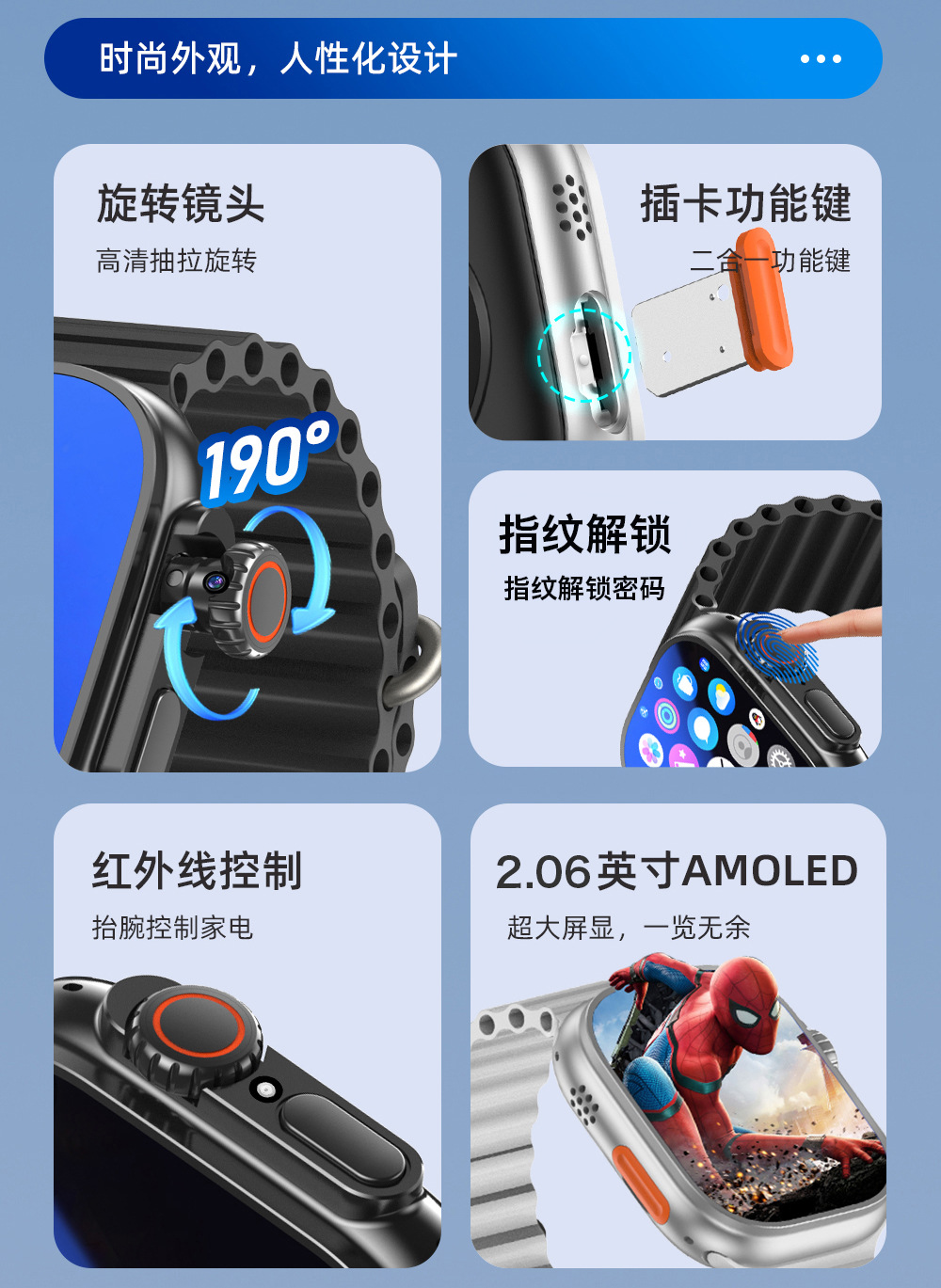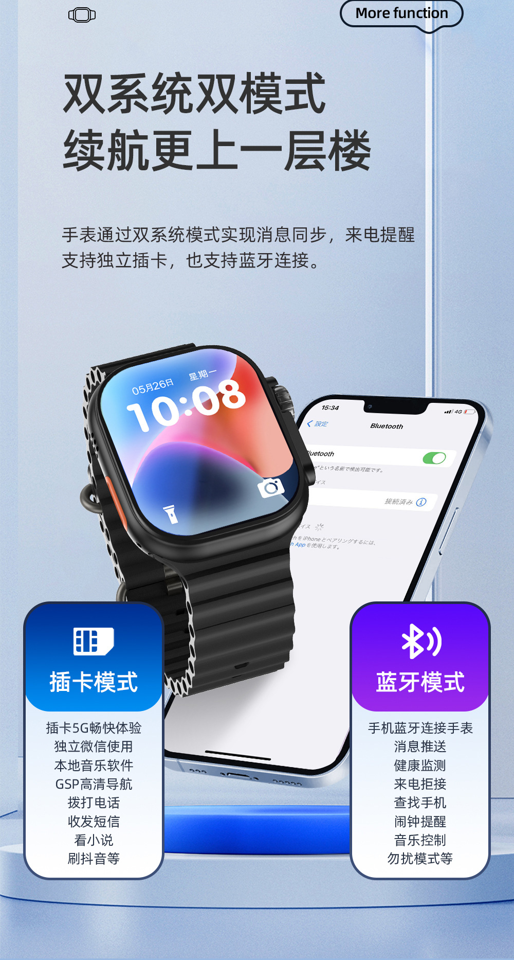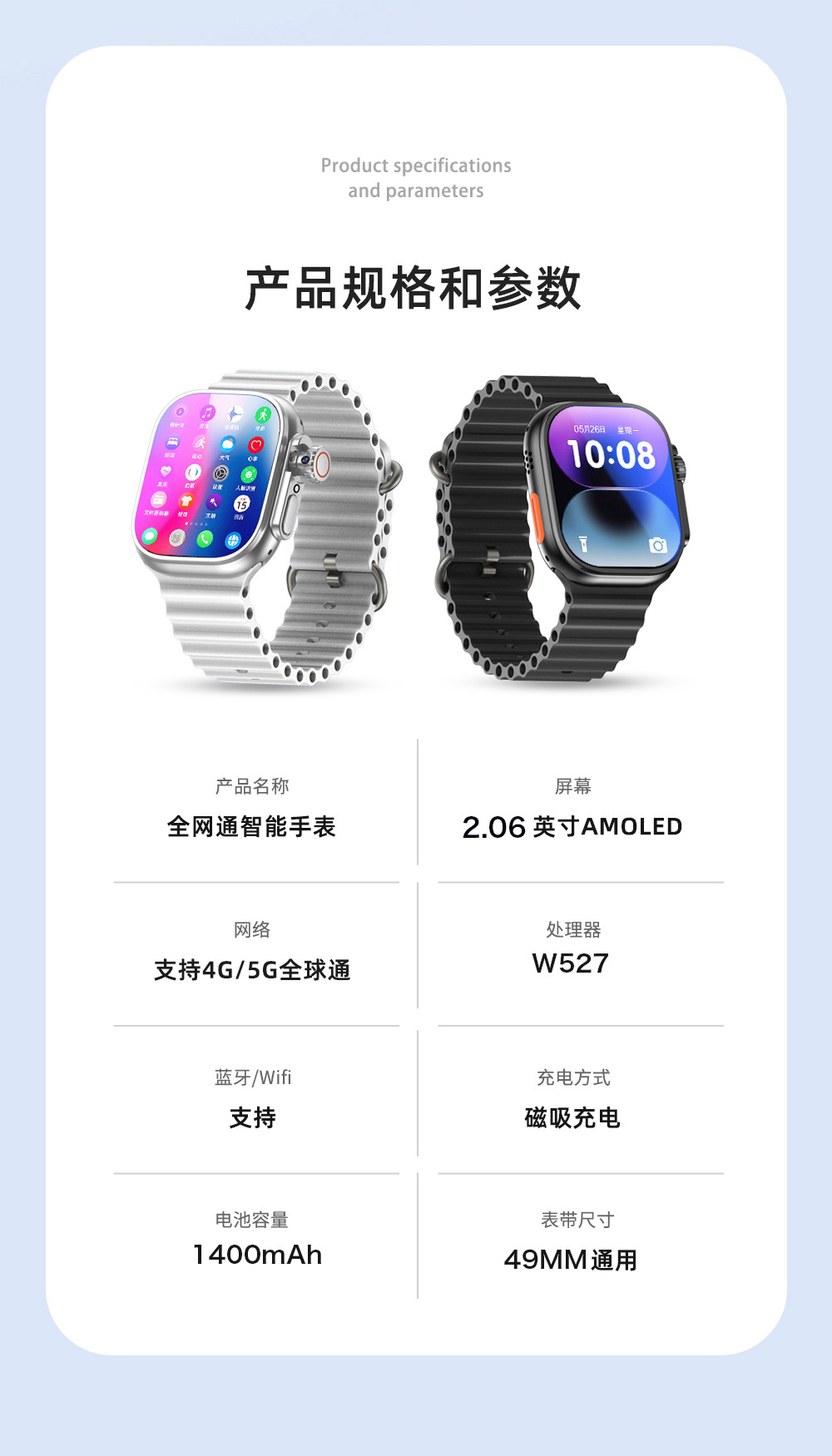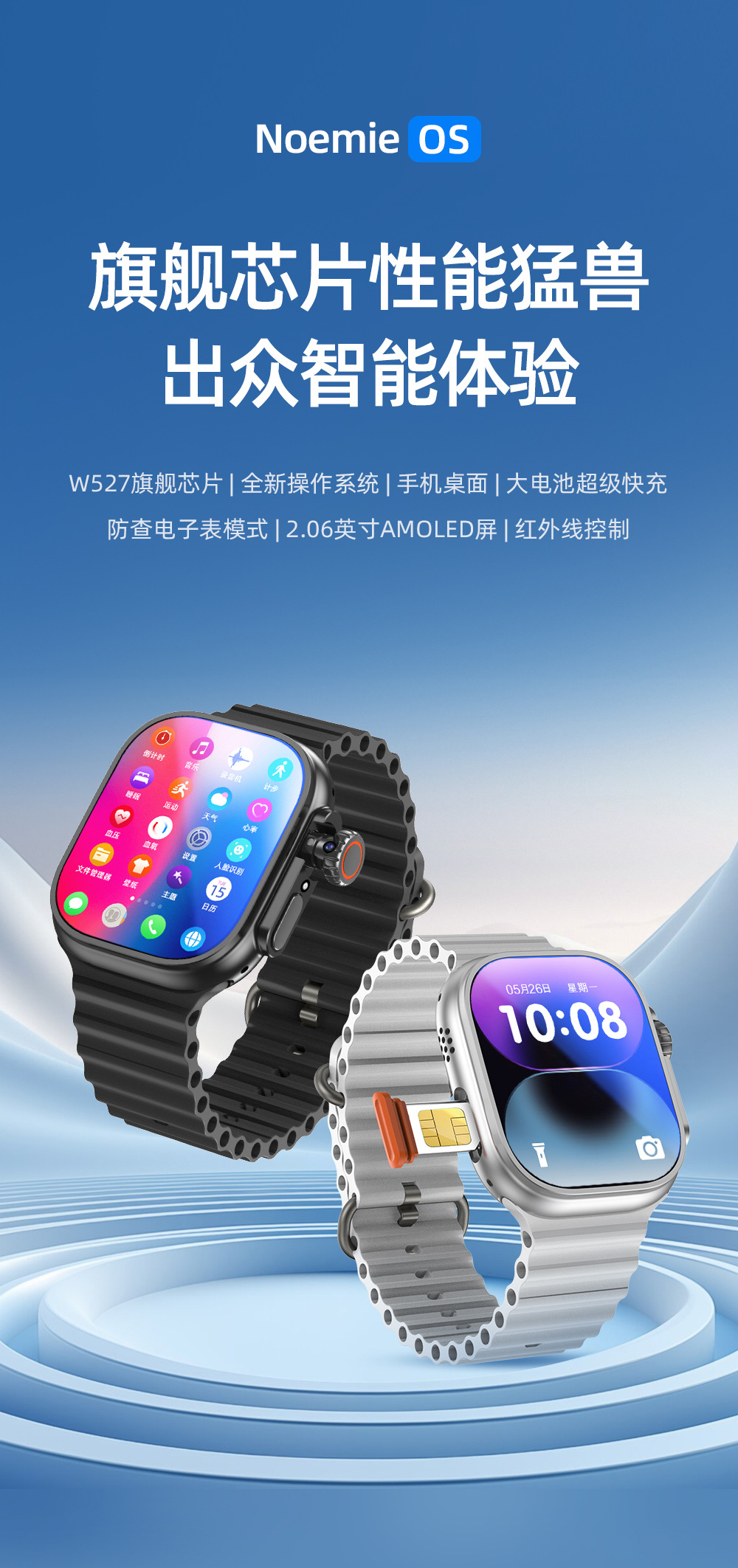 2026新款W527插卡S15Ultra智能手表OLED屏摩斯密码指纹解锁待机王