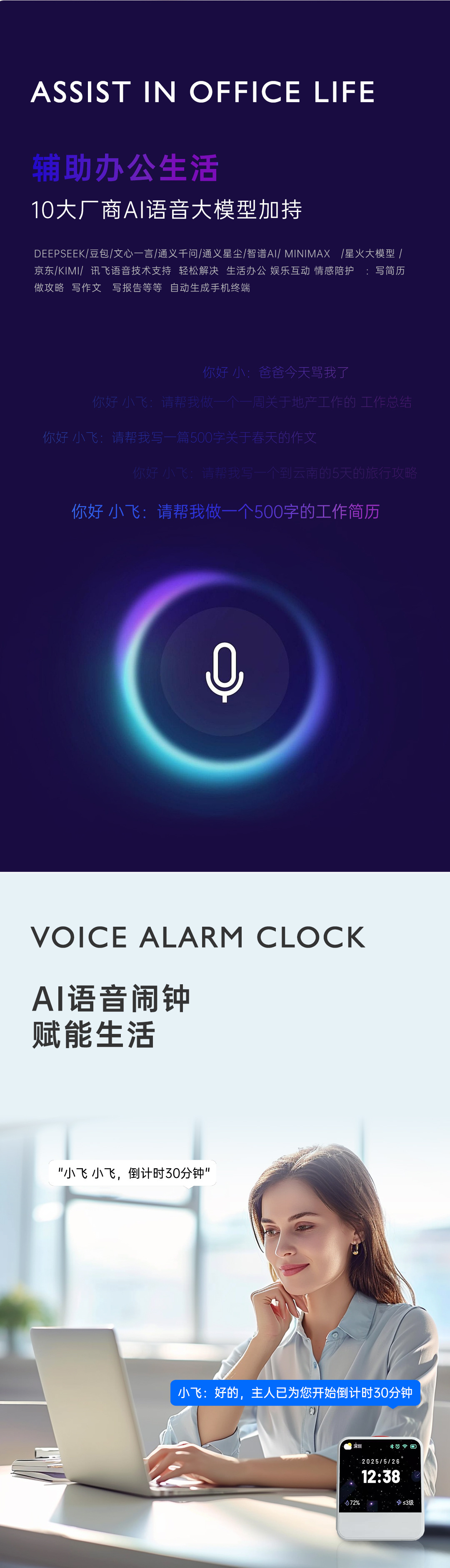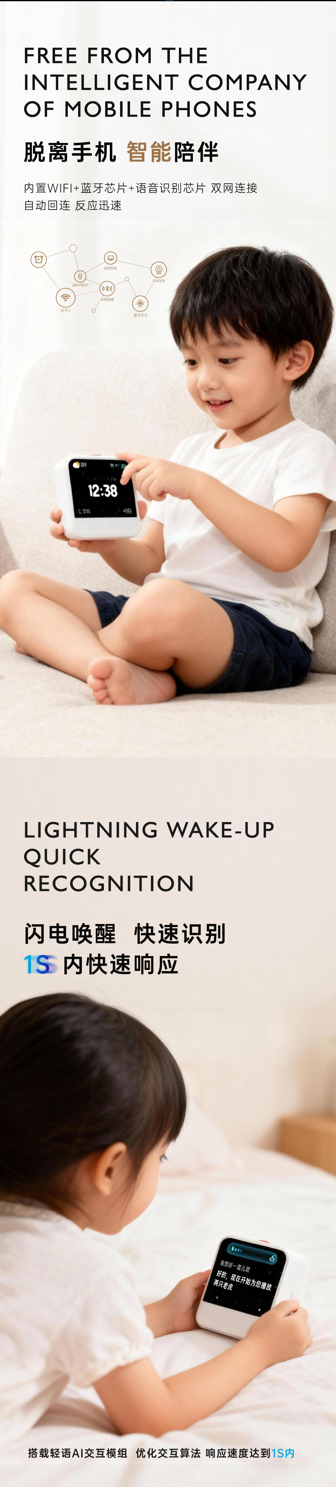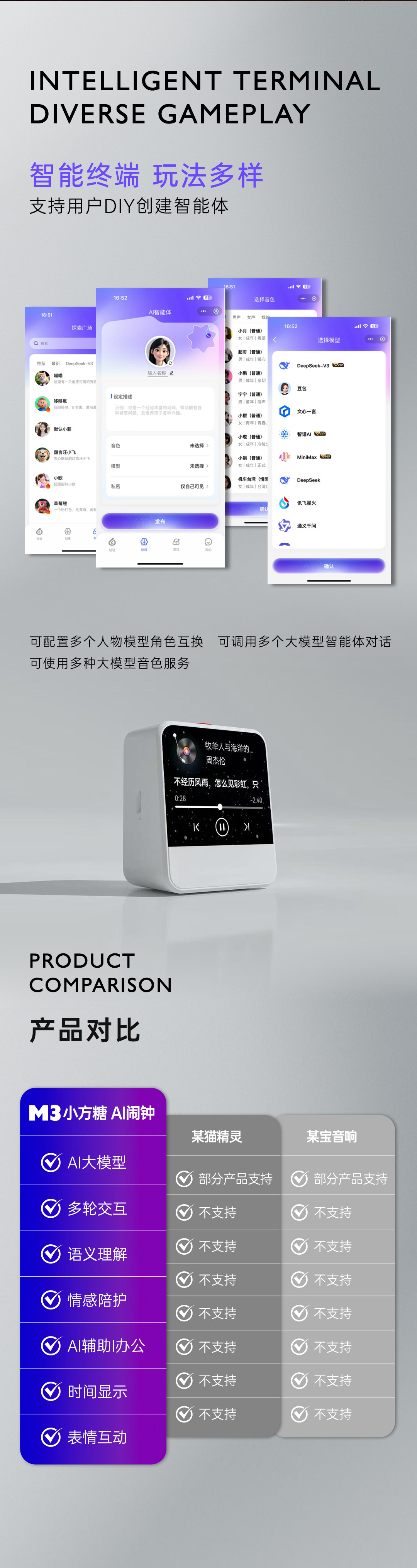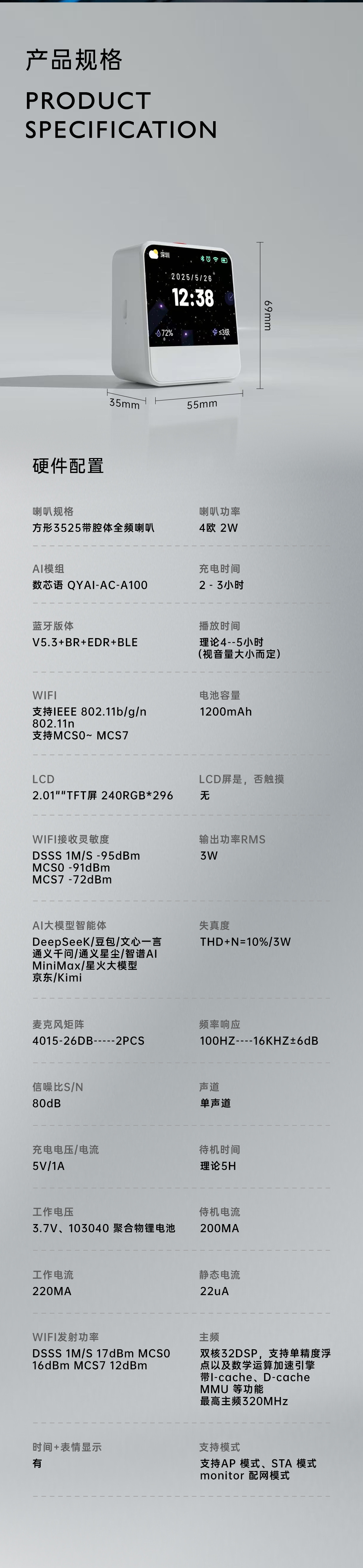 AI大模型豆包deepseek高清屏显蓝牙WIFI音响方糖时钟闹钟智能音箱