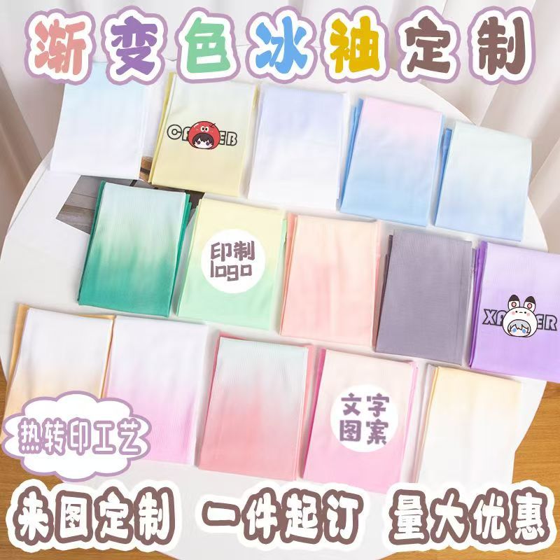 冰袖渐变色袖套夏季户外防晒紫外线冰丝袖套烫印LOGO男女冰丝袖套