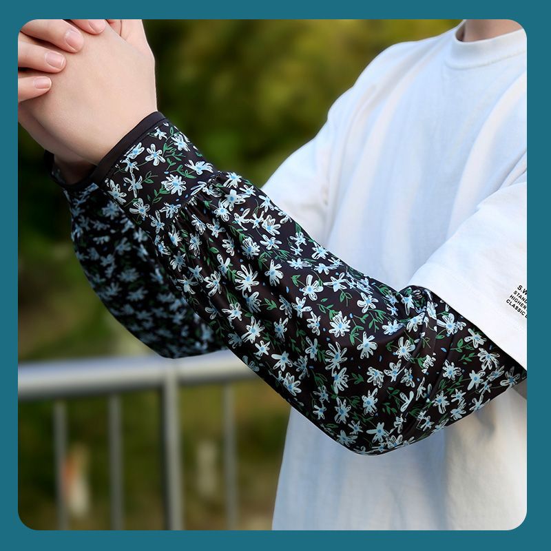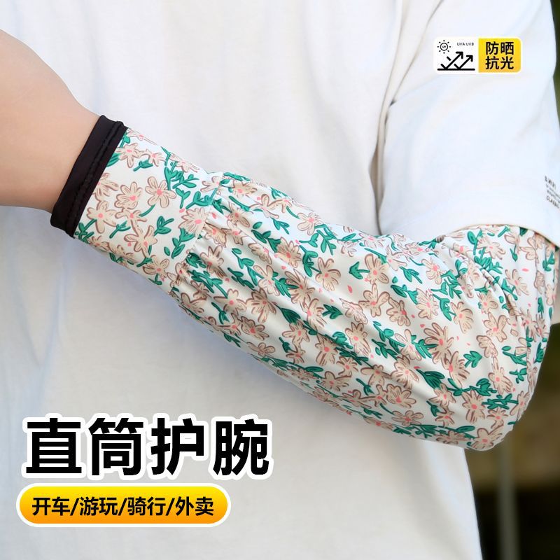 夏天直筒冰袖宽松防晒冰丝袖套胖人加大透气骑行男女护臂套袖无指