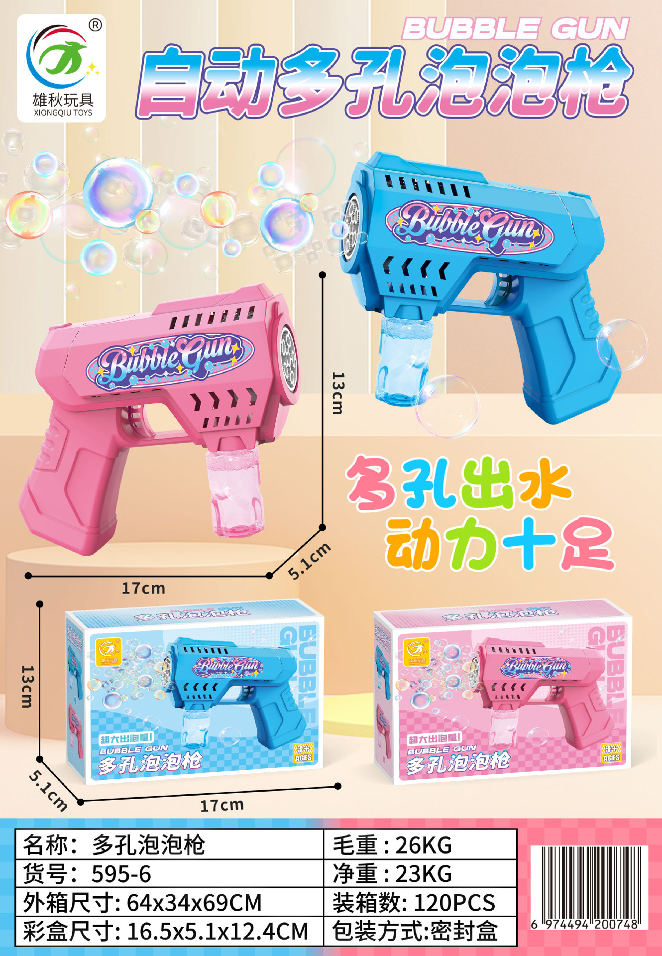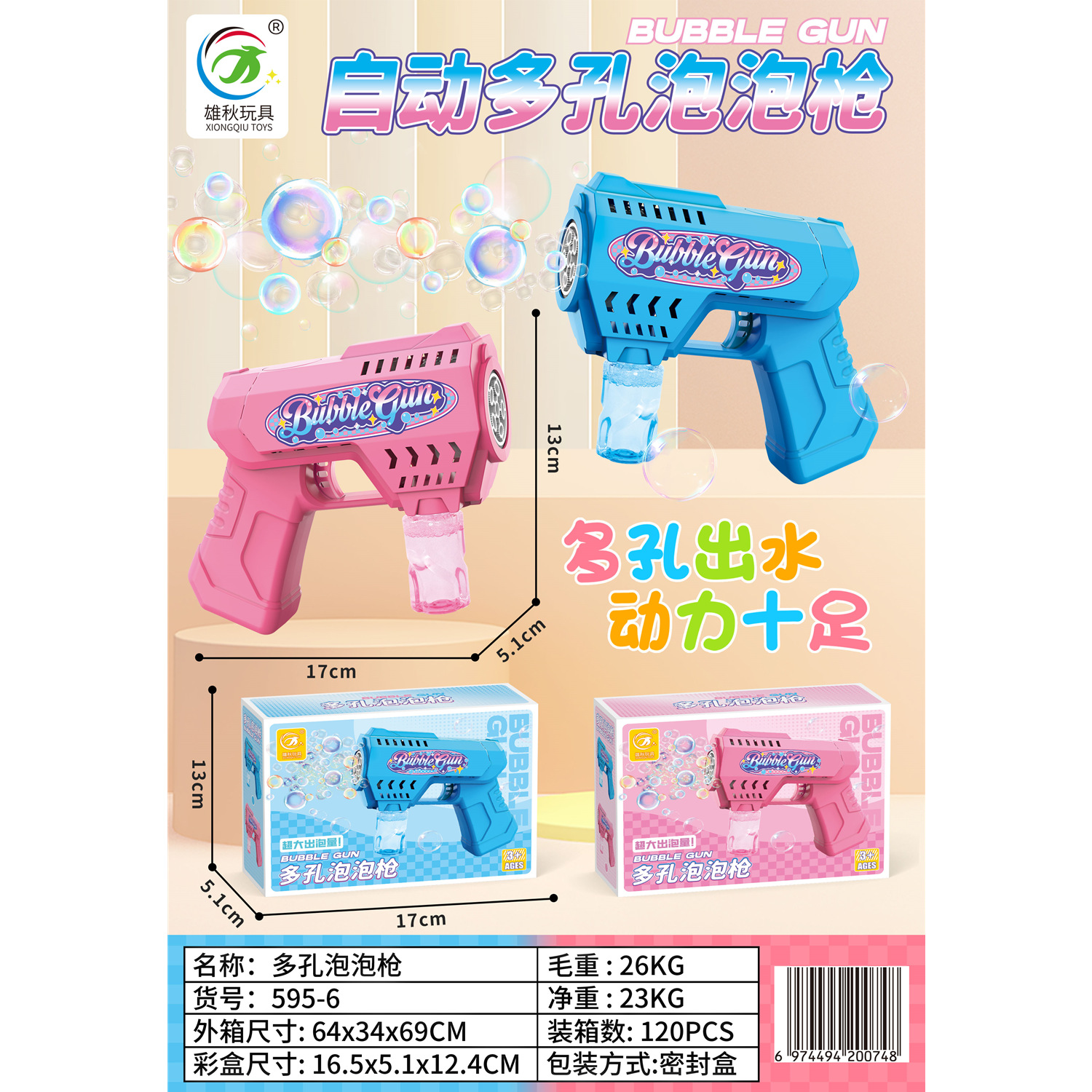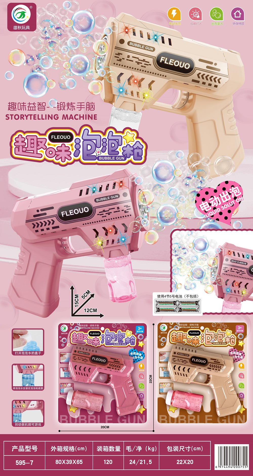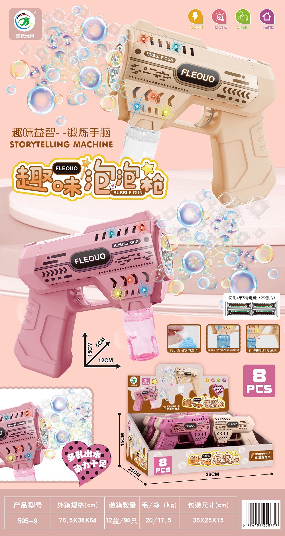 跨境多孔加特林吹泡泡儿童电动全自动灯光泡泡枪不漏水电玩城积分