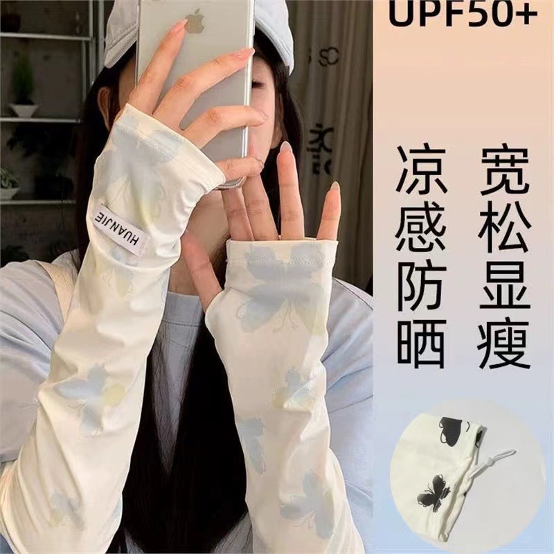 渐变蝴蝶冰袖女夏季百搭新款防晒防紫外线手袖户外透气宽松冰丝袖