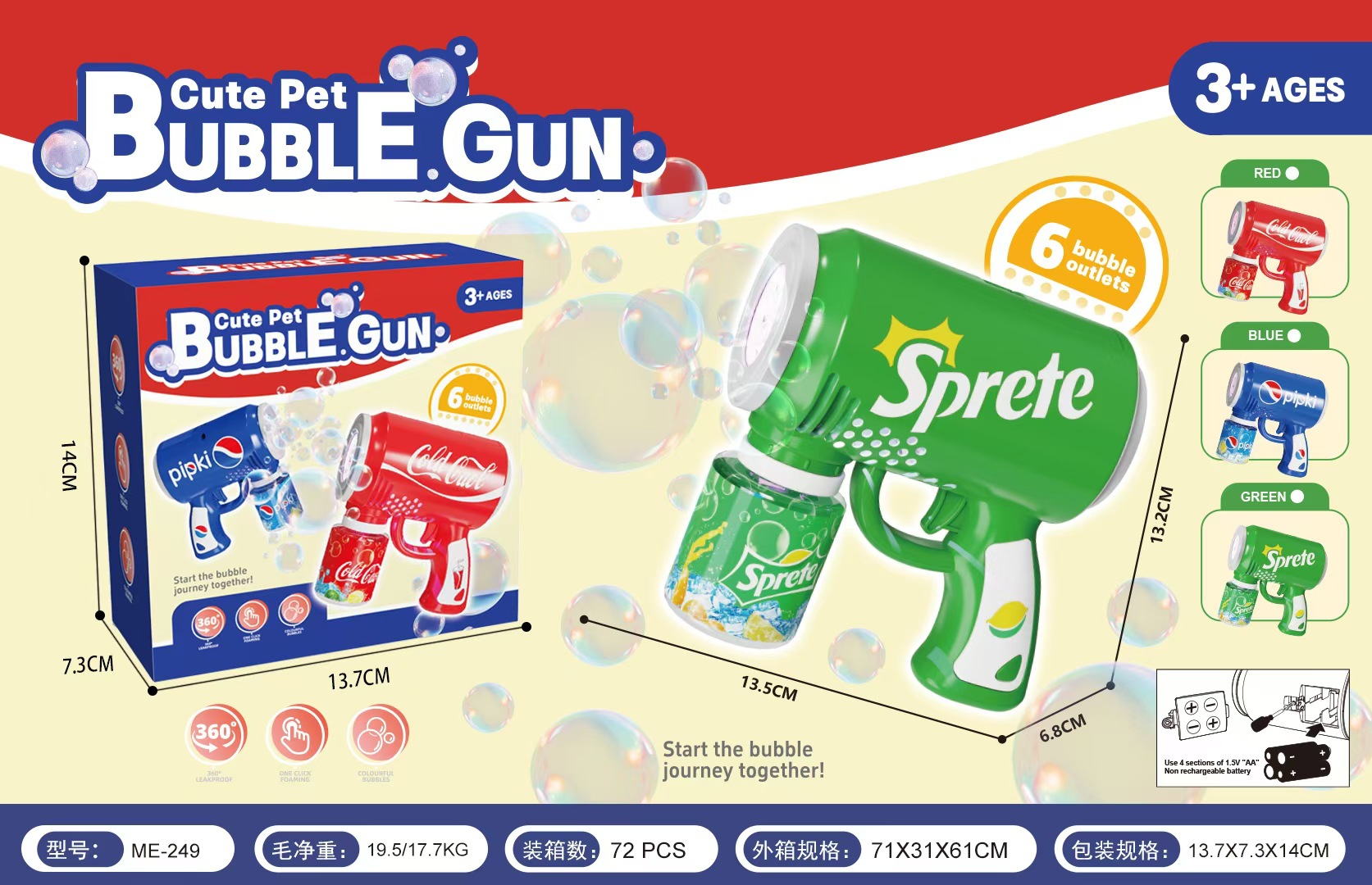 新款跨境儿童泡泡机电动全自动不漏水手持吹泡泡枪加特林男孩玩具