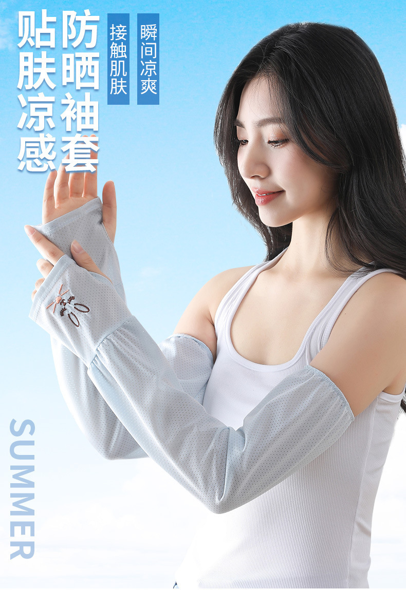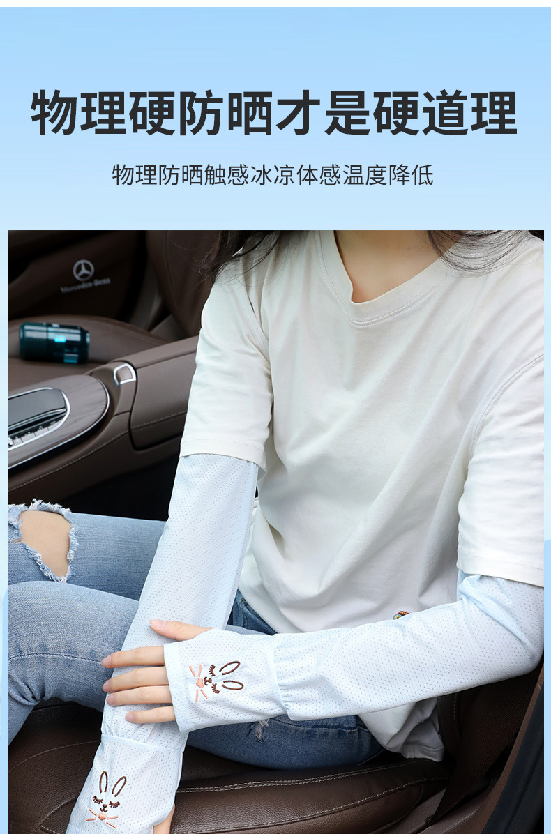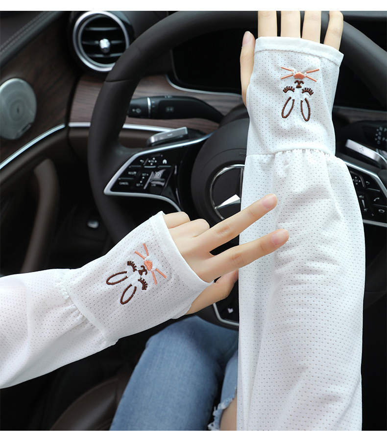 网眼透气宽松冰袖防晒袖套女夏季可爱兔子冰丝套袖遮阳护袖手臂套