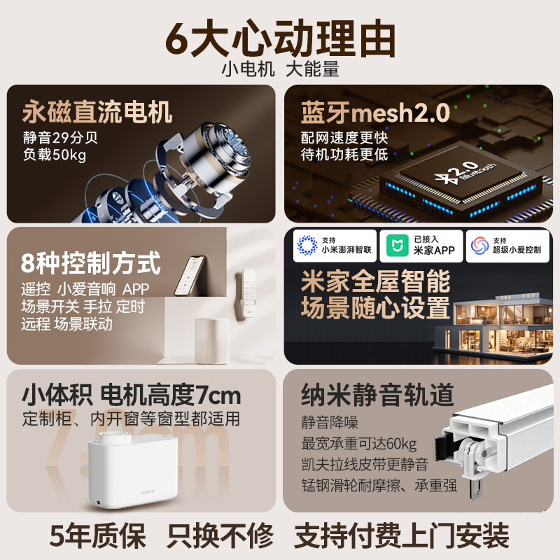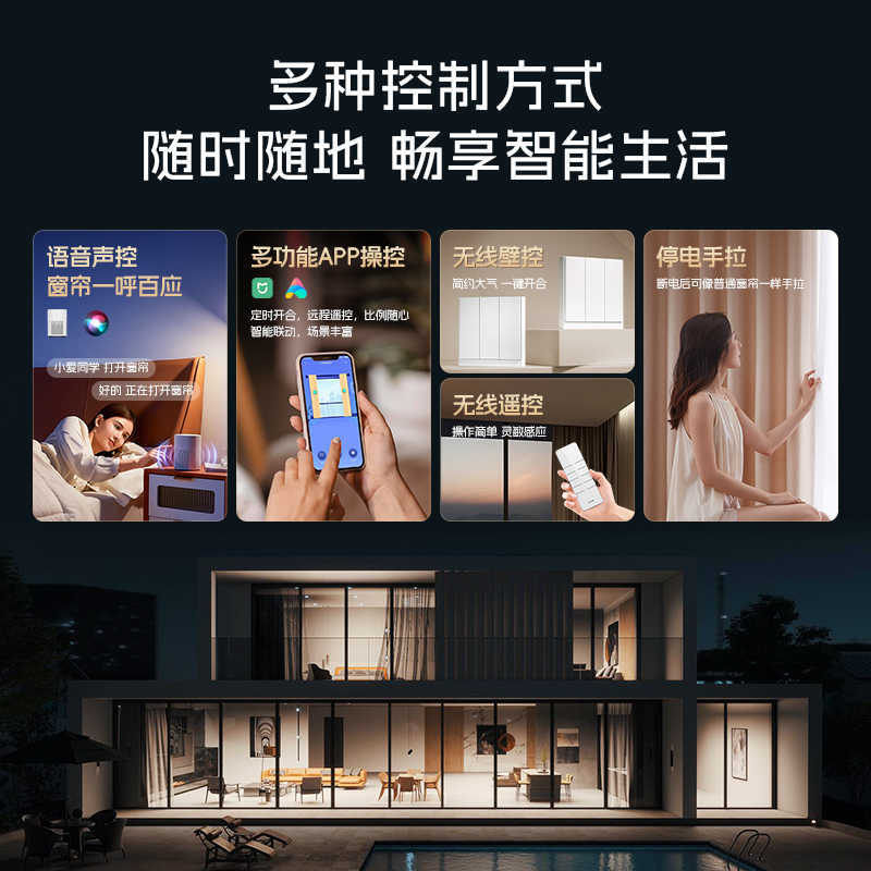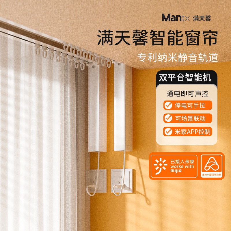 杜亚电动窗帘轨道智能窗帘声控隐藏电机DT98开合帘已接入米家APP