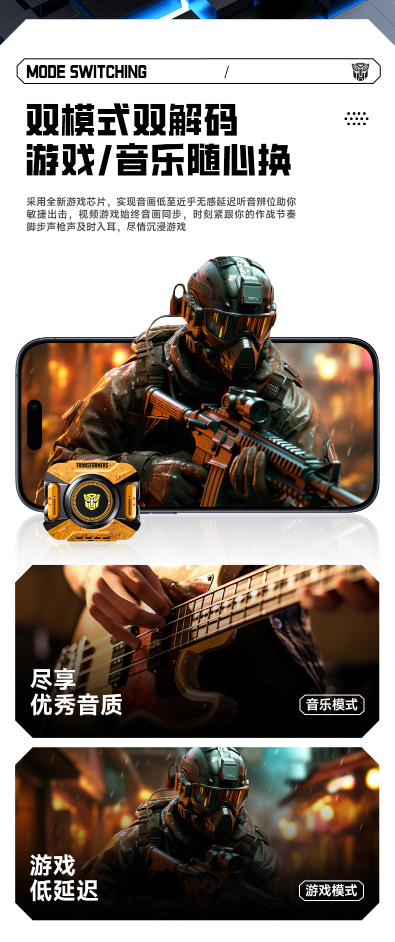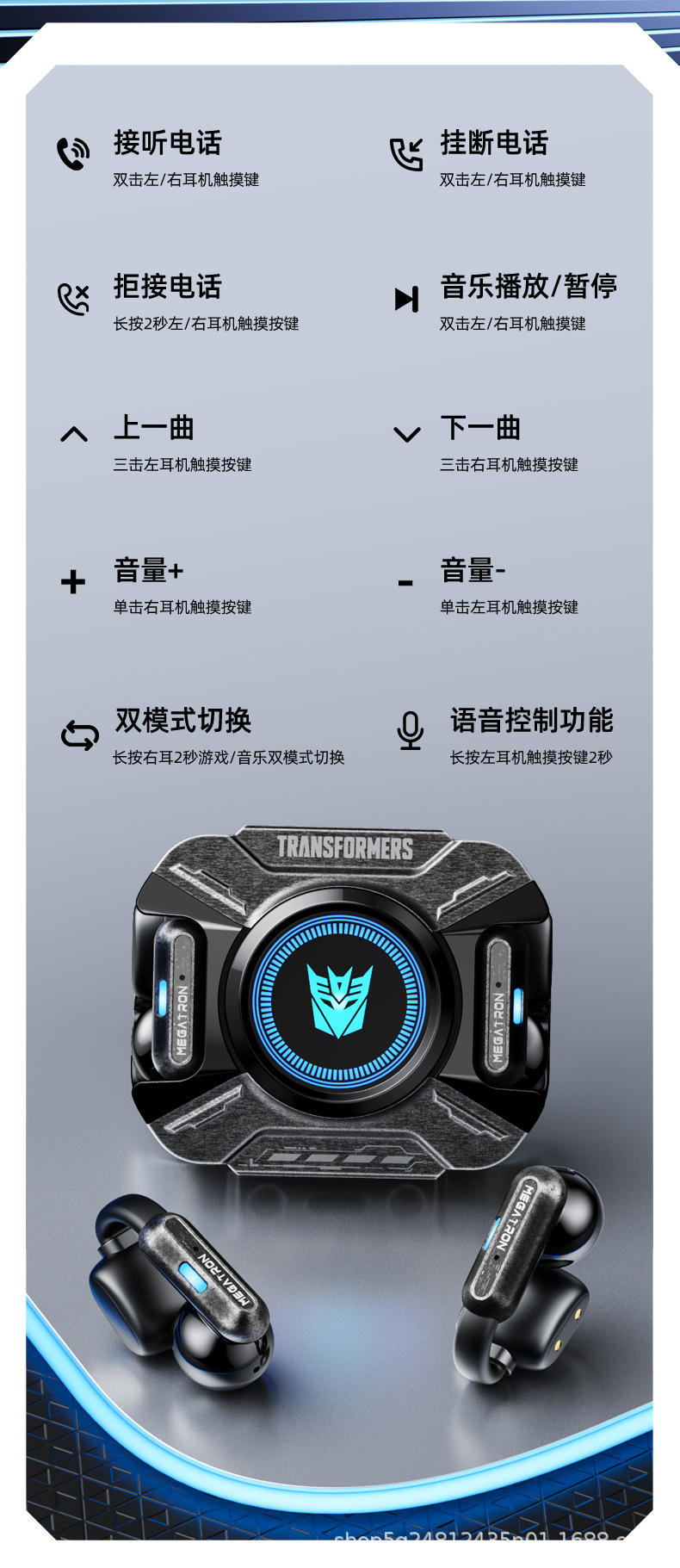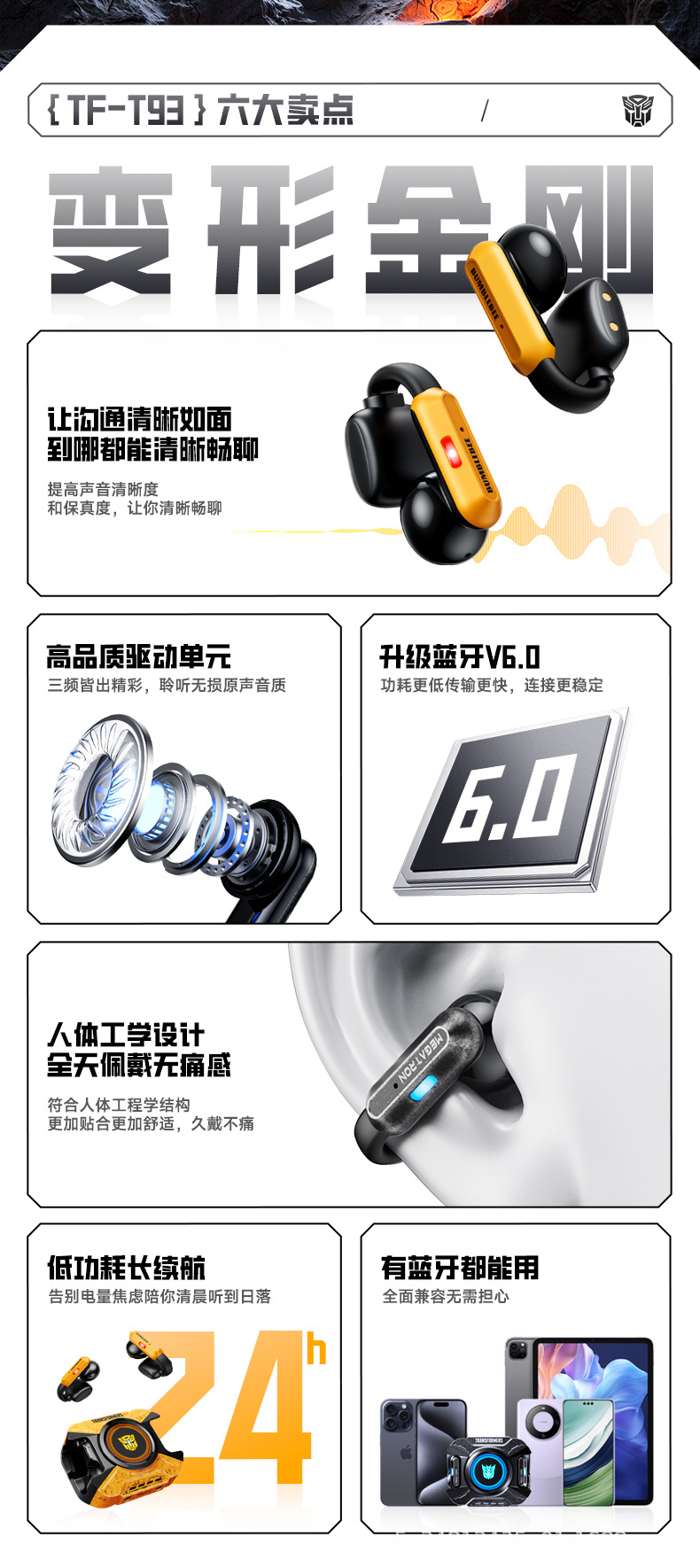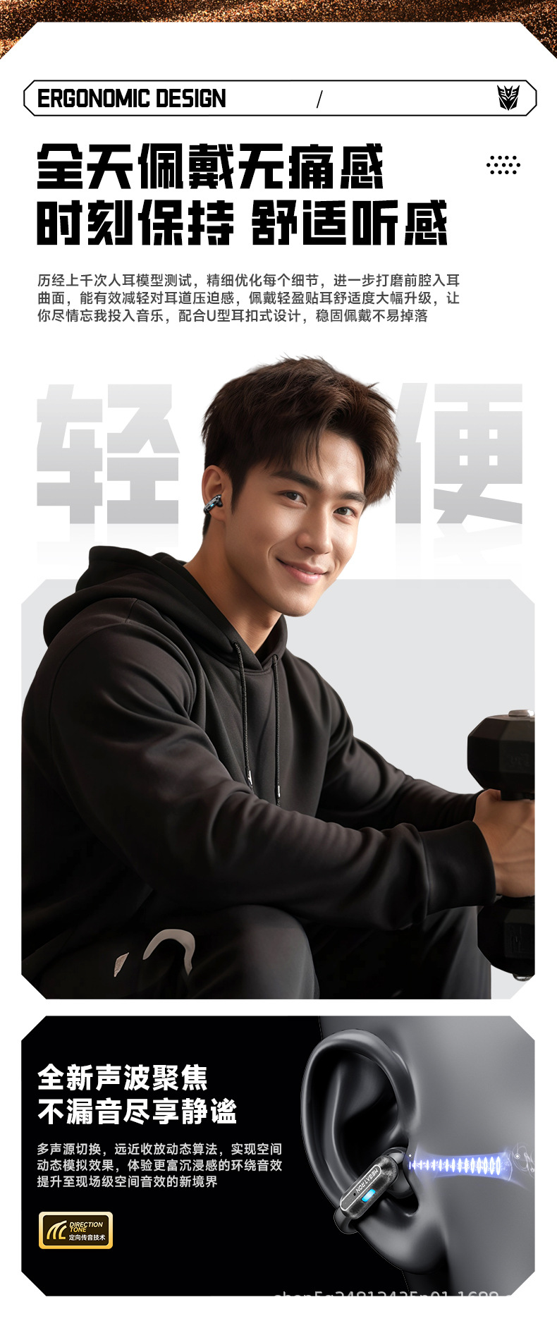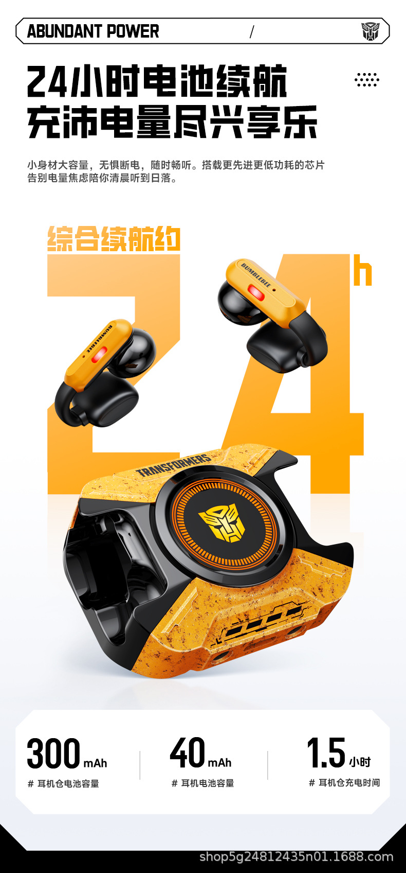 变形金刚耳夹式蓝牙耳机智能降噪超长续航运动大黄蜂游戏降噪T93