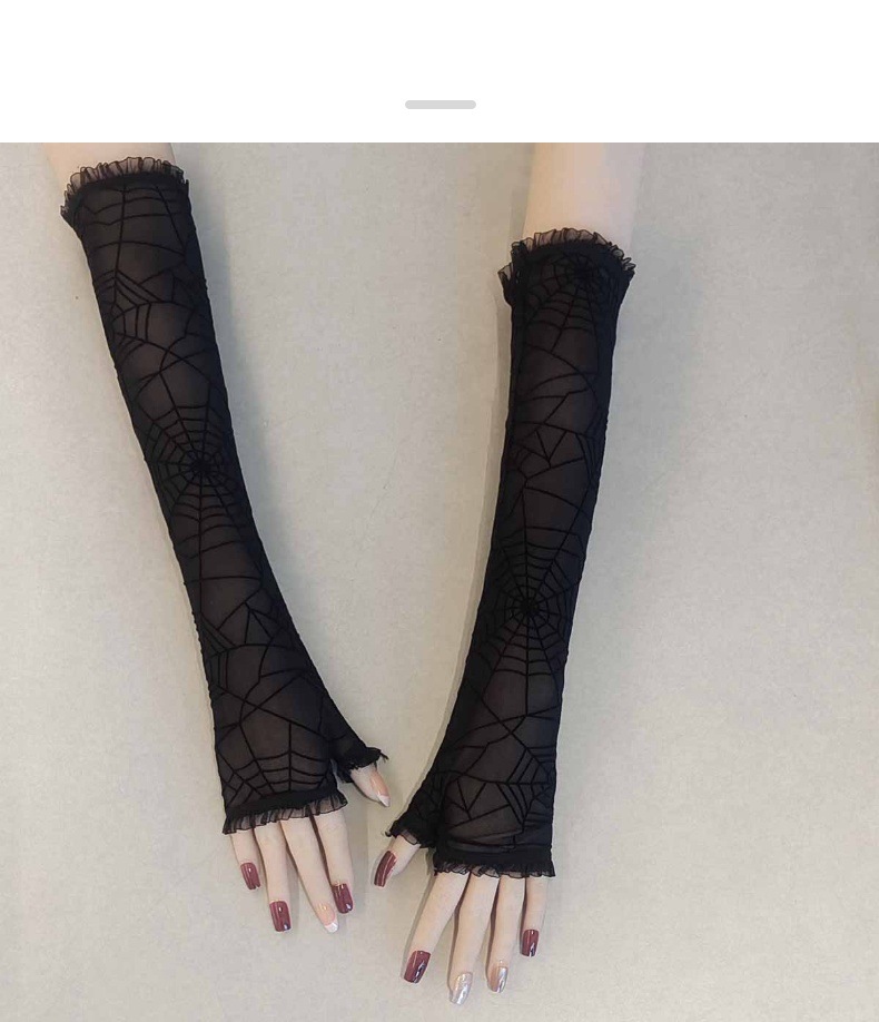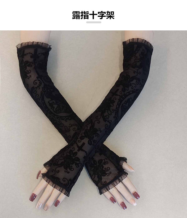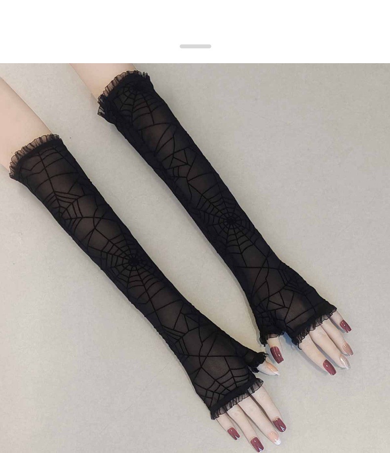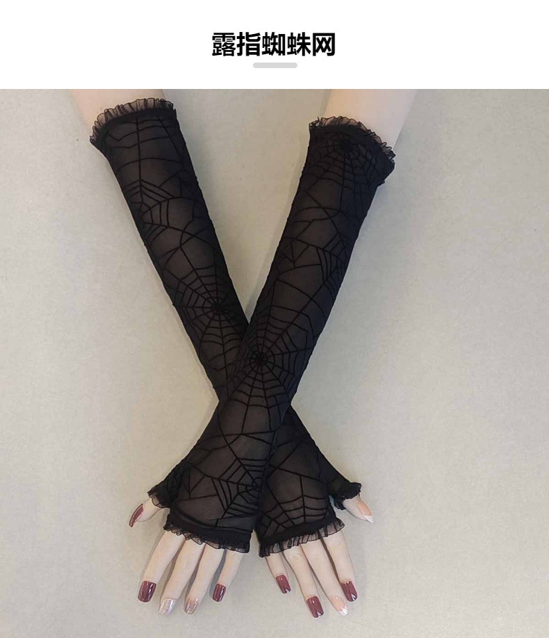 万圣节女式露指长款手套水仙花蜘蛛网十字架蕾丝防晒袖套漏指手套