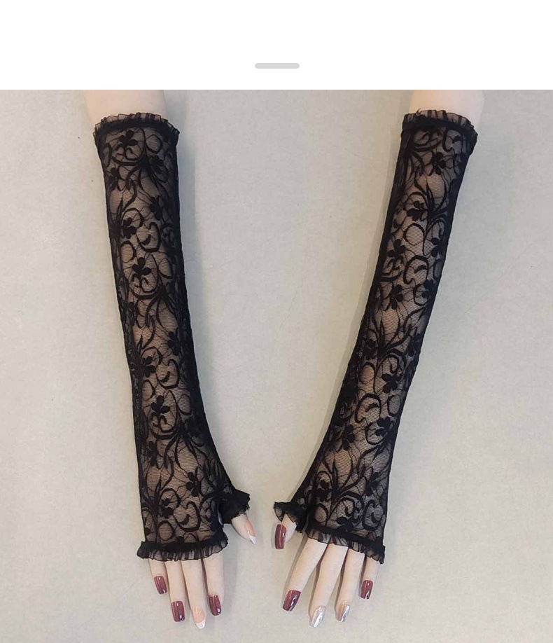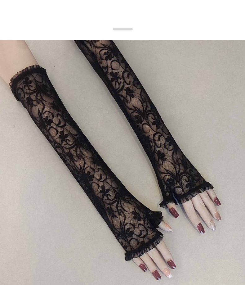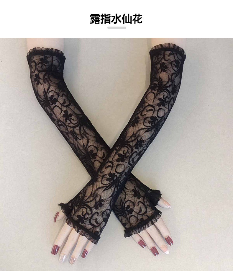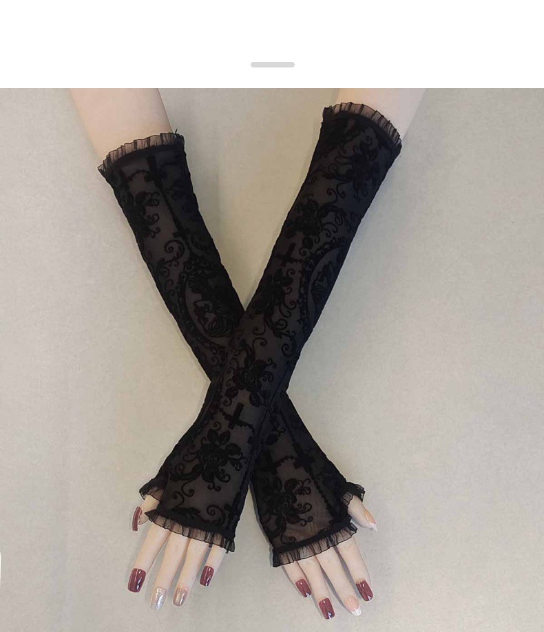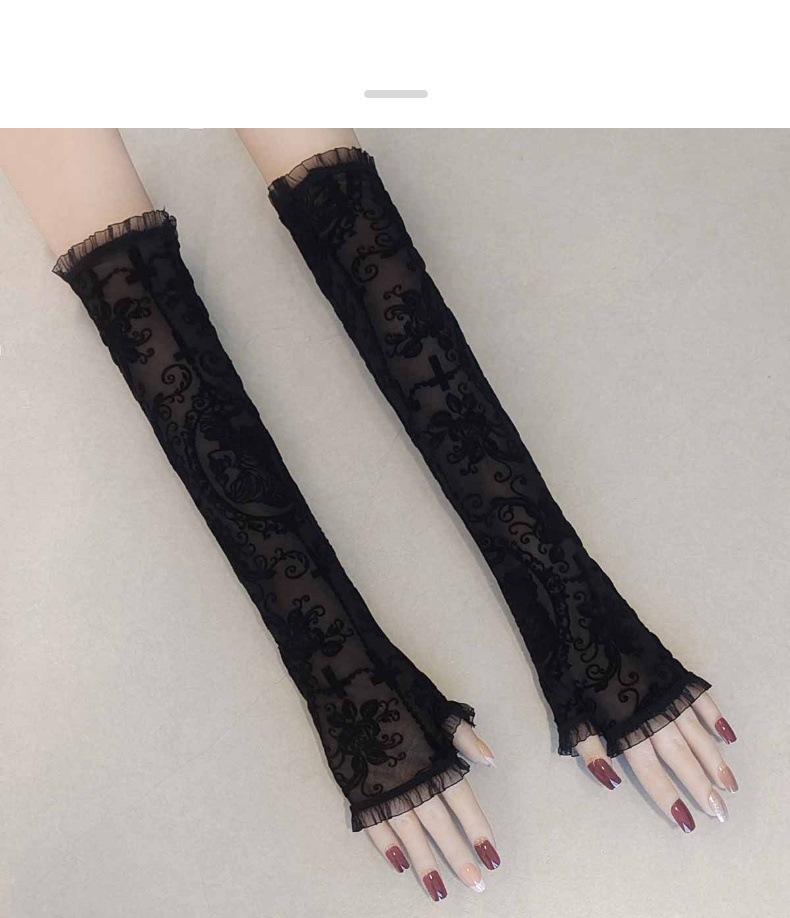 万圣节女式露指长款手套水仙花蜘蛛网十字架蕾丝防晒袖套漏指手套