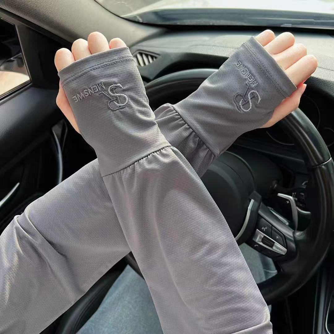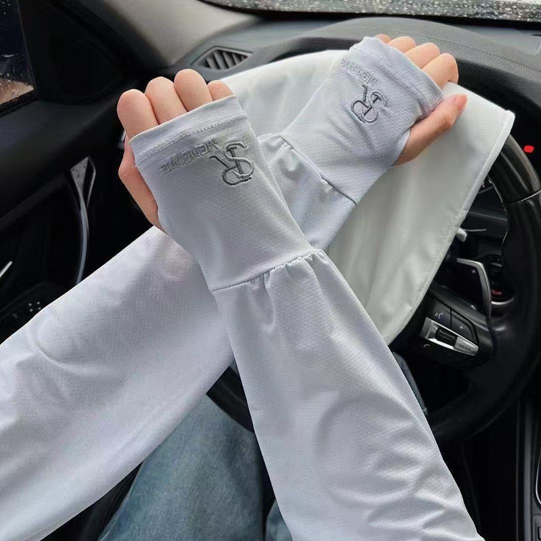 SR刺绣冰丝防晒袖套男夏季户外骑行宽松透气遮阳手臂袖套防紫外线