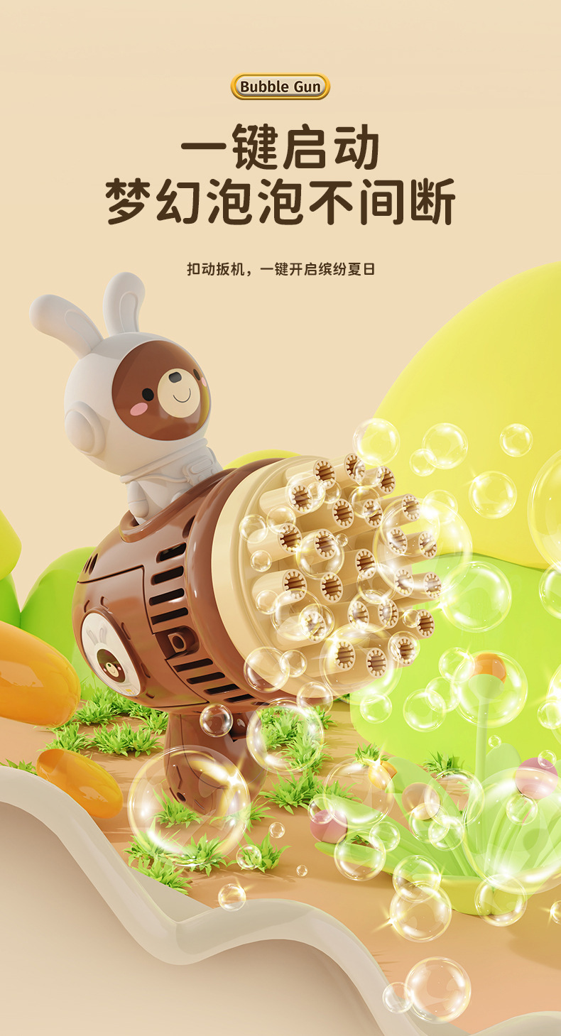 抖音新款23孔网红太空兔泡泡机电动泡泡枪儿童吹泡泡玩具批发代发