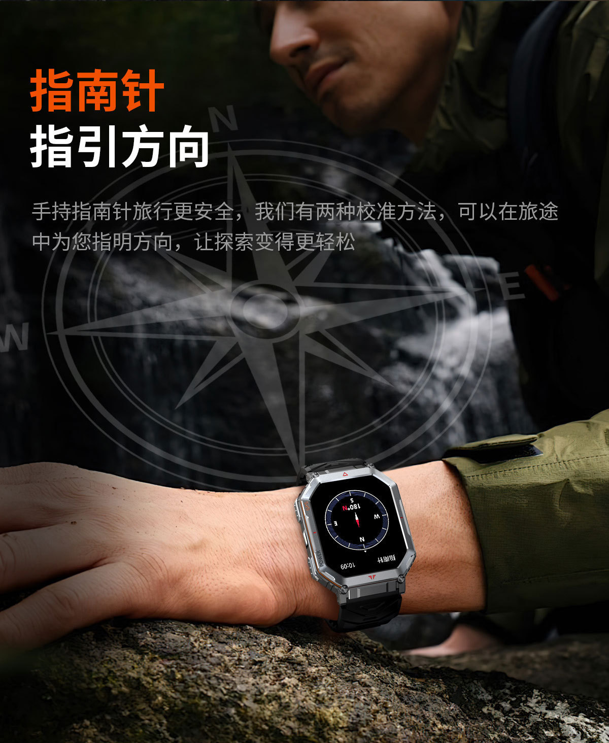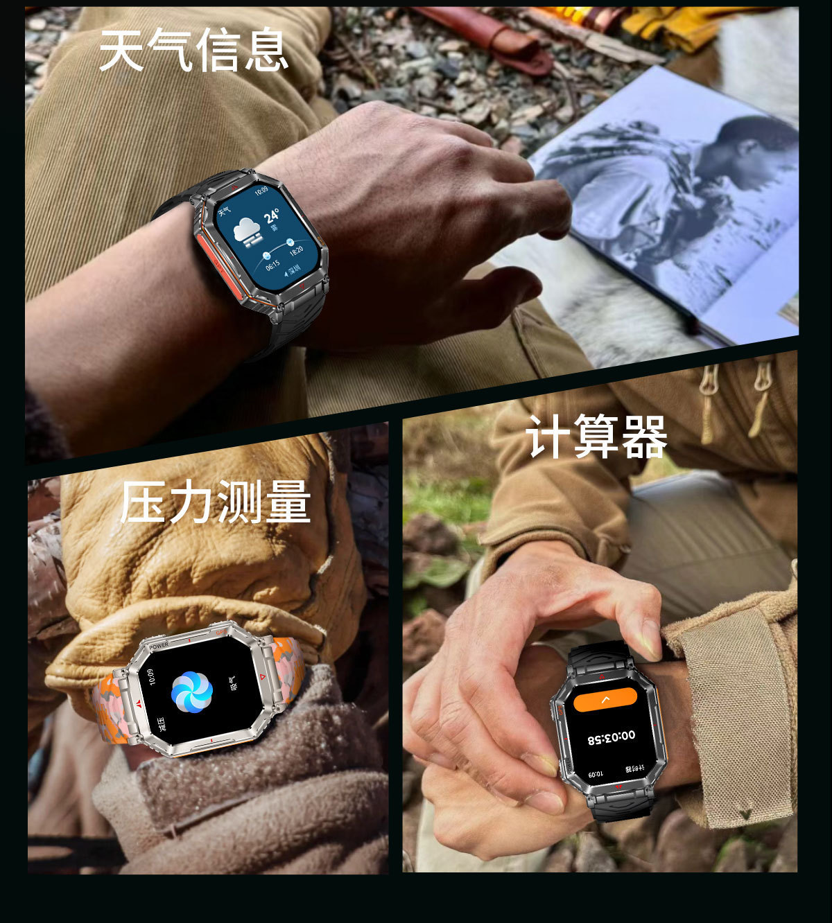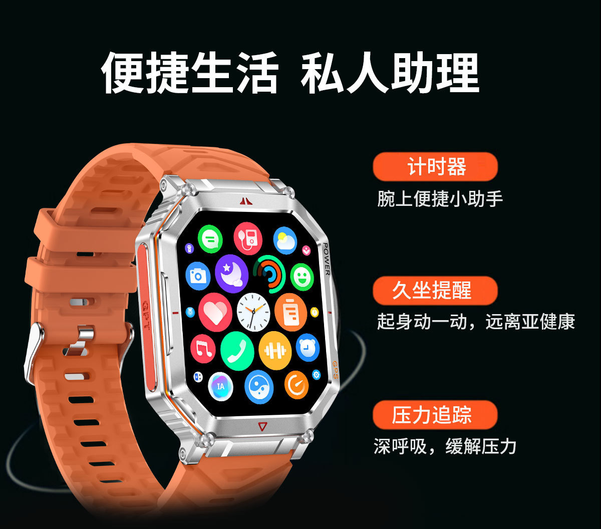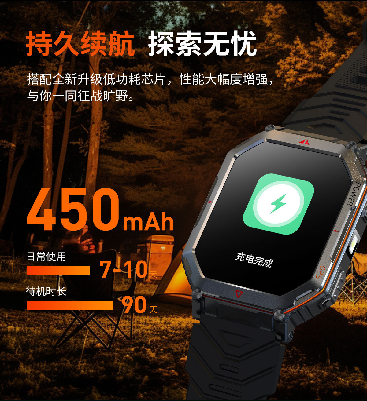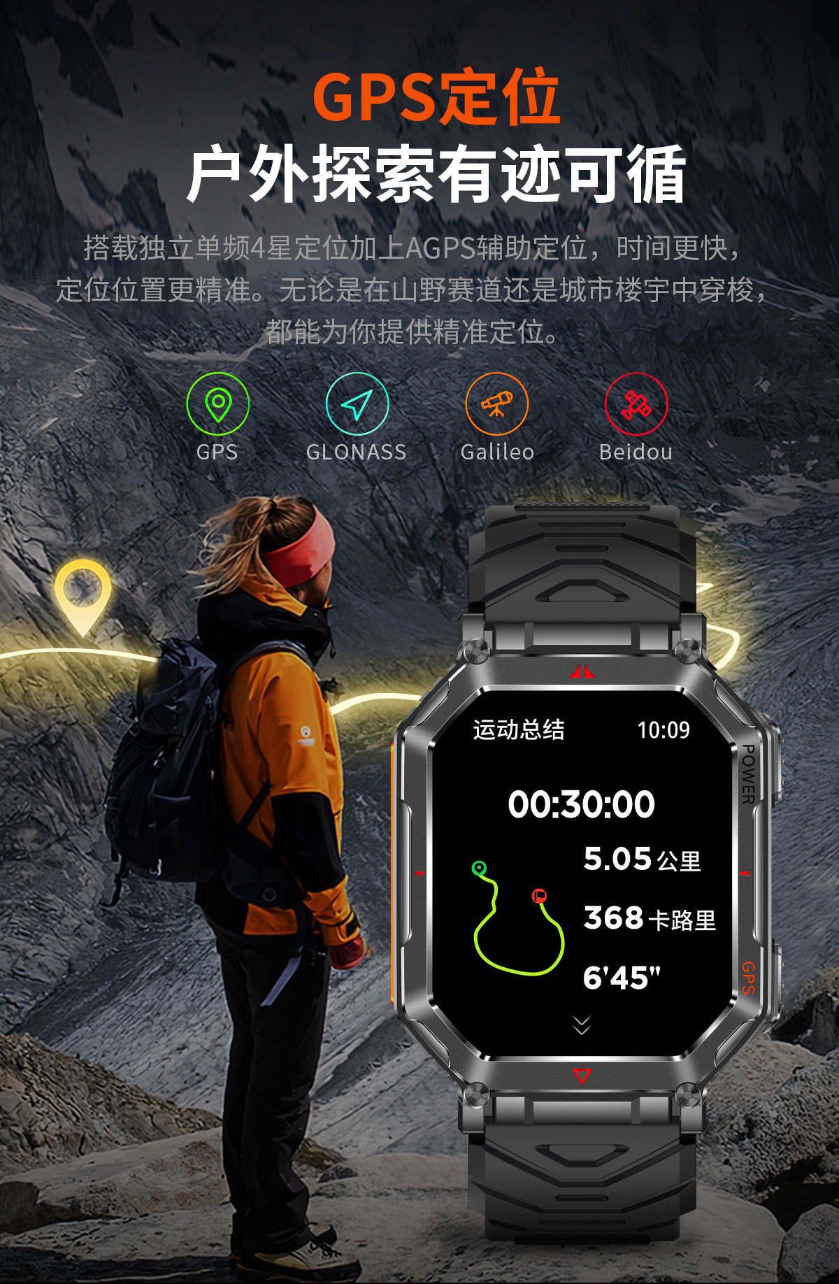 新款KR92智能手表GPS定位AI表盘语音助手LED灯南针男款手环跨境