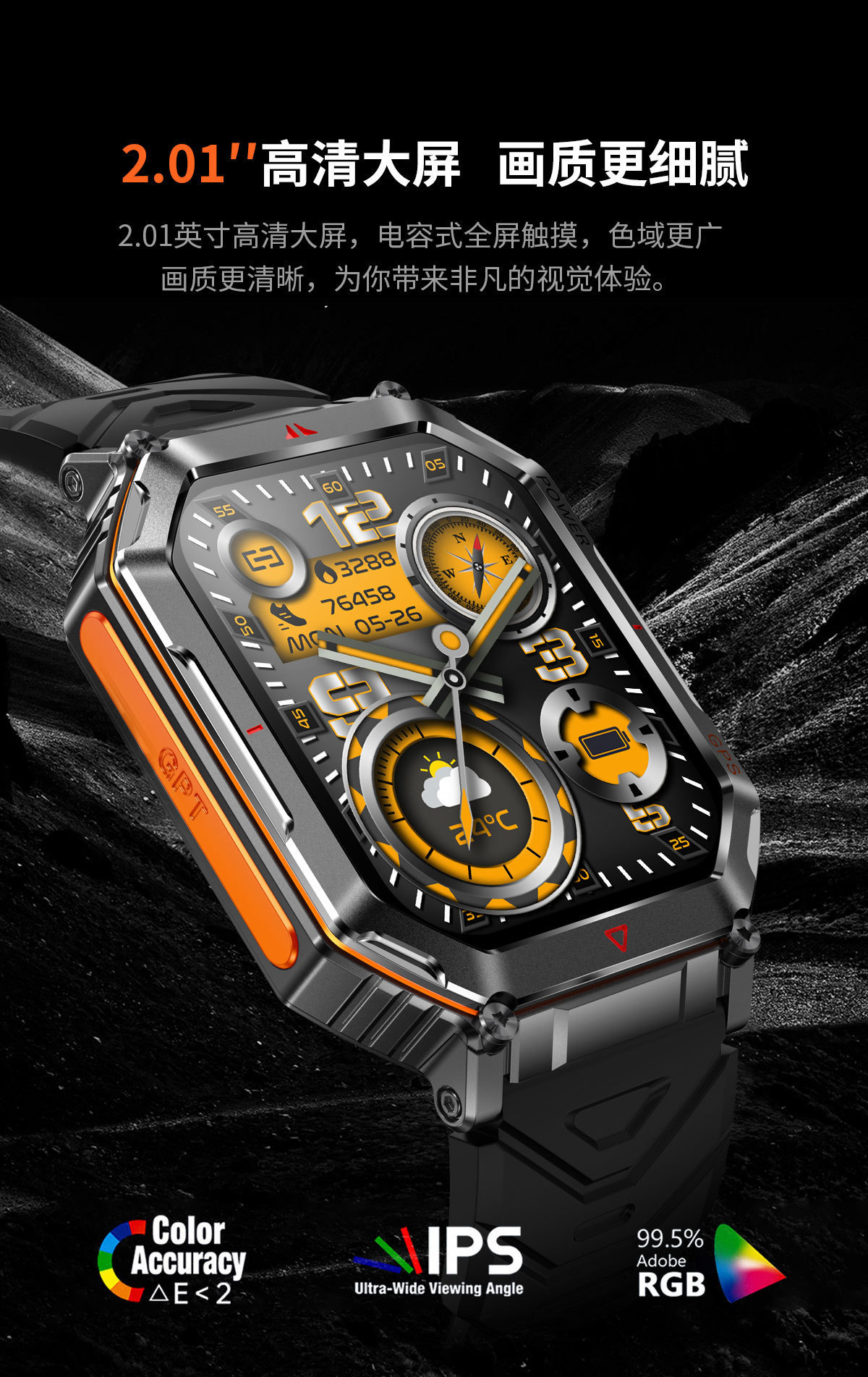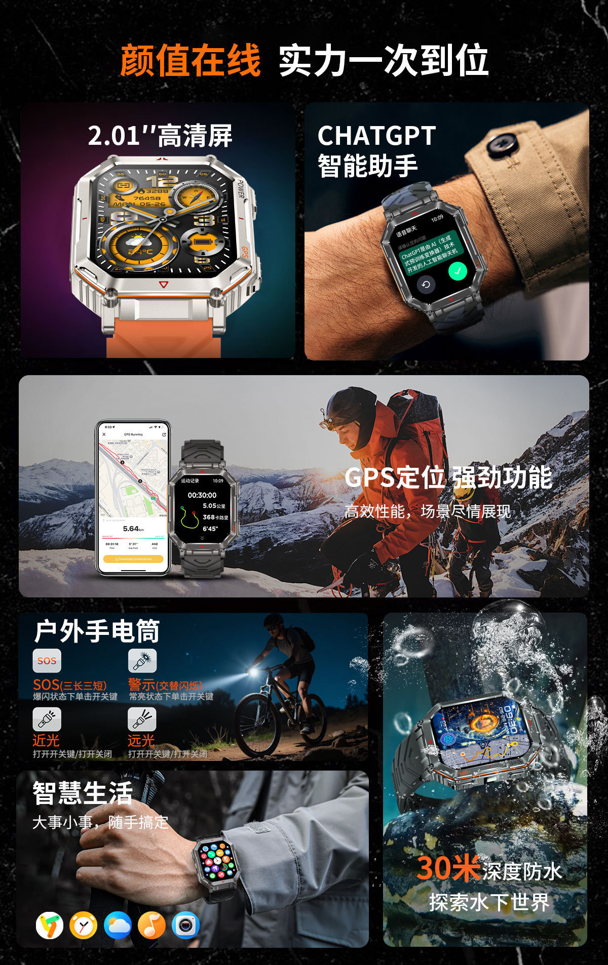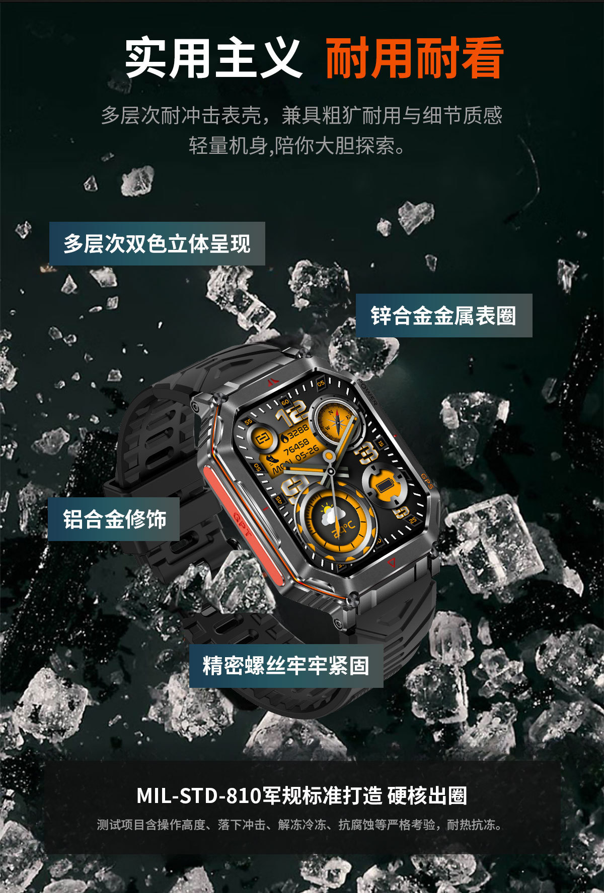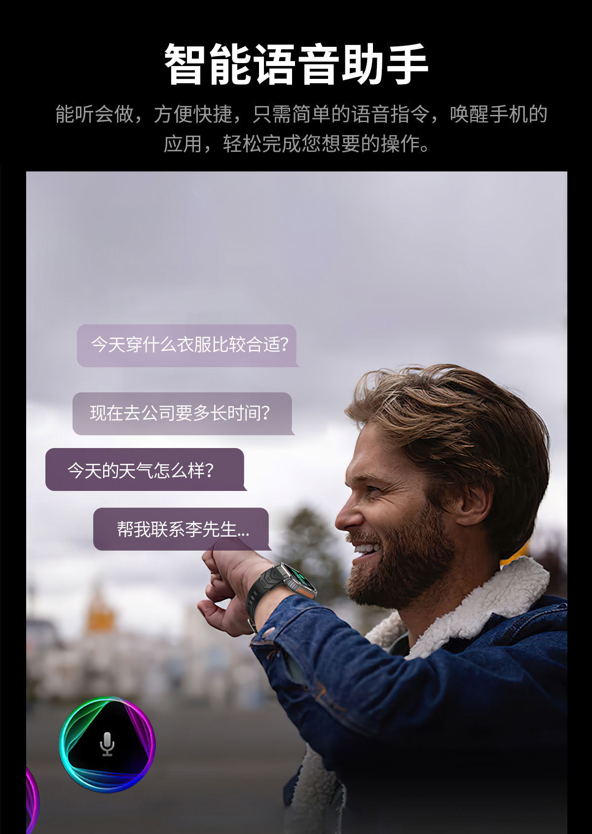 新款KR92智能手表GPS定位AI表盘语音助手LED灯南针男款手环跨境