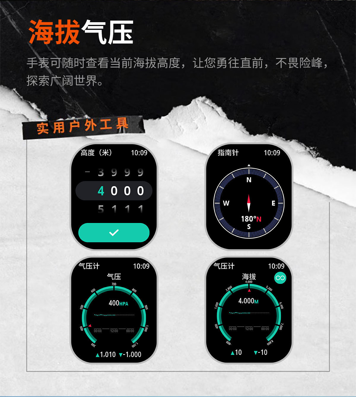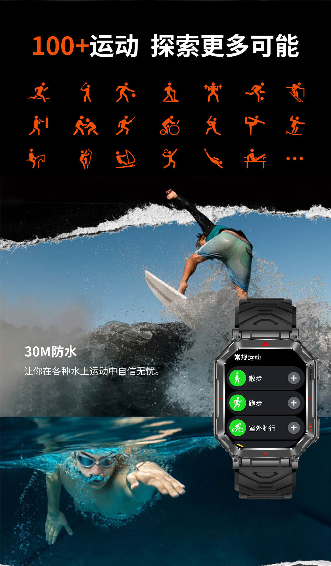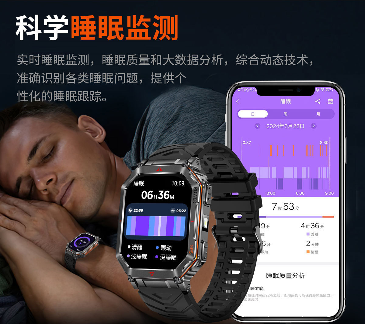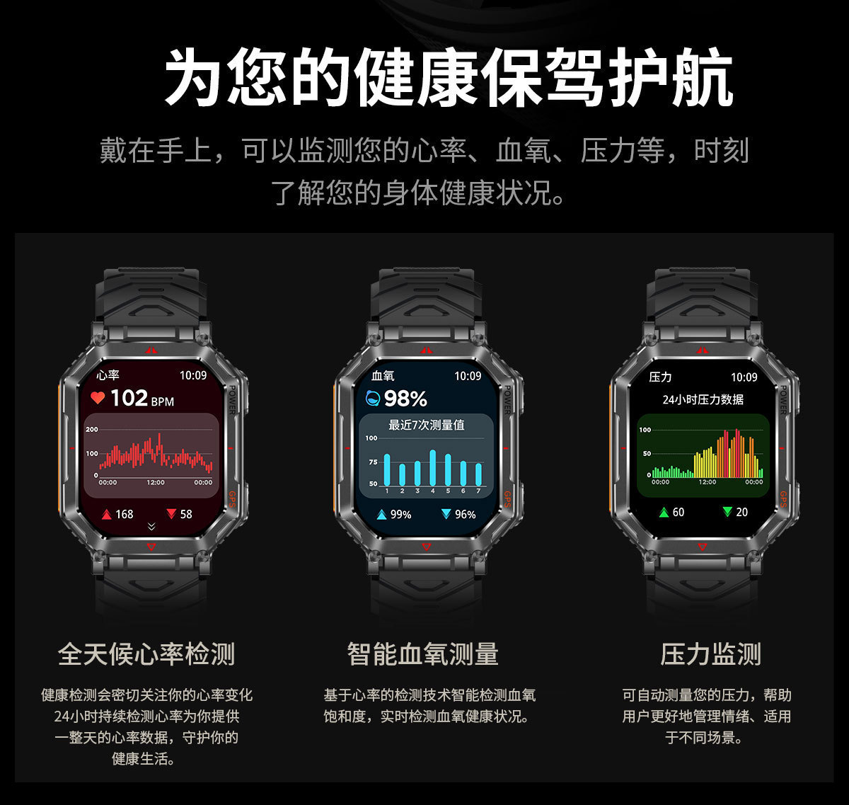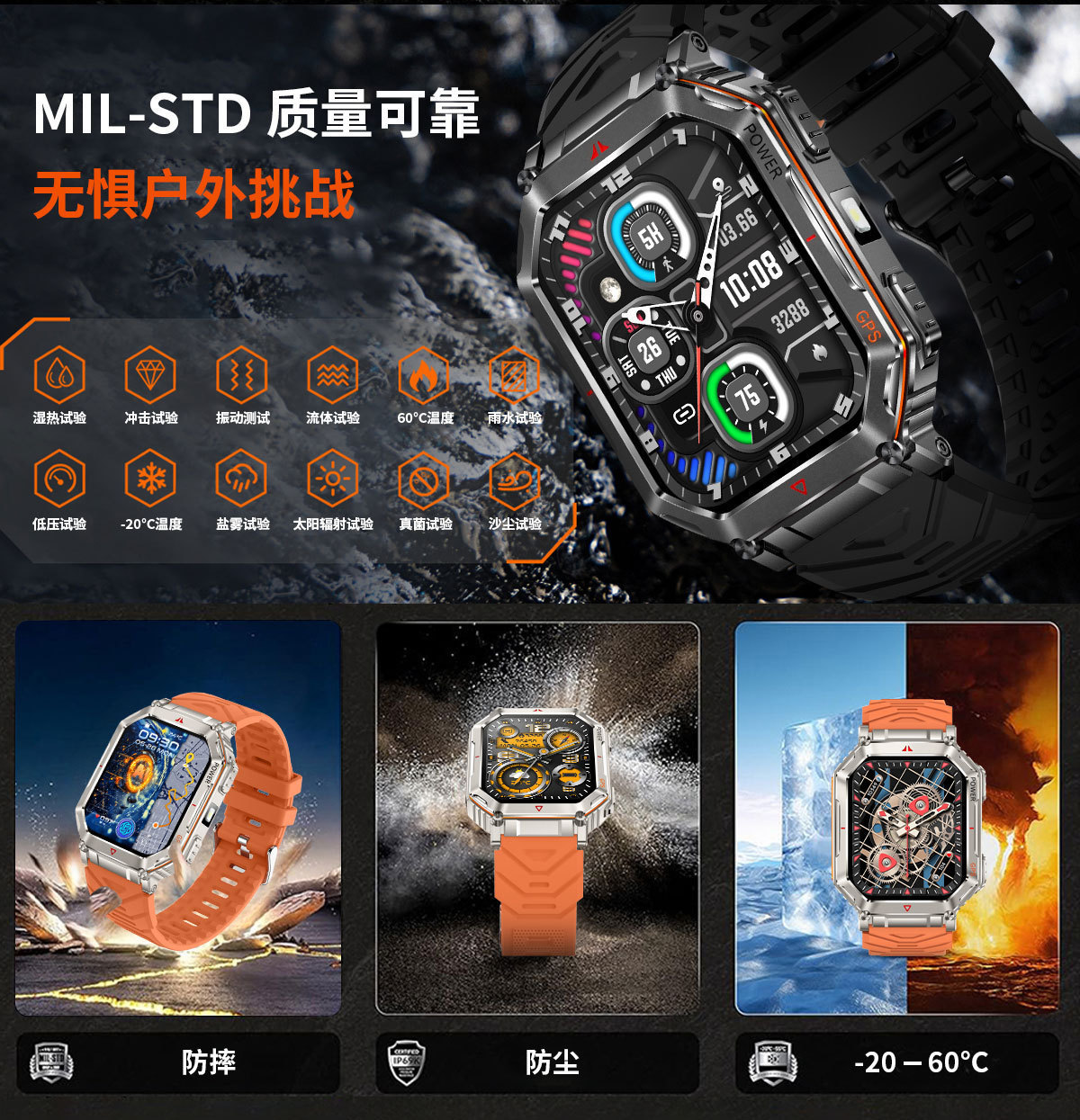 新款KR92智能手表GPS定位AI表盘语音助手LED灯南针男款手环跨境