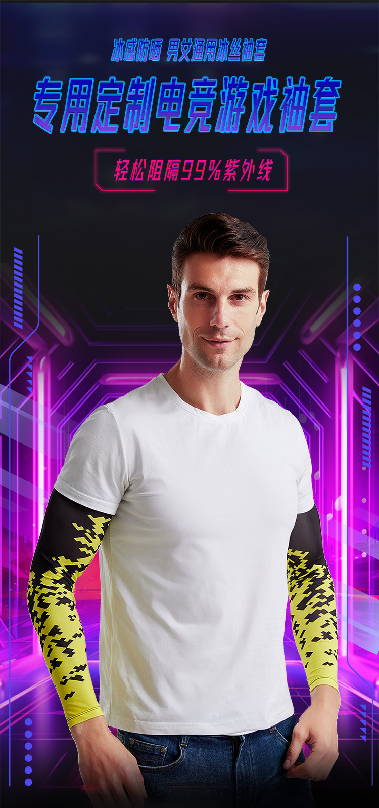 电竞游戏运动无痕贴合冰袖透气防晒防紫外线骑行冰丝印花袖套定制