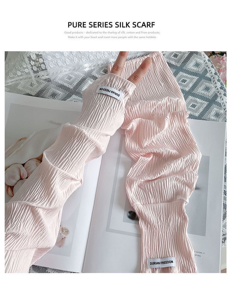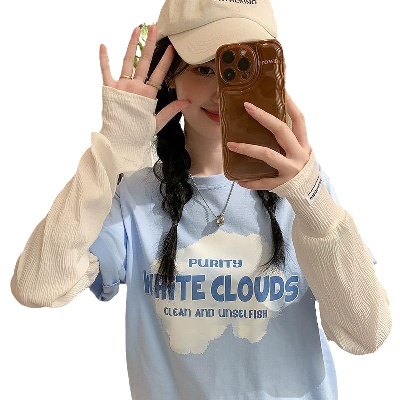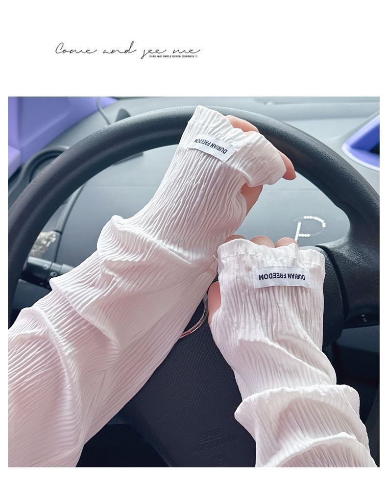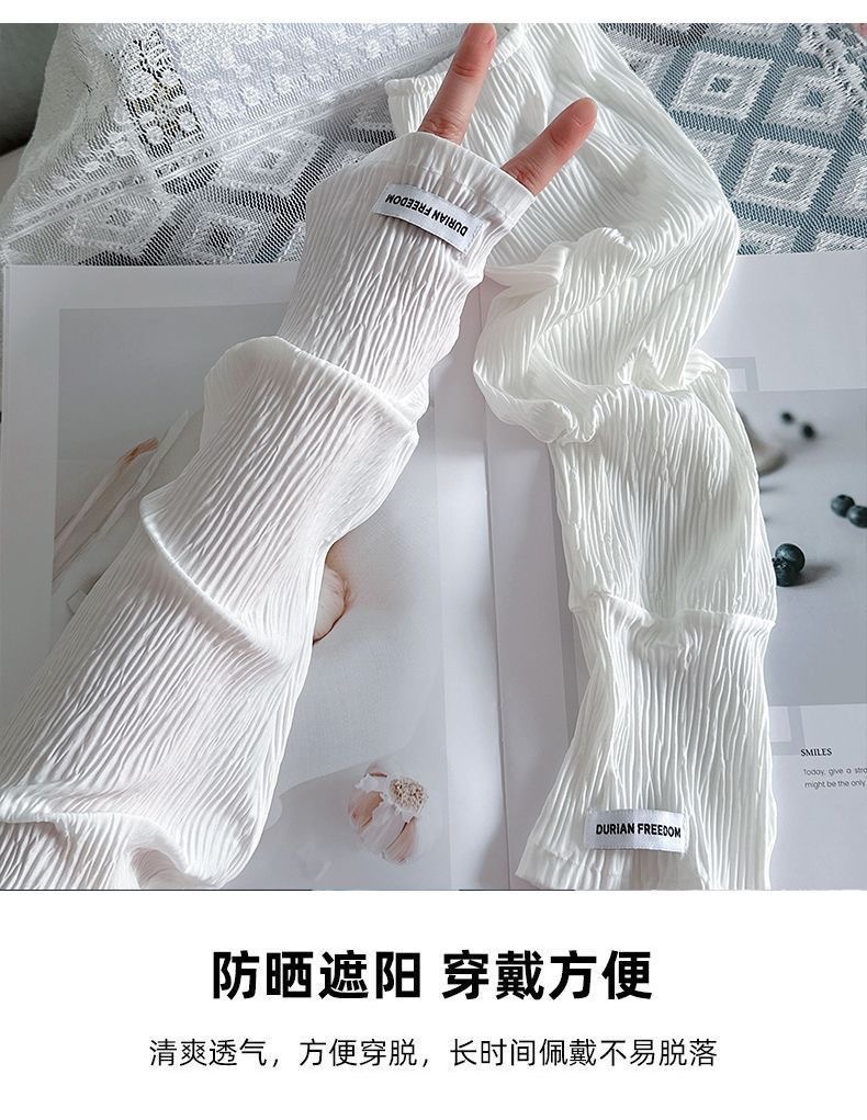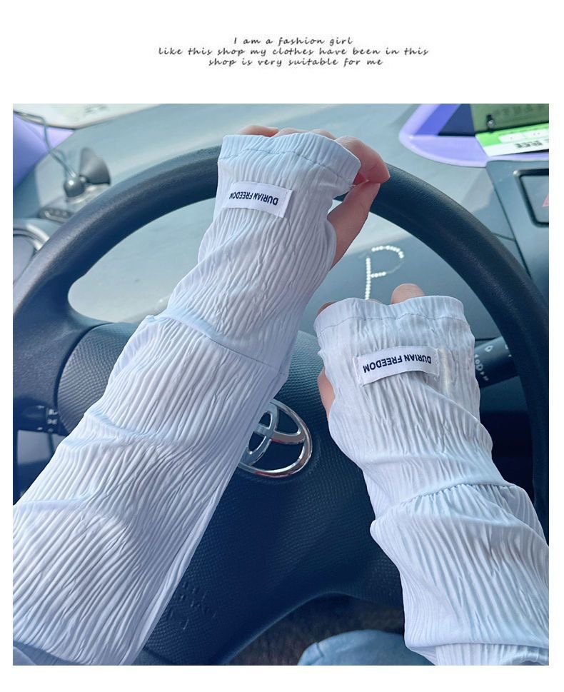 潮款韩国ins纯色带标防晒袖套女宽松开车骑行遮阳防紫外线长冰袖