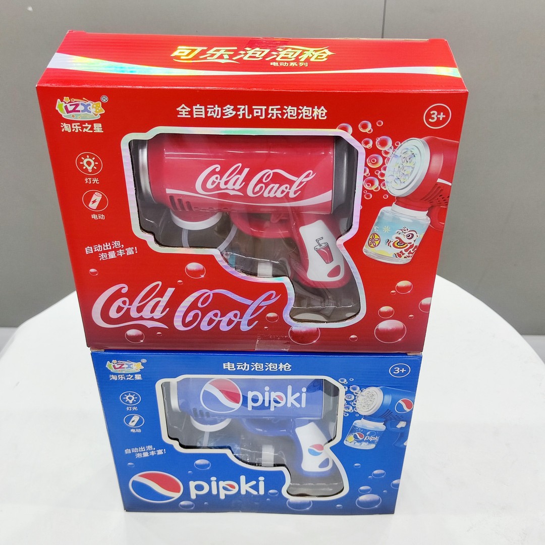 可乐易拉罐饮料儿童电动吹泡泡灯光音乐全自动泡泡枪电玩城兑换