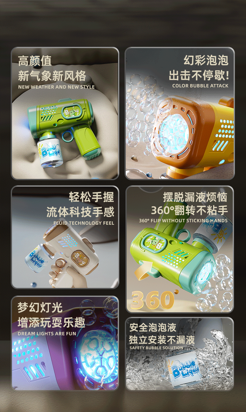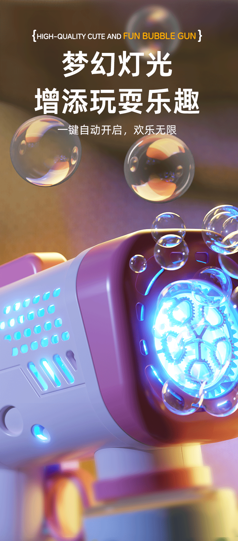 跨境电动萌宠泡泡机全自动手持加特林泡泡枪多孔男女孩泡泡机批发