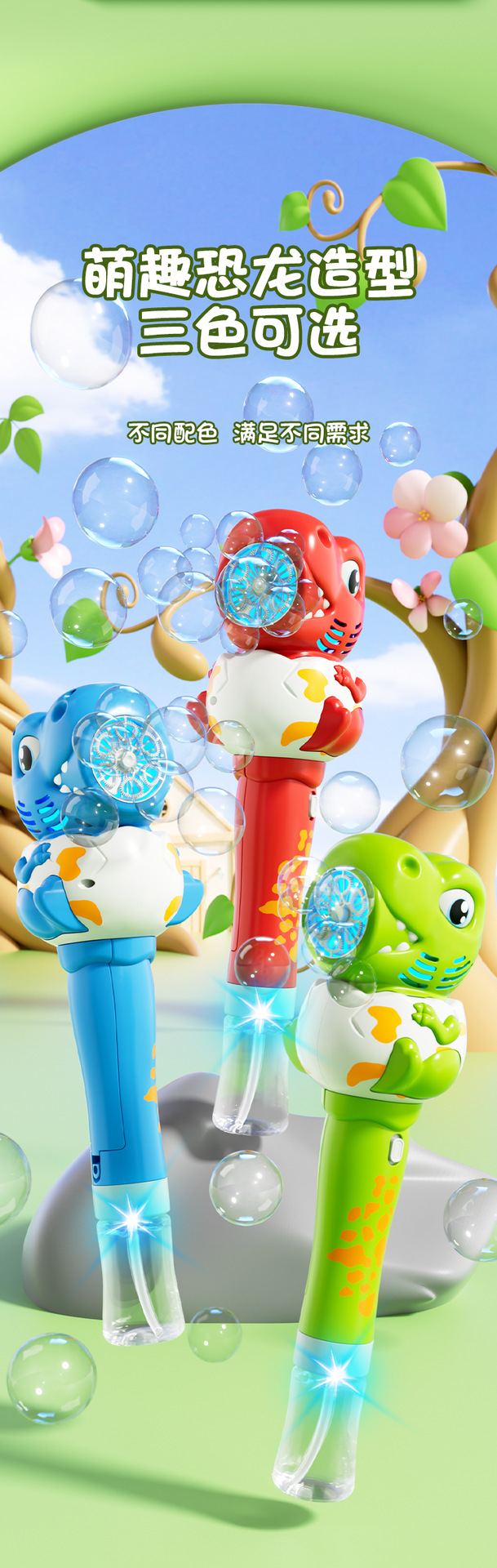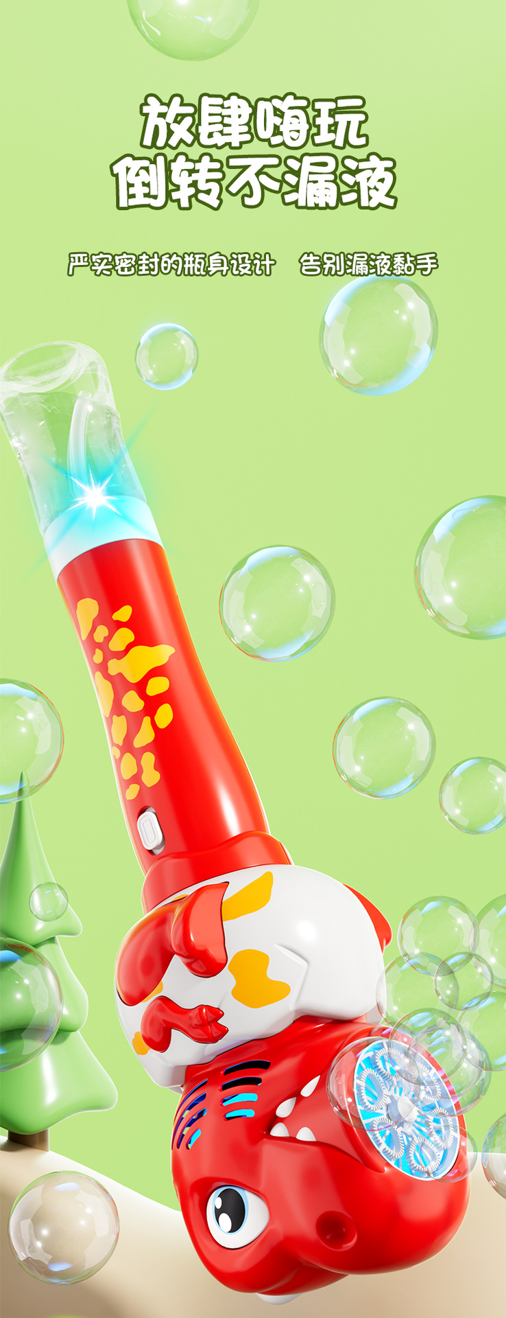 全自动恐龙泡泡机儿童手持不漏泡泡枪电动吹泡泡棒公园摆地摊玩具